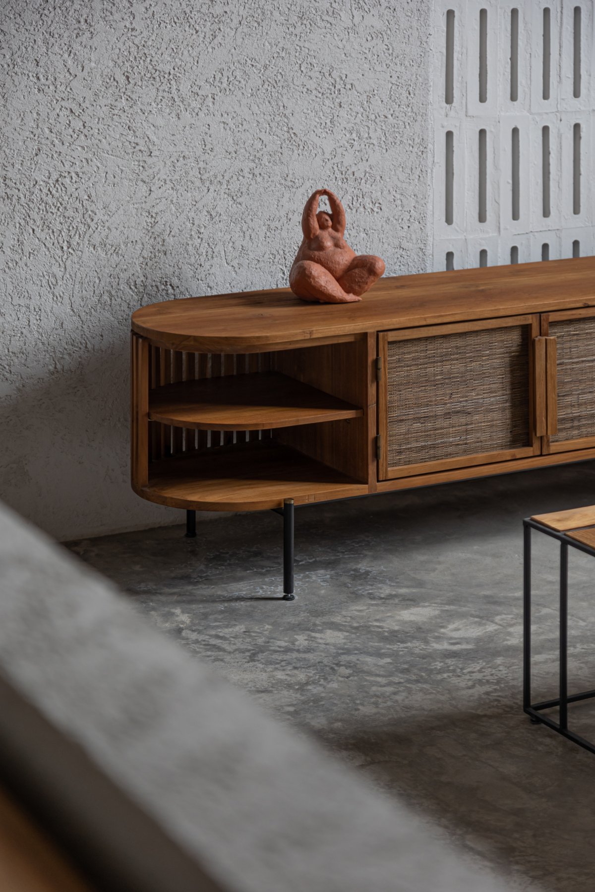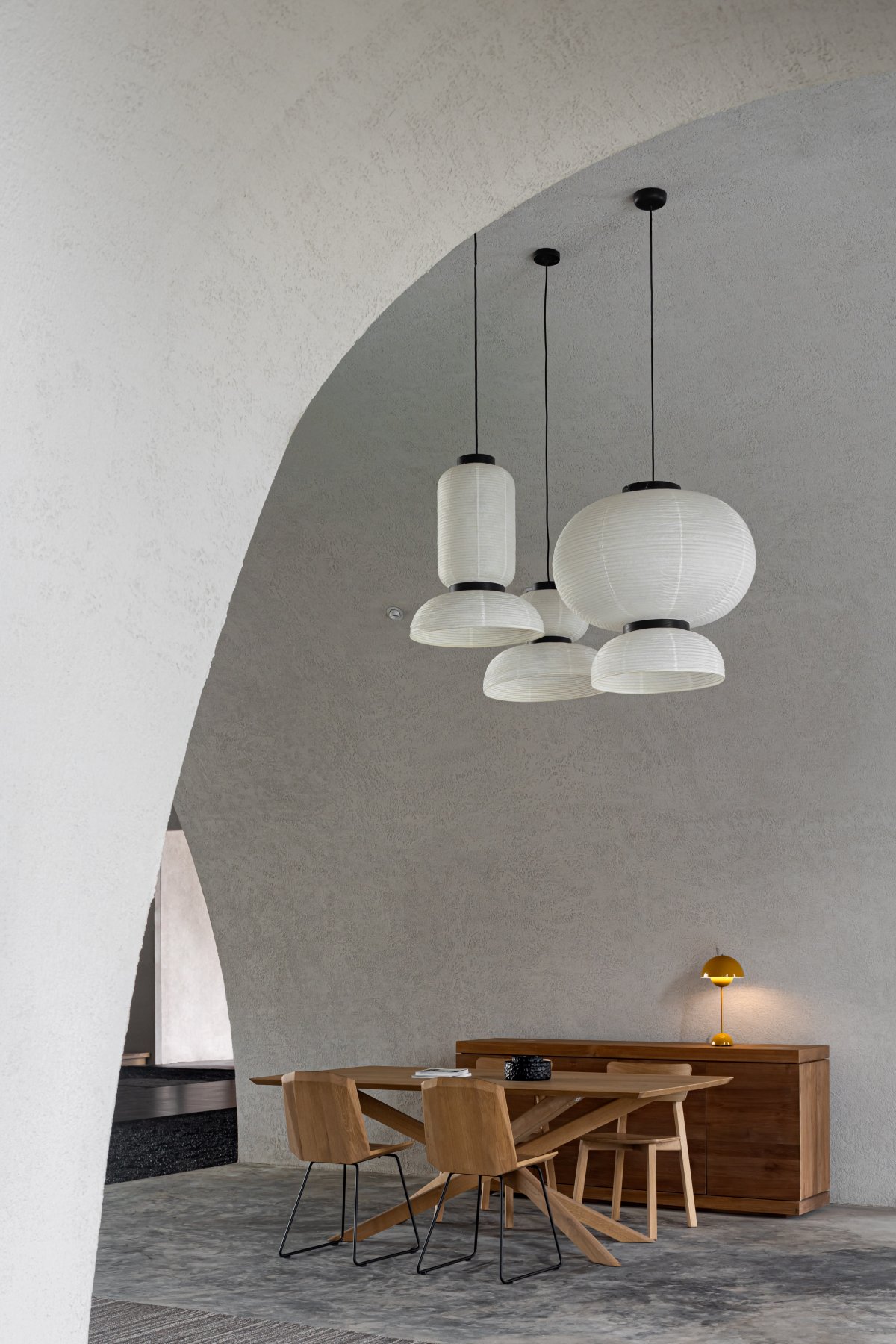 Godot design focuses on the order of the Chinese and American space forms, while fitting the pure texture of the brand's natural materials. The rare hundred-year-old teak is full and stable, the white oak with mountain texture is elegant in color, the first layer of cow skin imported from Italy is thick and warm, and the natural sandstone and volcanic stone flower ware is simple and warm... The furniture is another journey of natural materials.
