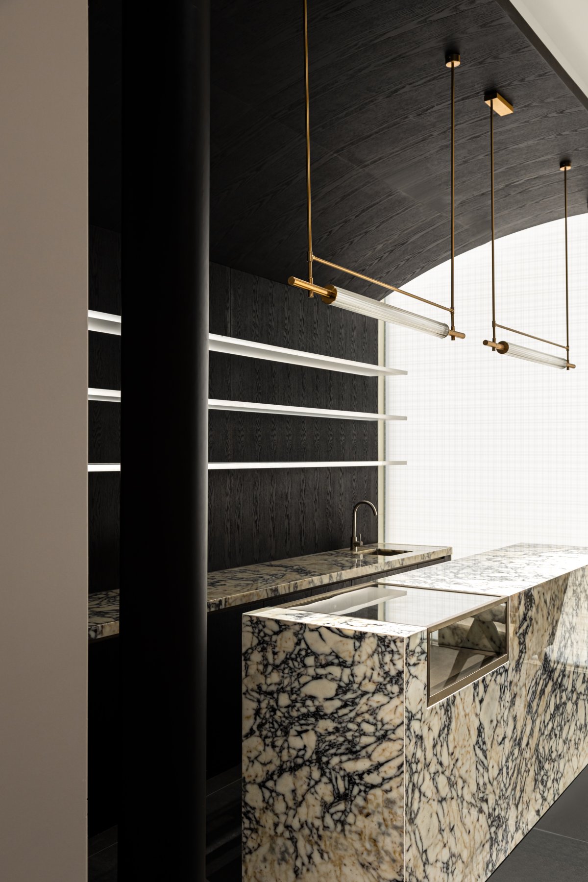 We capture inspiration from natural textures. We use the restraint and tension inherent in the material's own properties to combine and blend them together. The introverted and steady temperament of the black wood veneer meets the bold and flowing rock slabs, and the natural texture bursts out with infinite spatial emotions.