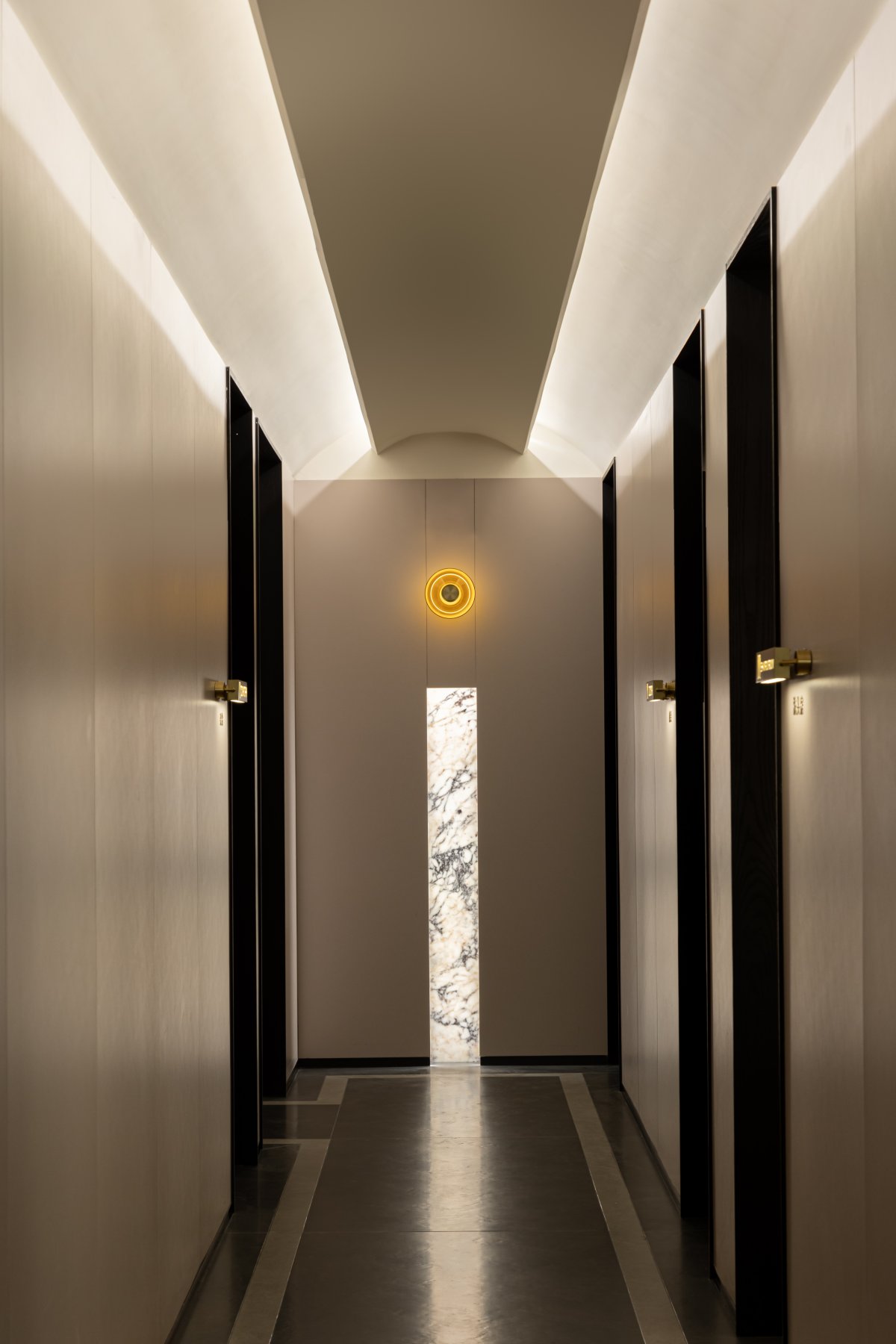 In order to enhance the delicate feeling brought by the light, the wall that carries the light becomes the background. The light falls on the delicate leather and wood veneer, making the space softer and warmer.