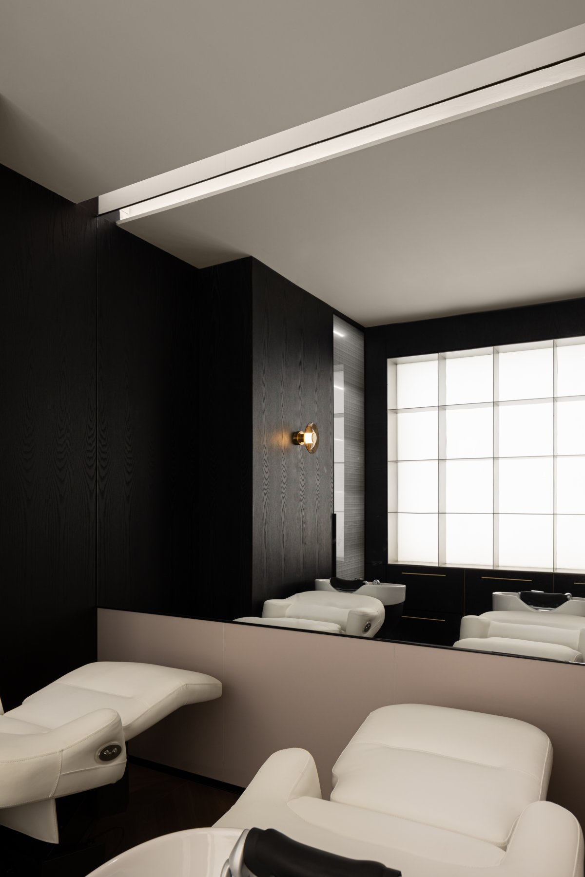 For the beauty industry, quality and warmth are the spiritual core required by the space. When conceiving the beauty room, lighting became a breakthrough in creating the spatial atmosphere. Starting from this point, the design team made the lights seem like they came from a distant dream, exuding a soft atmosphere that calms people.