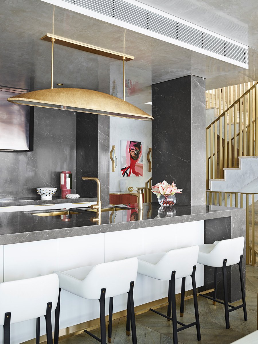 As interior designer and interior architect, Greg Natale has taken the idea of a coastal pastel palette and given it his own glamorous interpretation, punctuating the design with glimmers of gold throughout.In contrast to the harsh Australian sunshine outside, the space is imbued with a serene lightness of look and softness of feel, with pale wood floors, travertine surfaces and waxed plaster walls and ceilings all contributing factors.