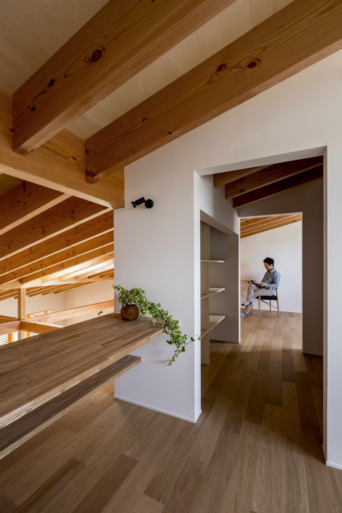 Hearth Architects maximized the site location. Concretely speaking, Hearth Architects arranged big roof in a north-south direction, and minimized the number of walls to meet the keyword of “every family under one roof”. Hearth Architects arranged other rooms but rooms for children in the future in the first floor. The house like a one-story building became one symbolic building in the area.