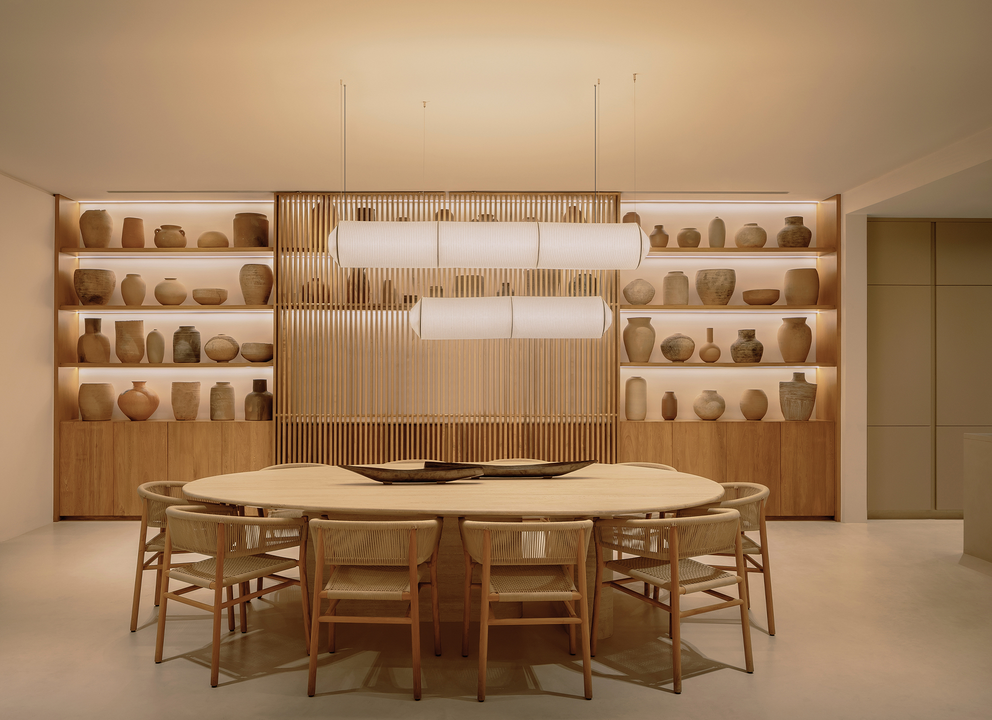 The neat design is complemented by an exquisite curation of jute, henequen, clay, copper and stone pieces from different parts of Mexico and the result of collaborations between Mexican artisans and artists.