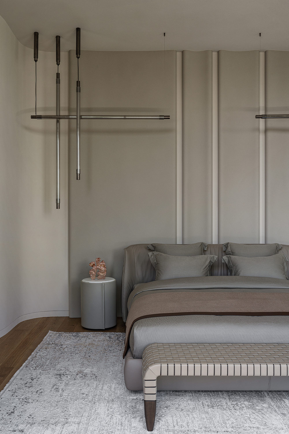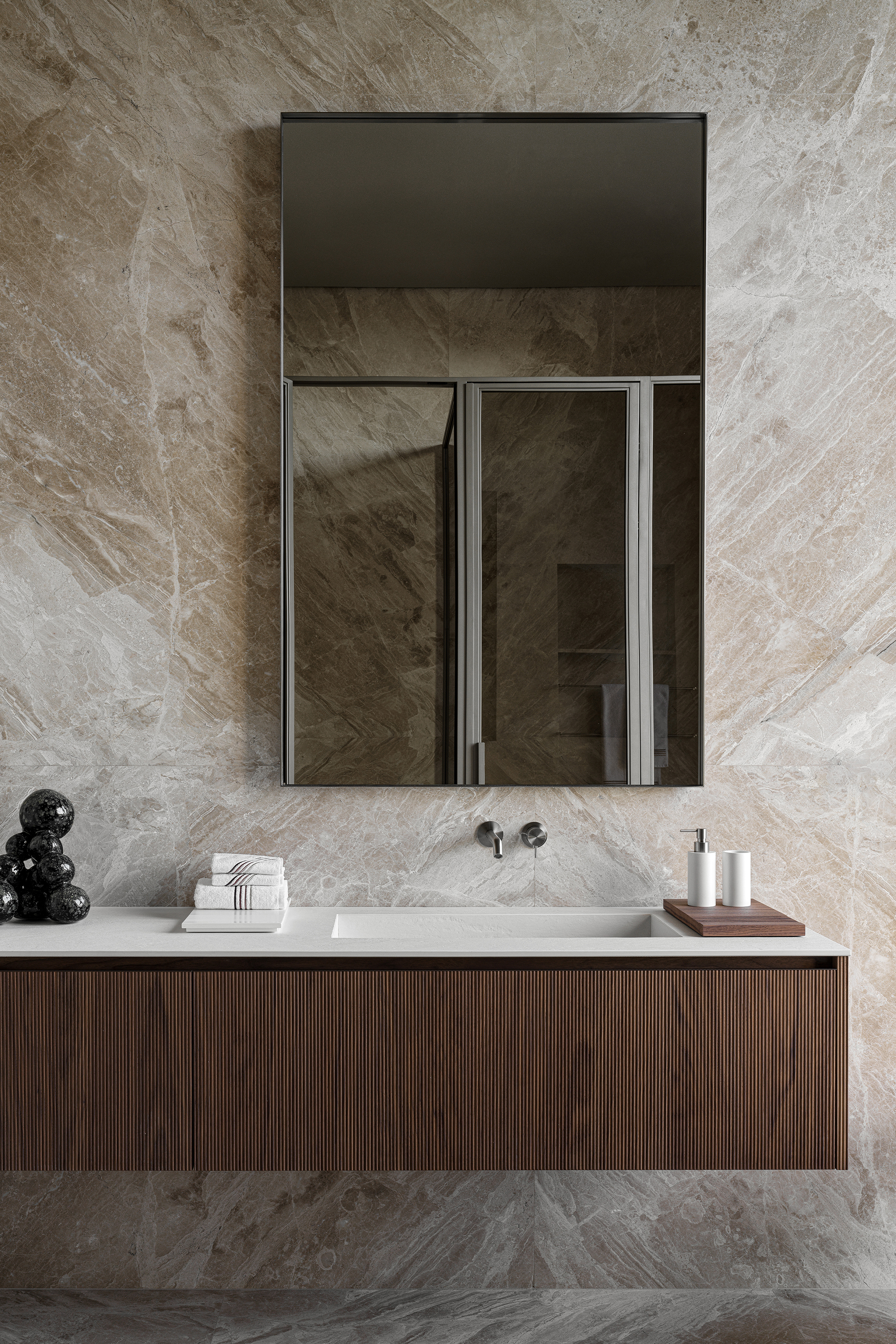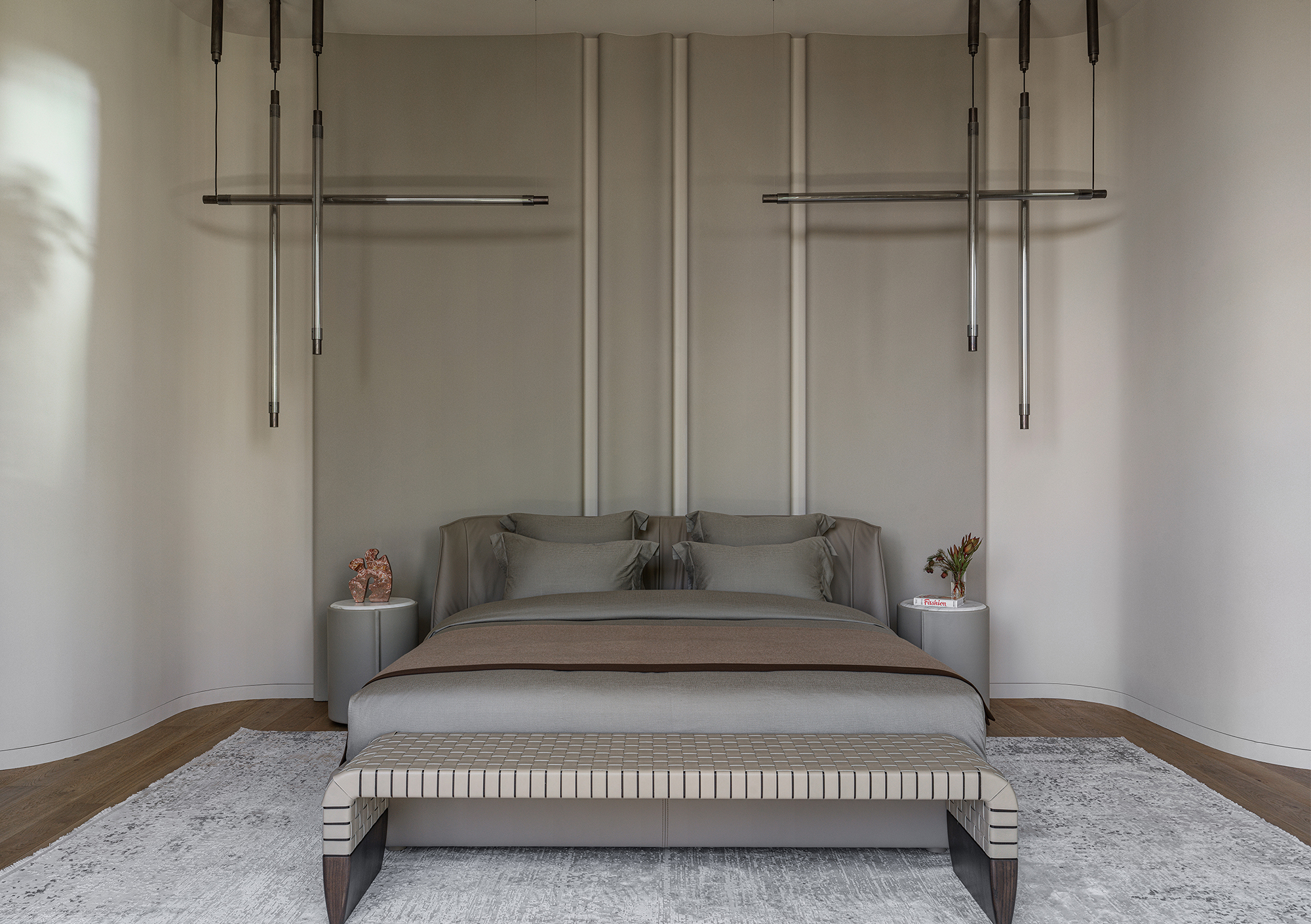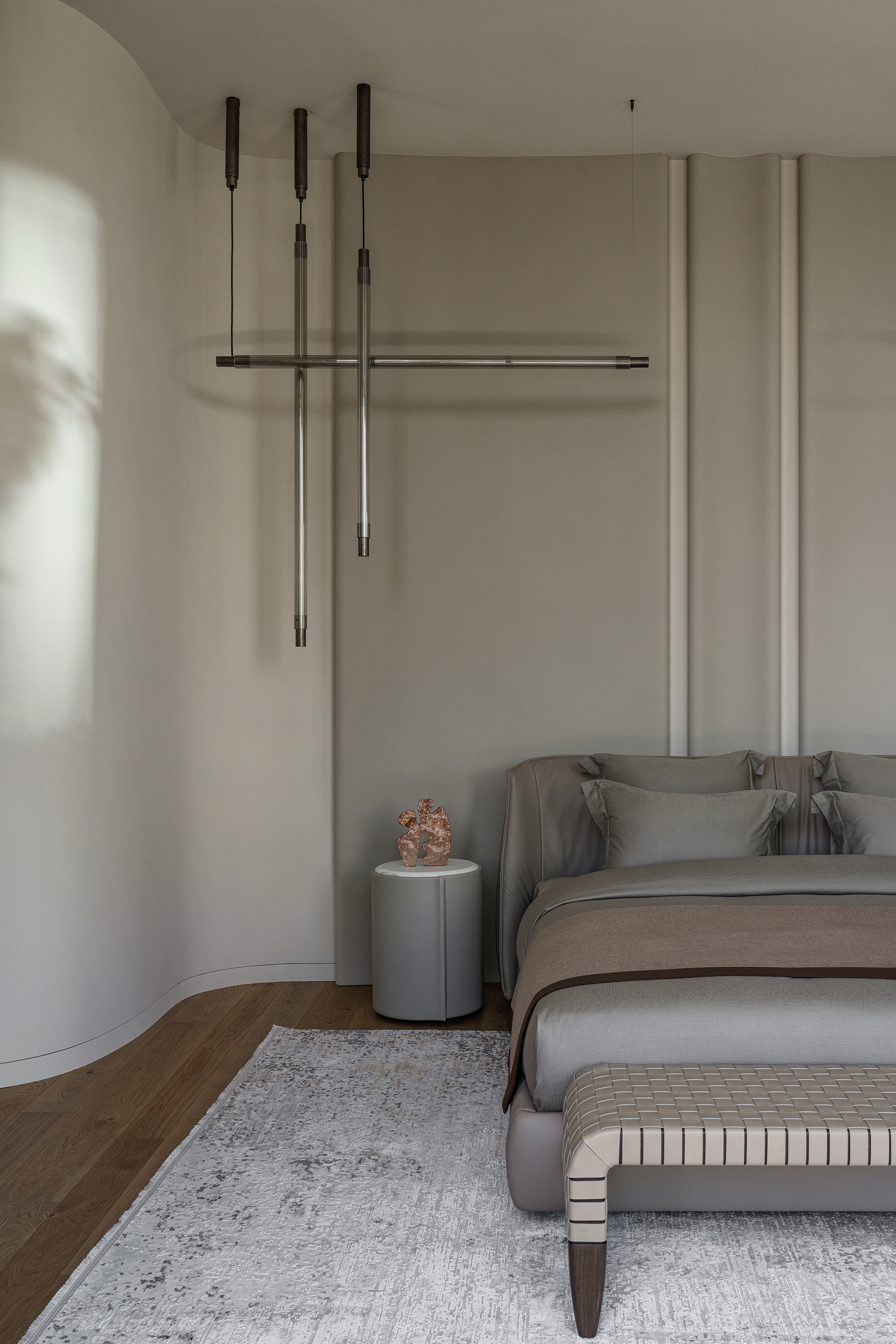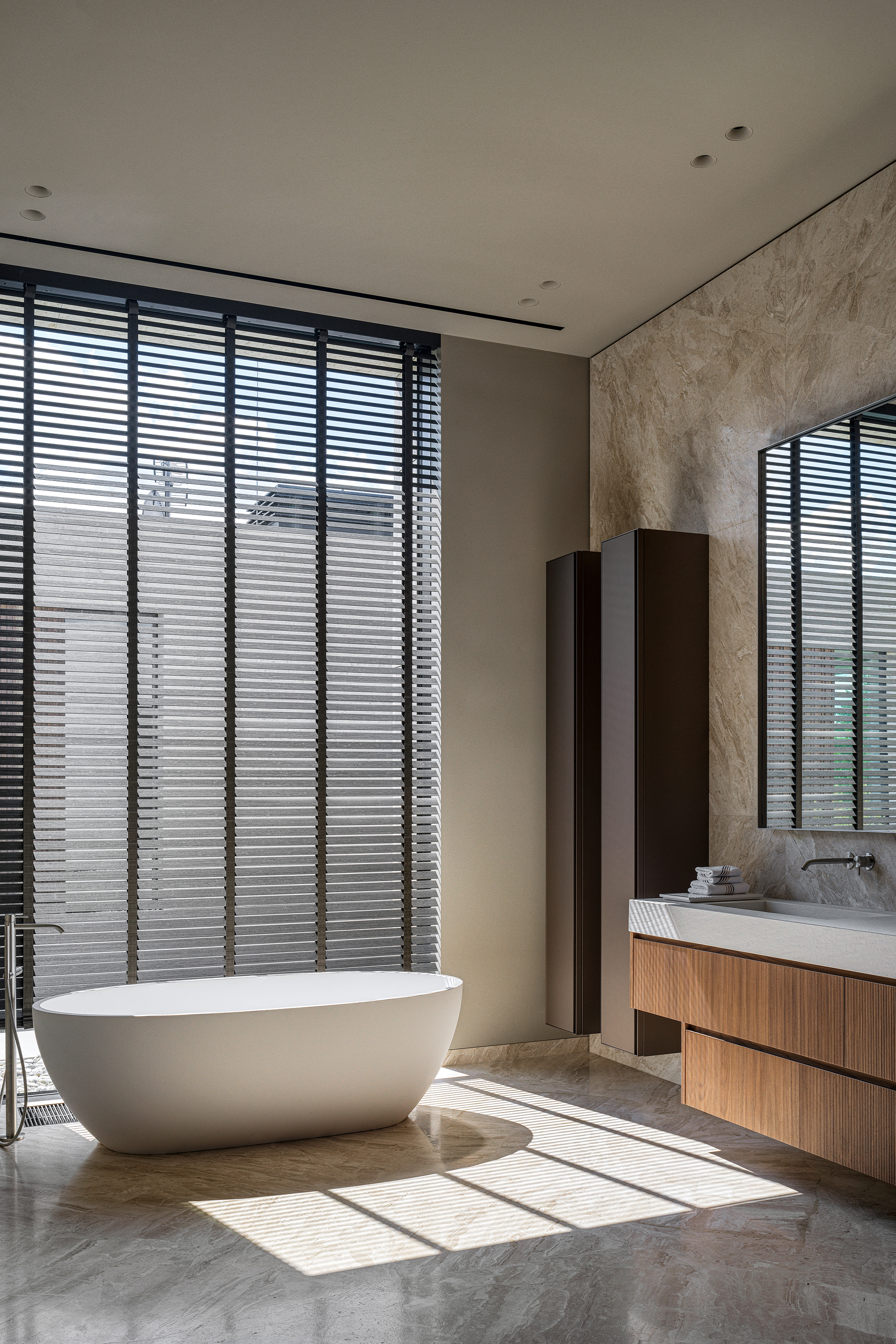 The main theme of this contemporary interior was a harmonious connection with the surrounding nature. The house is organically integrated into a Japanese-style landscape, and the interior became an ode to minimalism, tranquility, and deep respect for nature. The result is a space where functionality meets aesthetics and every element carries meaning, referring to the philosophy of wabi-sabi — the acceptance of imperfection and the transience of beauty. The mood I wanted to achieve was contemplation, meditation, and the pursuit of balance.