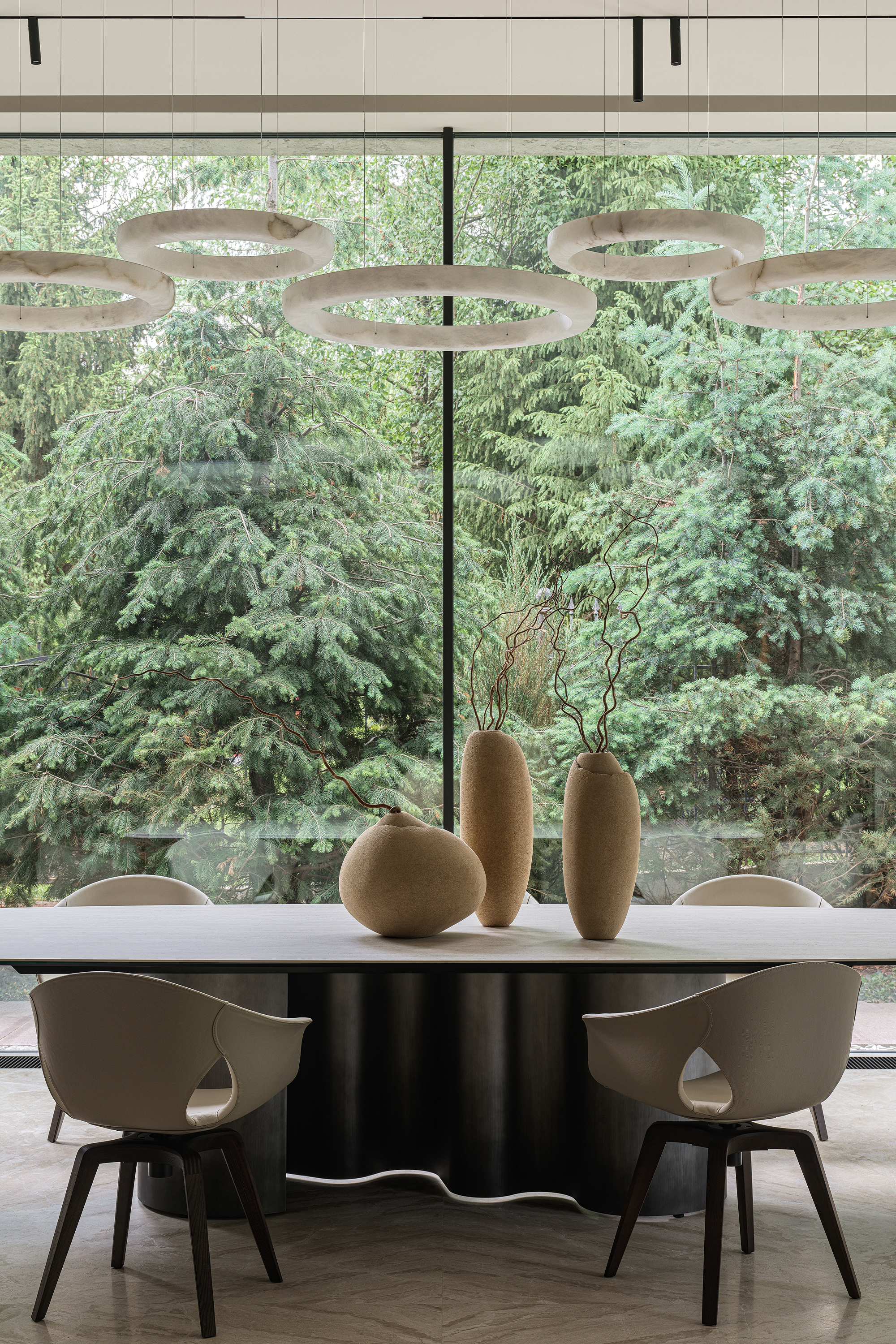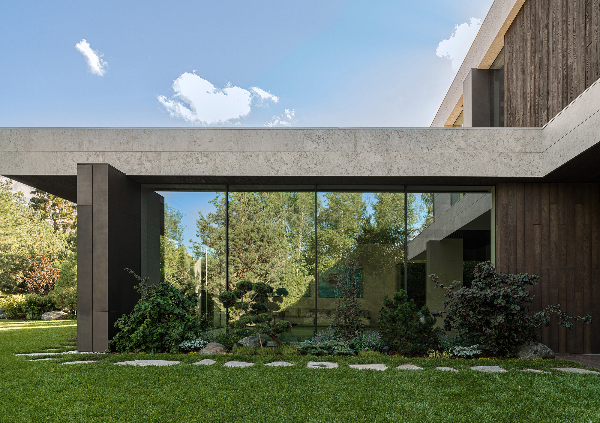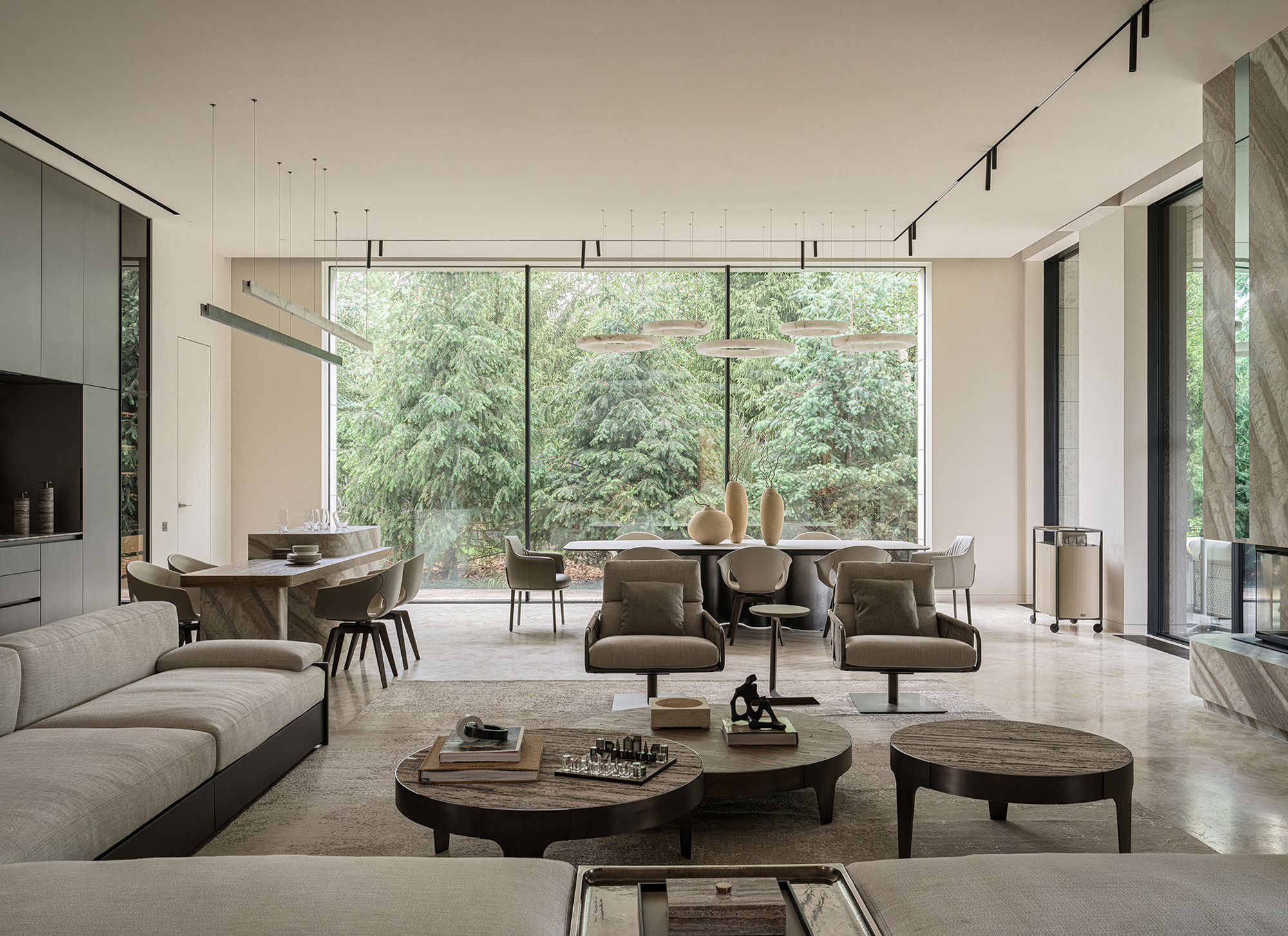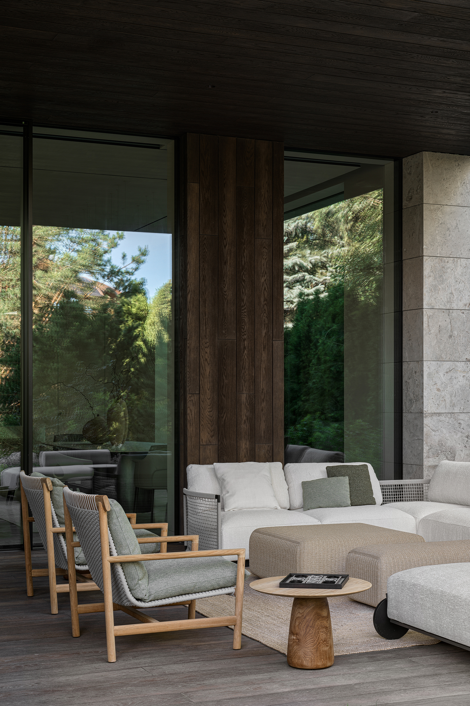 In every project where the interior becomes an extension of the landscape, the most important thing is to create a seamless transition between indoor and outdoor spaces — the feeling of unity with nature that permeates every corner of the house. This is not just design, but a philosophy embodied in materials and forms. The most striking elements are often the panoramic windows that blur the boundaries between the house and the garden. They frame picturesque views, turning them into living paintings that change their appearance depending on the season and time of day. I am especially proud of projects where it is possible to create a sense of naturalness that conceals painstaking work and attention to detail. Every element — from the carefully chosen stone in the garden to the vase on the shelf — plays its part in creating a harmonious whole.