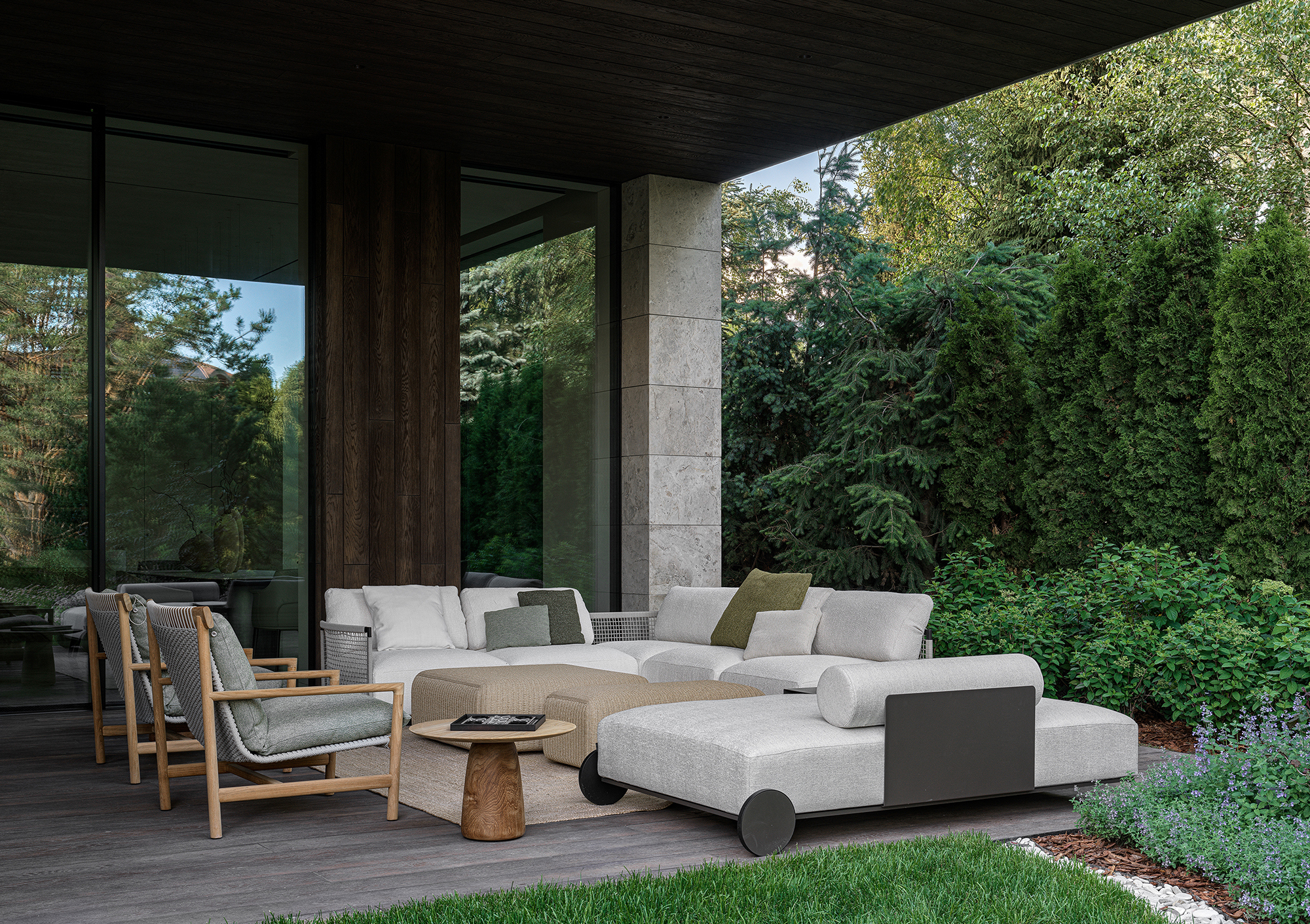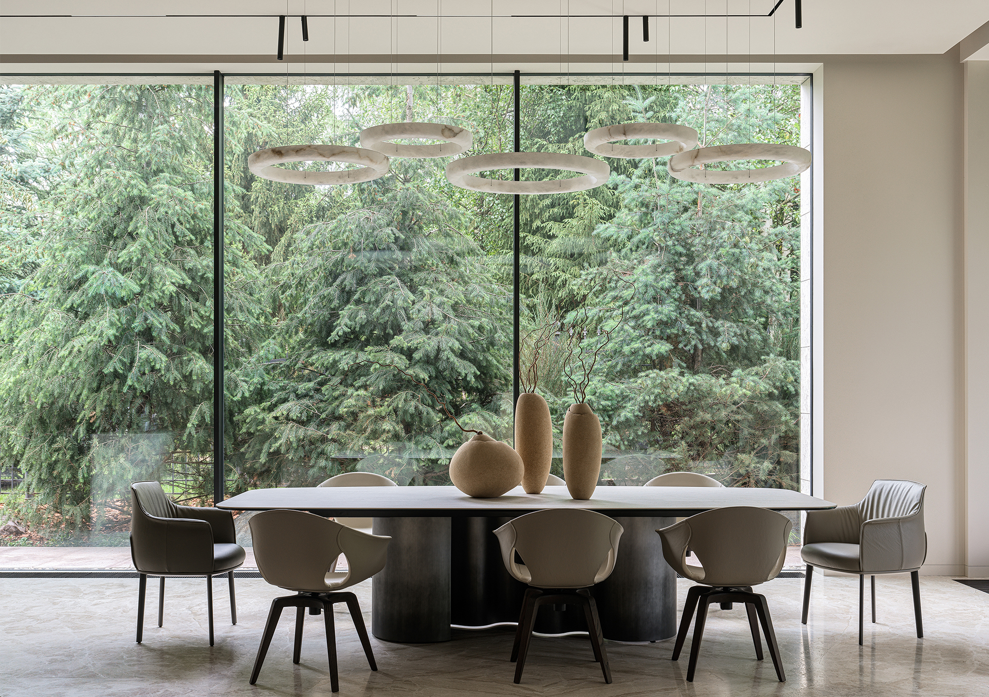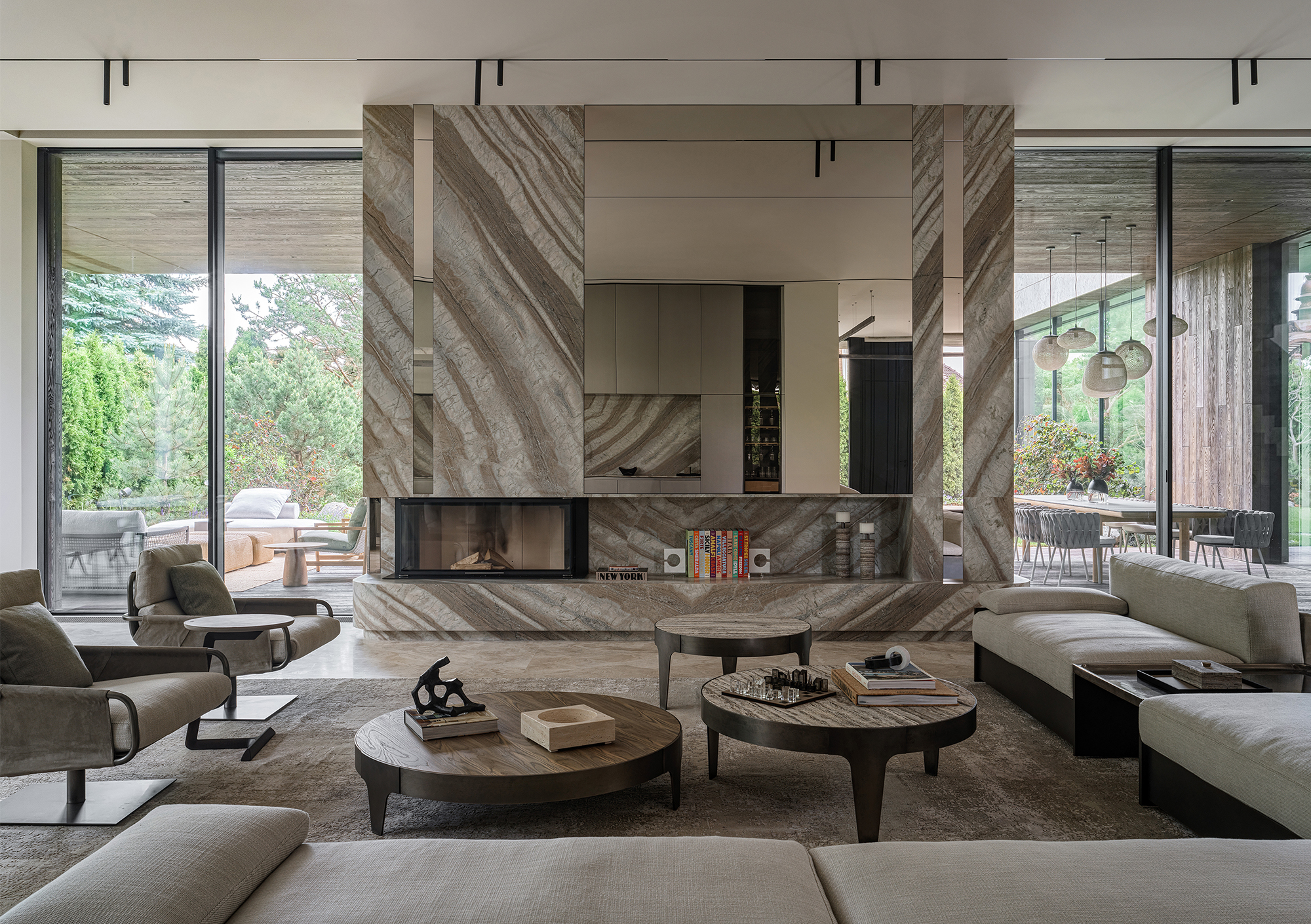 In every project where the interior becomes an extension of the landscape, the most important thing is to create a seamless transition between indoor and outdoor spaces — the feeling of unity with nature that permeates every corner of the house. This is not just design, but a philosophy embodied in materials and forms. The most striking elements are often the panoramic windows that blur the boundaries between the house and the garden. They frame picturesque views, turning them into living paintings that change their appearance depending on the season and time of day. I am especially proud of projects where it is possible to create a sense of naturalness that conceals painstaking work and attention to detail. Every element — from the carefully chosen stone in the garden to the vase on the shelf — plays its part in creating a harmonious whole.