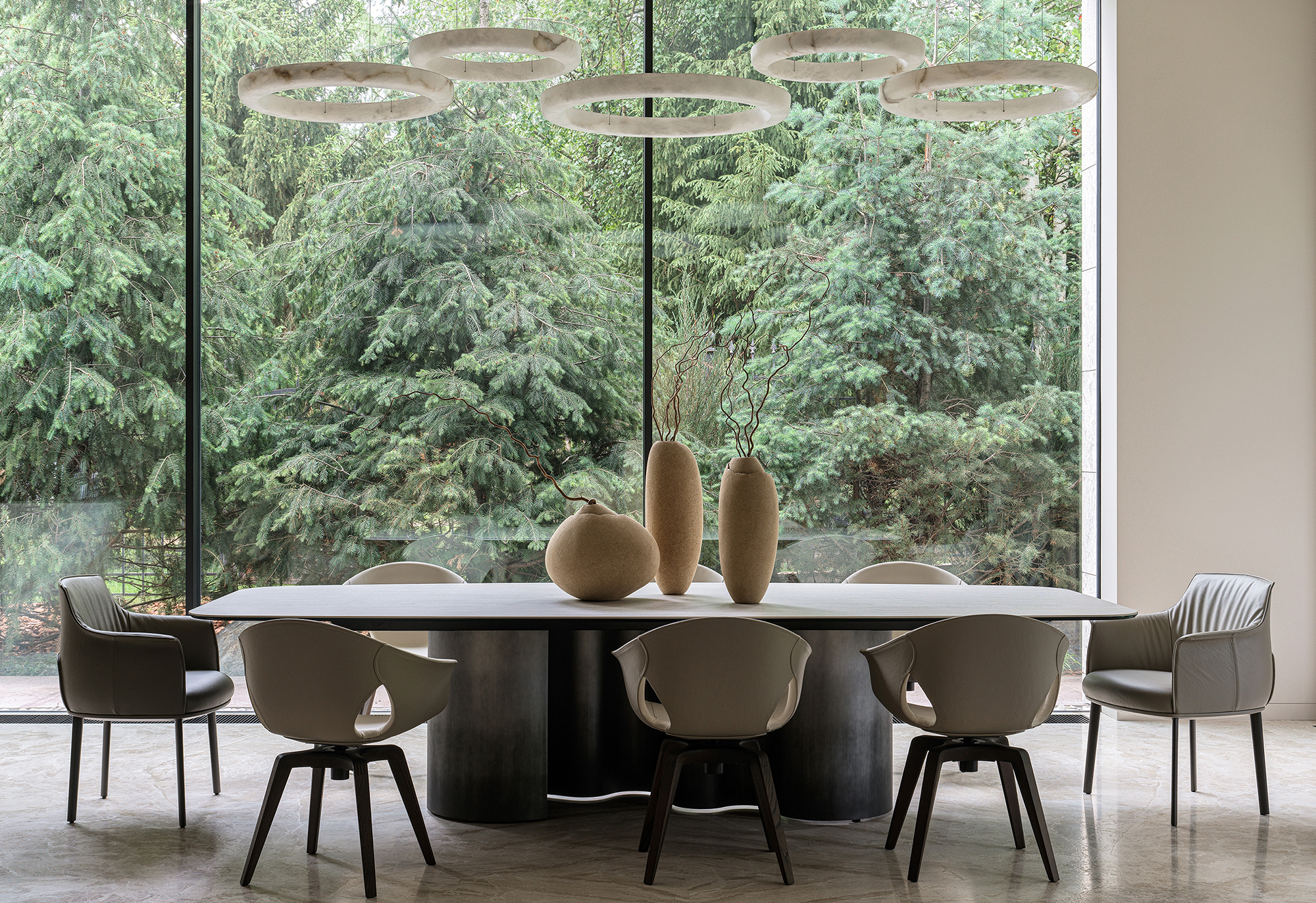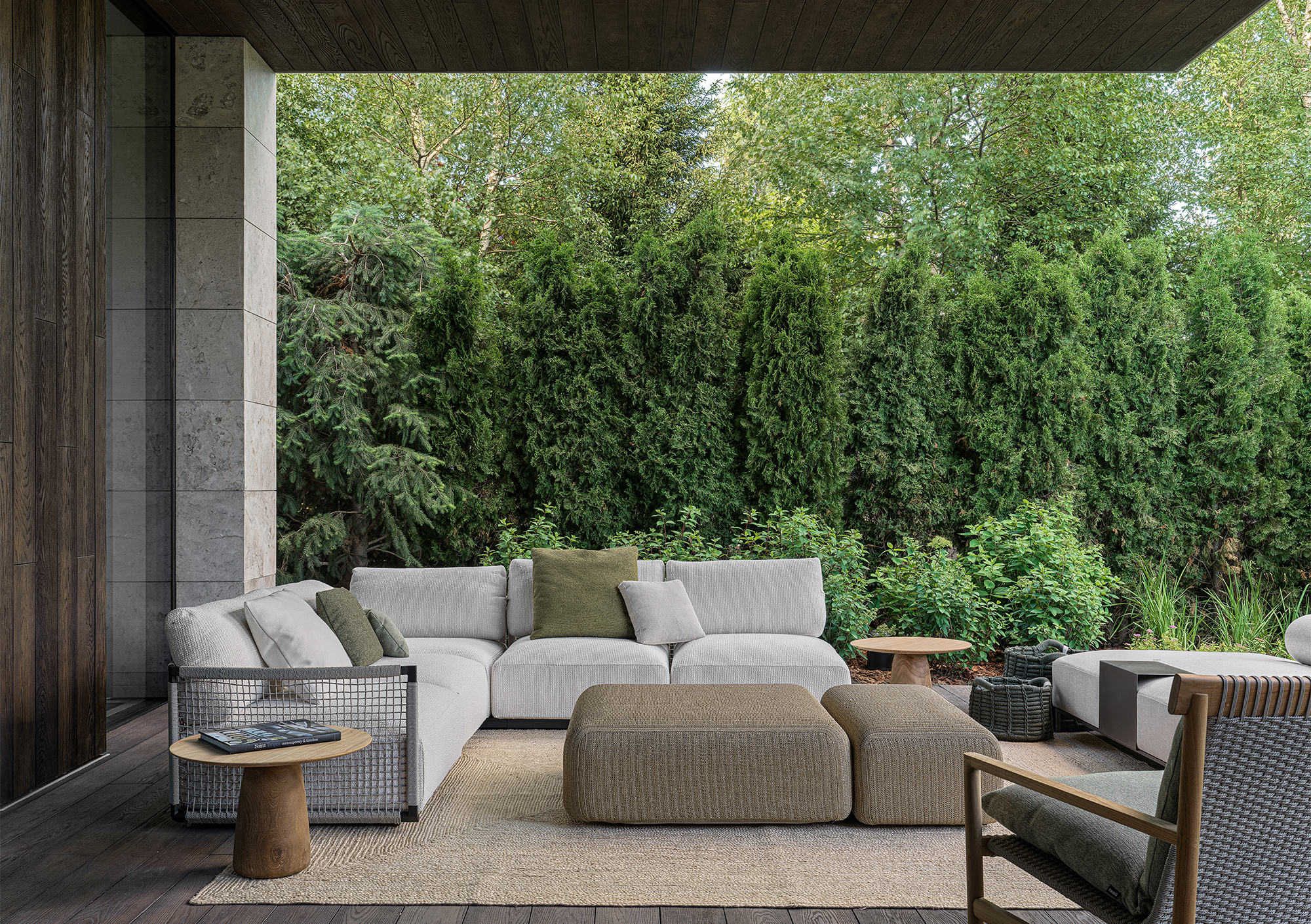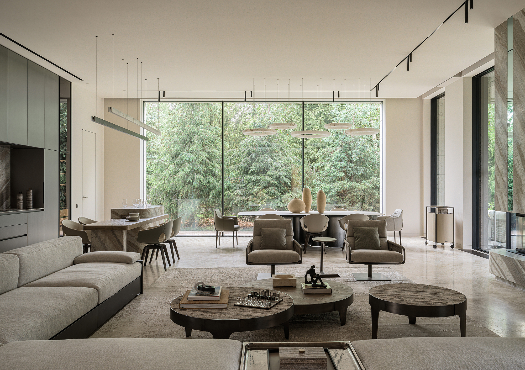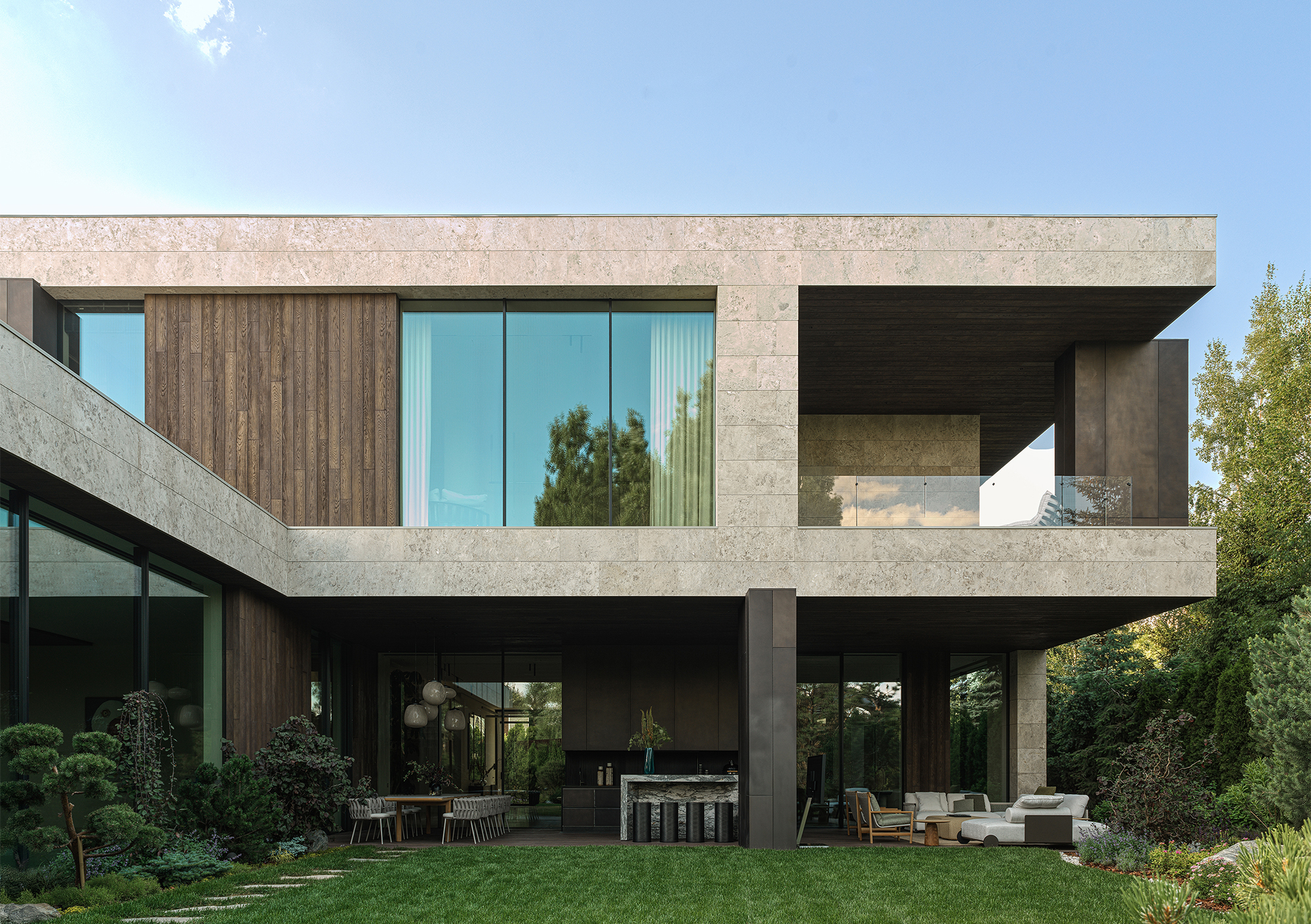In every project where the interior becomes an extension of the landscape, the most important thing is to create a seamless transition between indoor and outdoor spaces — the feeling of unity with nature that permeates every corner of the house. This is not just design, but a philosophy embodied in materials and forms. The most striking elements are often the panoramic windows that blur the boundaries between the house and the garden. They frame picturesque views, turning them into living paintings that change their appearance depending on the season and time of day. I am especially proud of projects where it is possible to create a sense of naturalness that conceals painstaking work and attention to detail. Every element — from the carefully chosen stone in the garden to the vase on the shelf — plays its part in creating a harmonious whole.