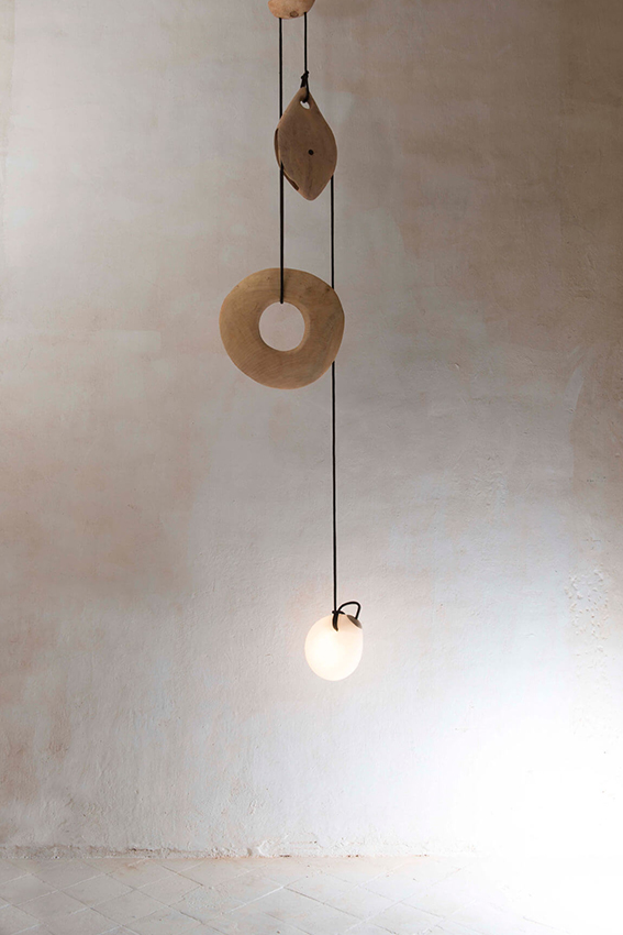 Jerome Pereira creates lighting sculptures with a rough and gracious presence. Coming from a scientific background, his sculptures, as equations, propose a familiar vocabulary (bows, pulleys, rings, cubes, counterweights) opening to an unknown factor. A catalog of shapes with a surrealist consonance leading to a playful combination of tension and equilibrium.