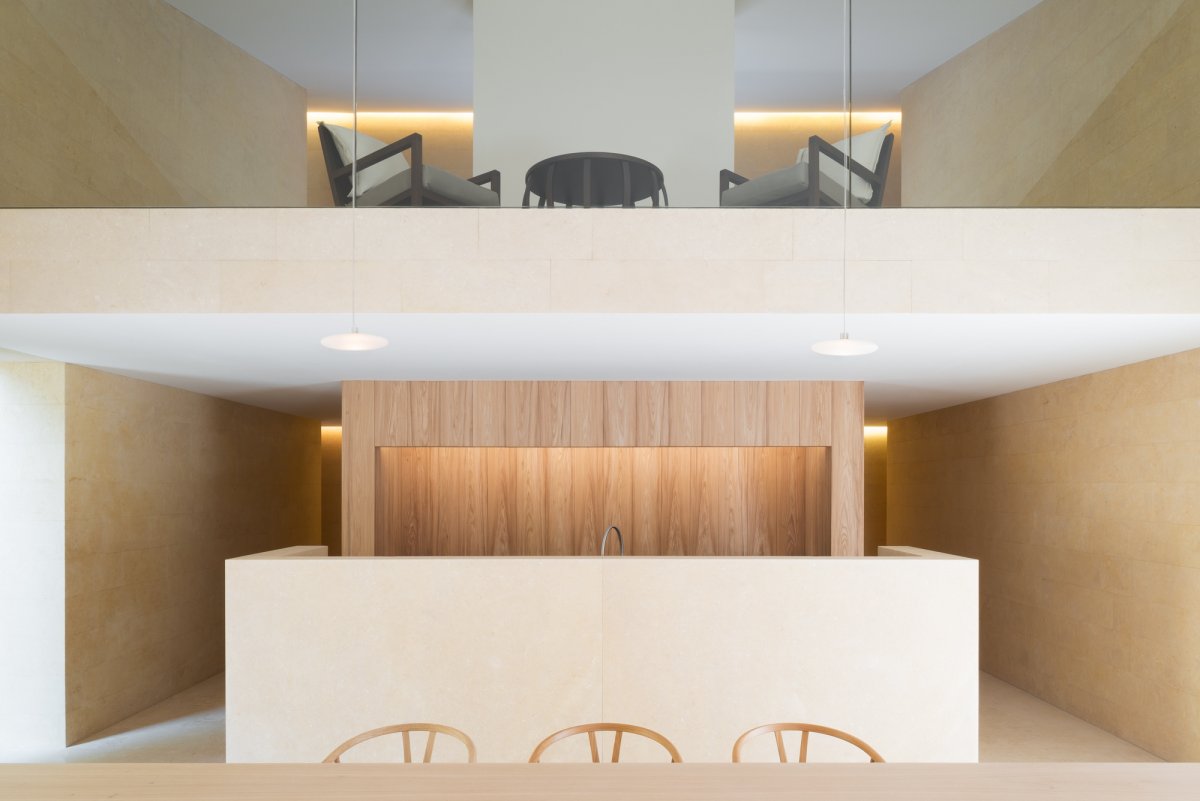 Guest rooms also face the sea and are located on the side below the cliff. The design language of the project is a simple cubic geometry and a shallowly pitched roof plan that draws on the precedents of traditional indigenous forms.