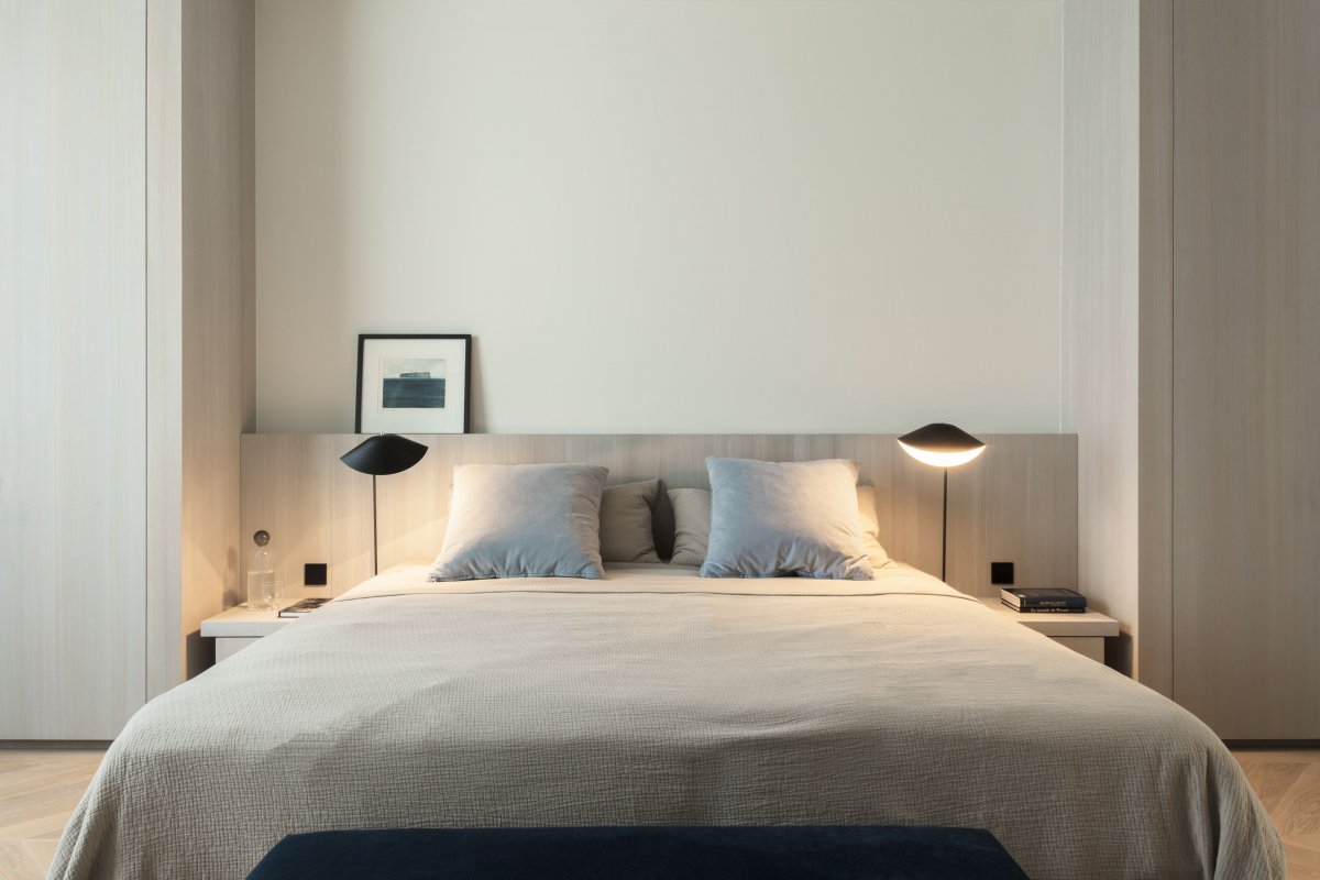 The main floor is the daytime area, where a large open-plan kitchen dominates the floor. In the neutral tones of this space, Juma Architects wraps the kitchen island in a polished copper finish that vibrates the space by reflecting the surrounding landscape. The first floor is the master bedroom, which has a dressing room, bathroom, desk and additional space for other rooms or offices. On the second floor there are four additional bedrooms and associated bathrooms.
