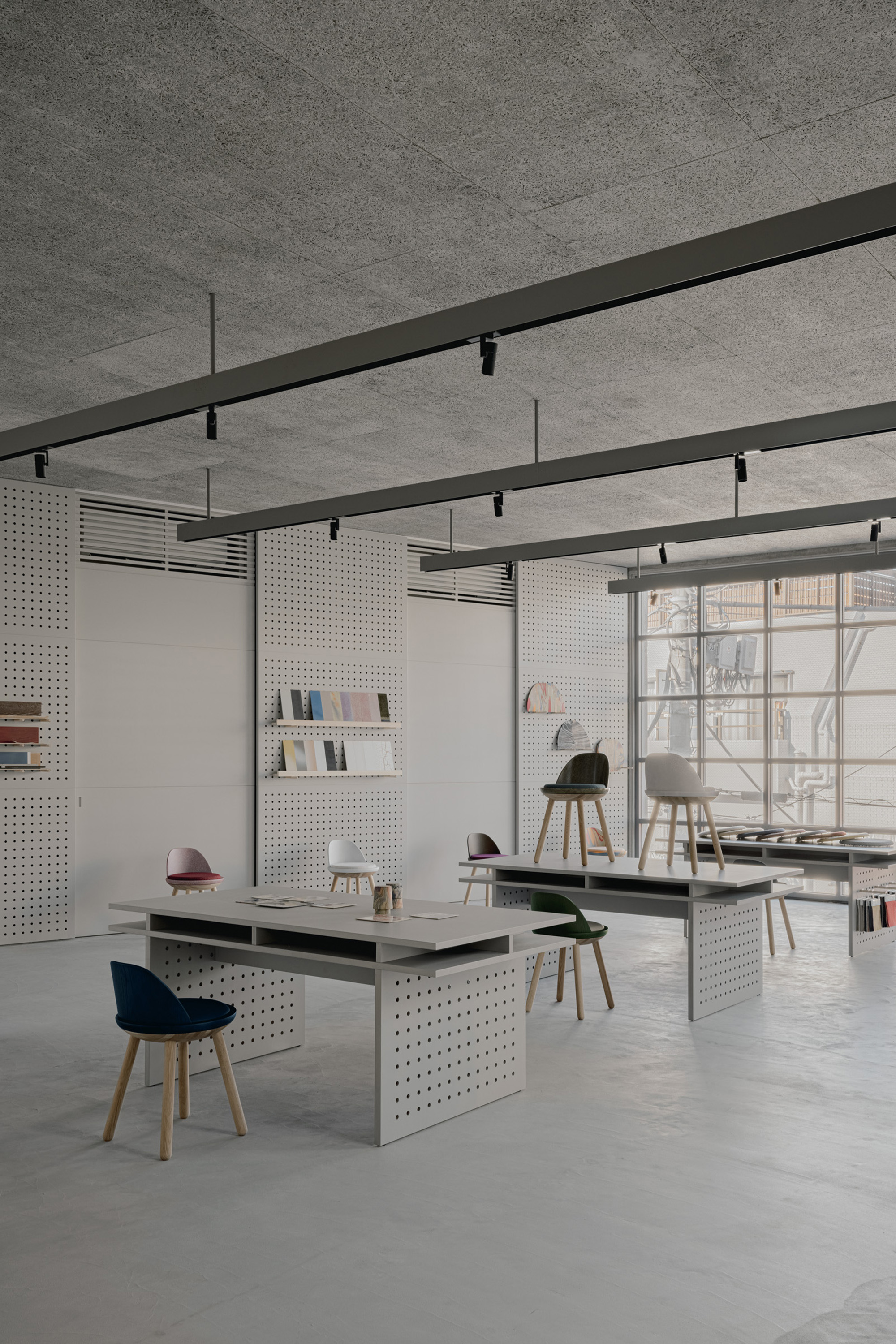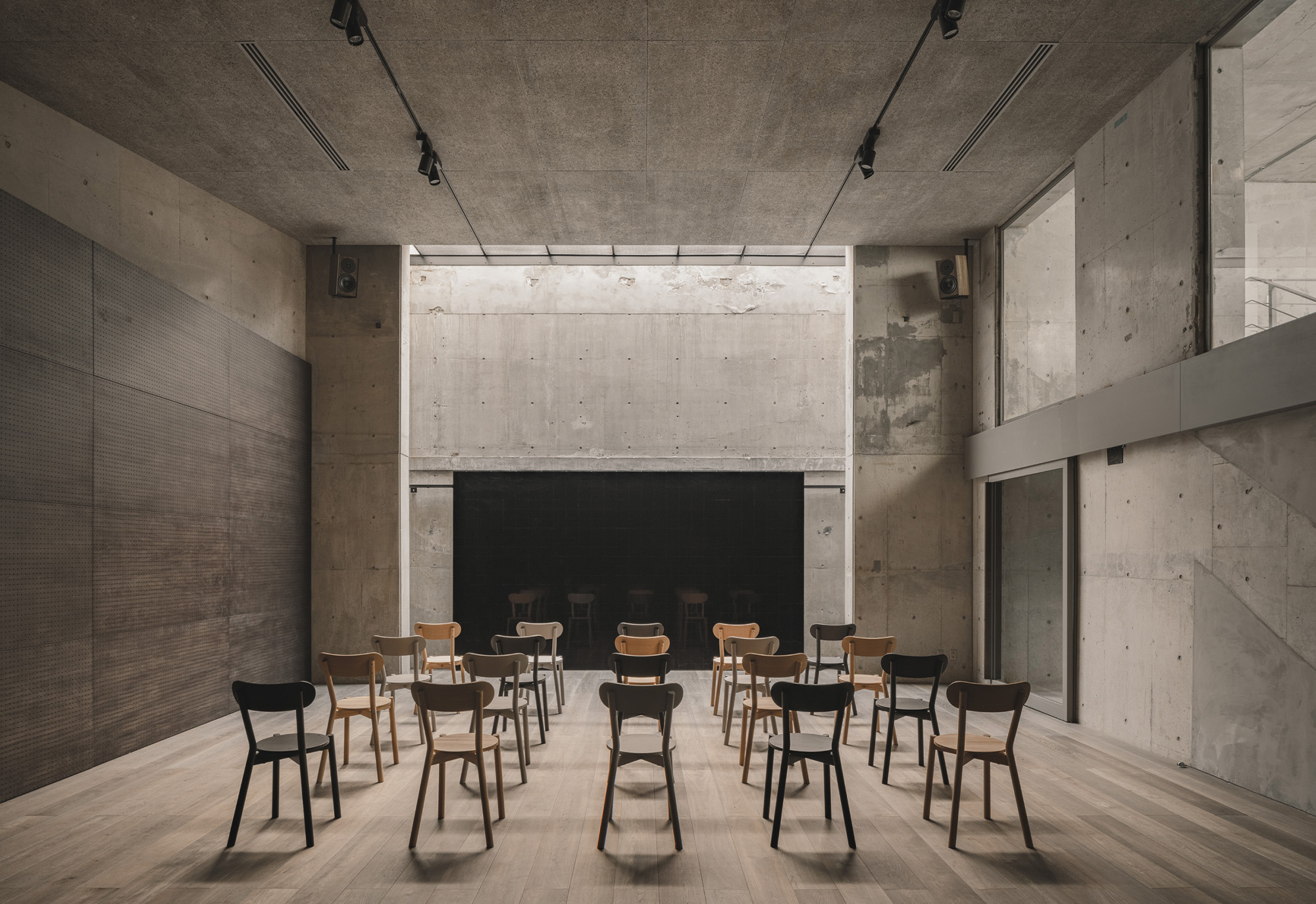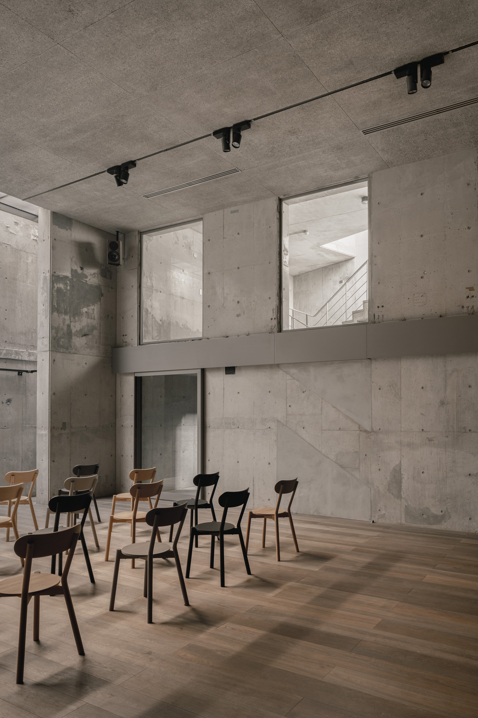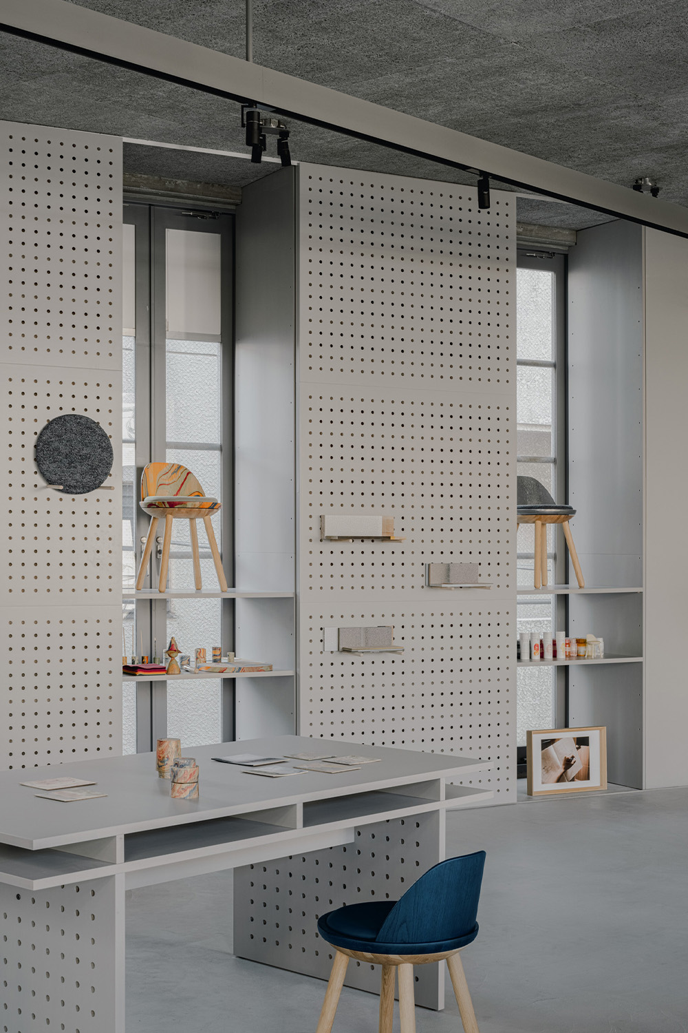 Designed as a hub for innovation, the building features a multi-purpose space (THE STUDY) on the basement floor, a gallery (THE ARCHIVE) on the first floor, and a library (THE MATERIAL LAB) on the second floor. These areas are interconnected through a dynamic open atrium.