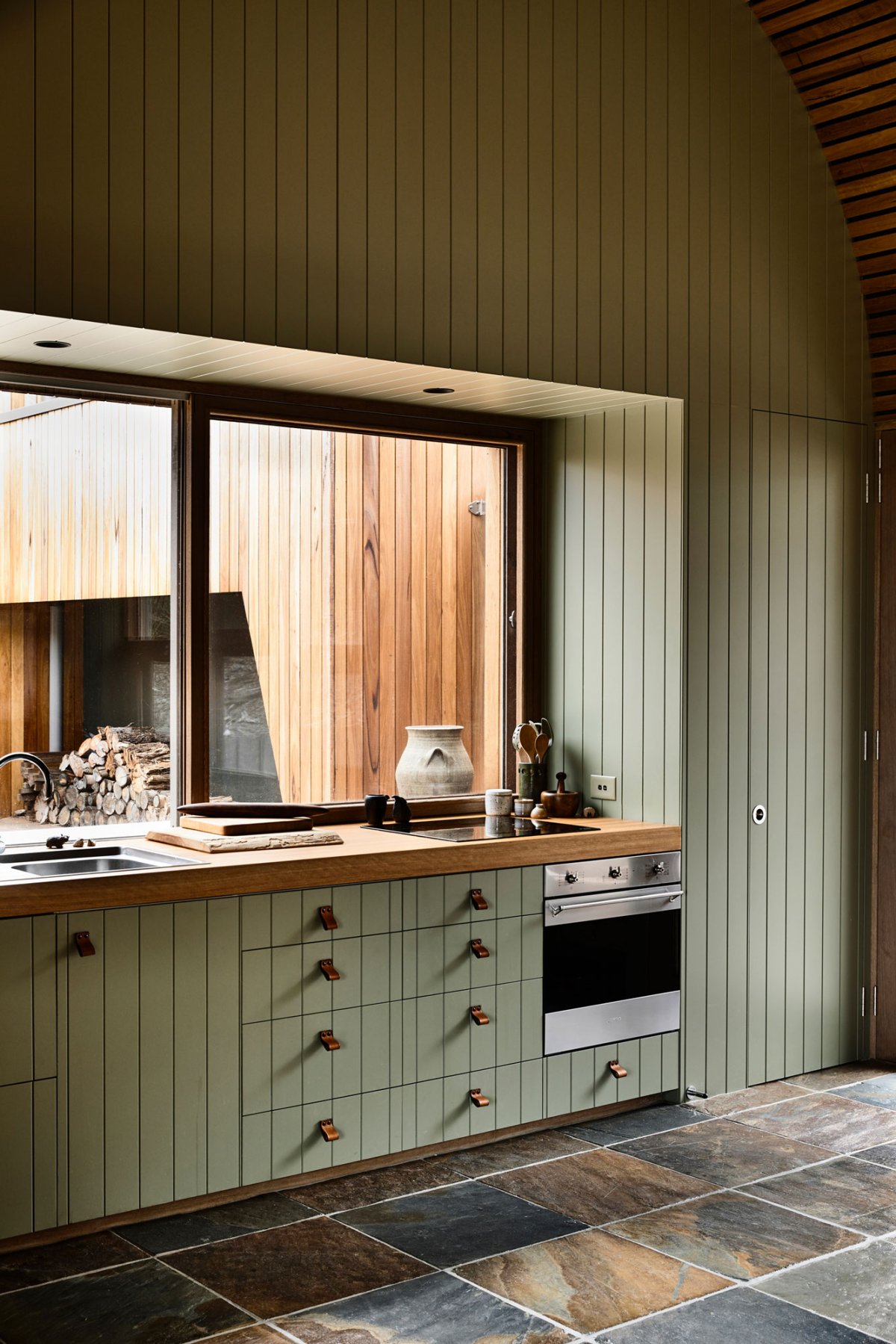 The house is principally built from timber suitable to its bushfire prone setting, ultimately designed to grey off and be camouflaged in its indigenous planted setting. The underlying aspiration of the design is to make a house which reflects and amplifies a genuine connection to place which has evolved over generations of family holidays.