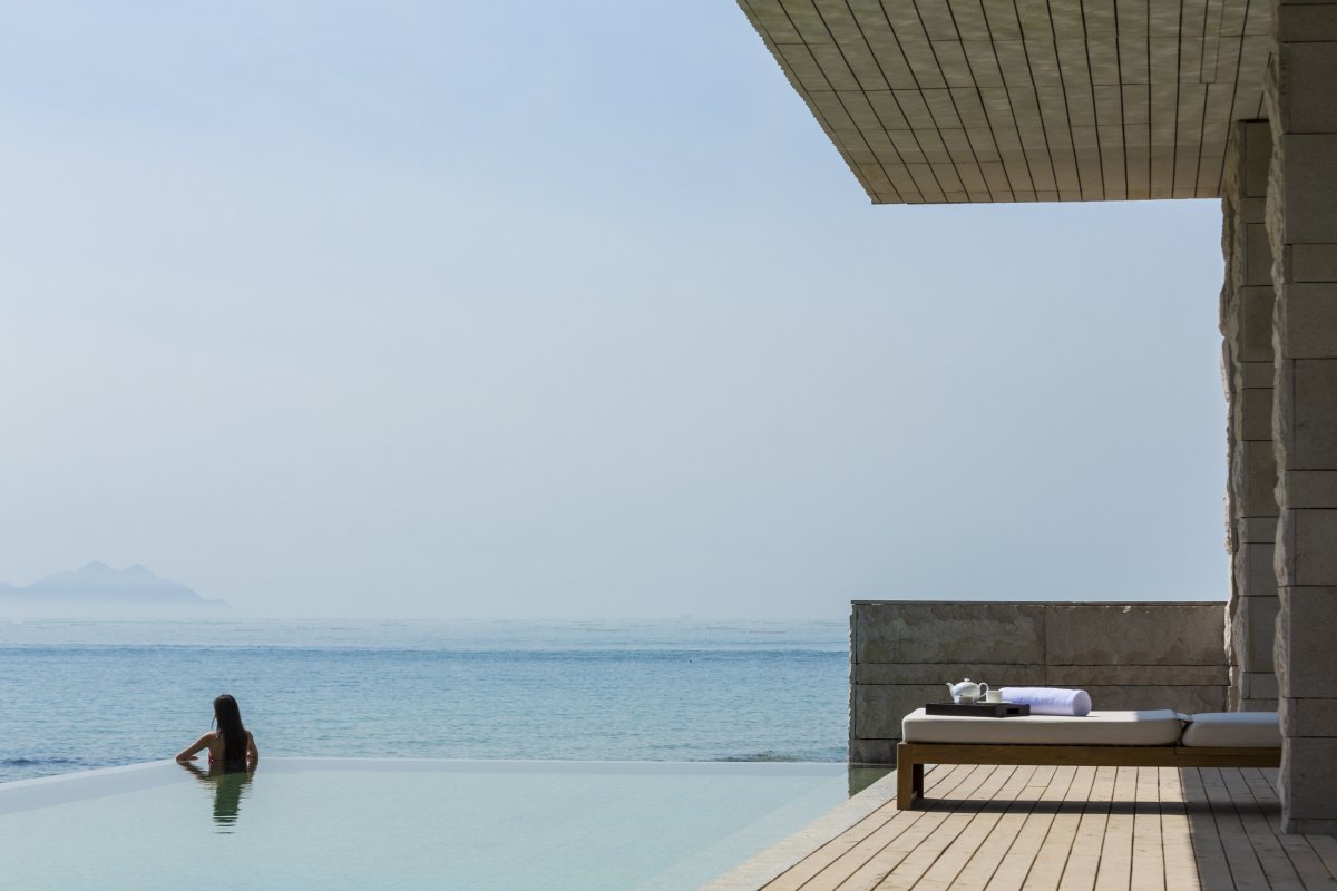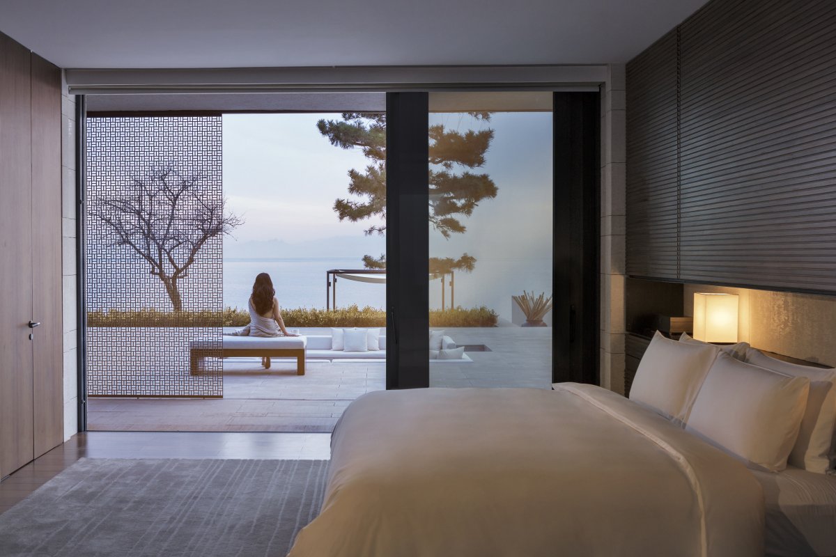 The total number of guest rooms in the Lalu Qingdao is 161, and each room is about 100 square meters. In order to make each room fully enjoy the sea view, the traditional structure of building guest rooms on both sides of the walkway is abandoned. One-way structure, while the indoor floor-to-ceiling windows are ten meters wide and sit 180 degrees.