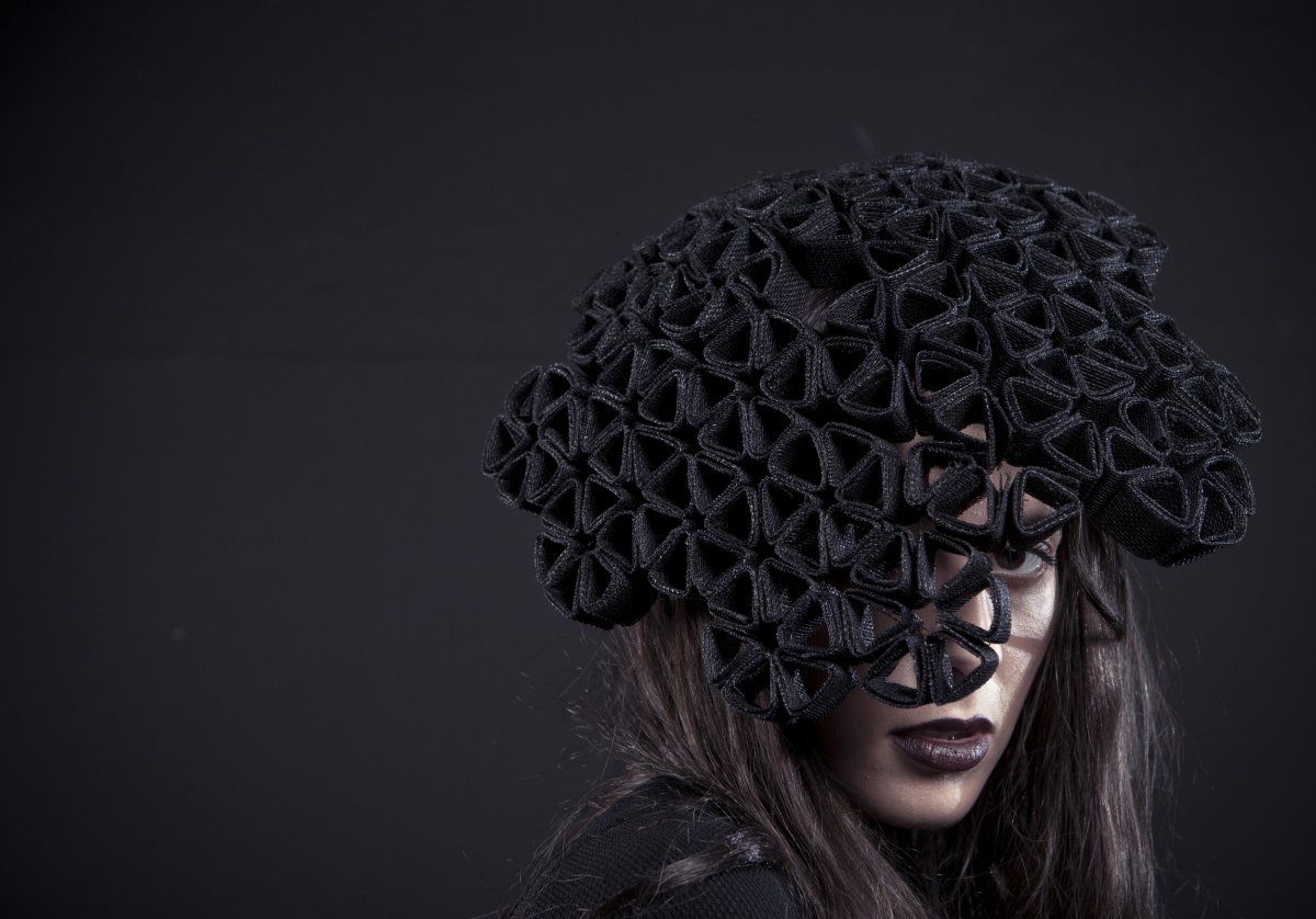 Laura Kinsella work is created entirely by hand using traditional millinery techniques which she have taken and absorbed into the creation of own unique techniques. The work generally tends to concentrate and focus on each piece as a collective textile development and a stand alone structure whilst then also allowing it to be a considered piece of design which is then wearable art.