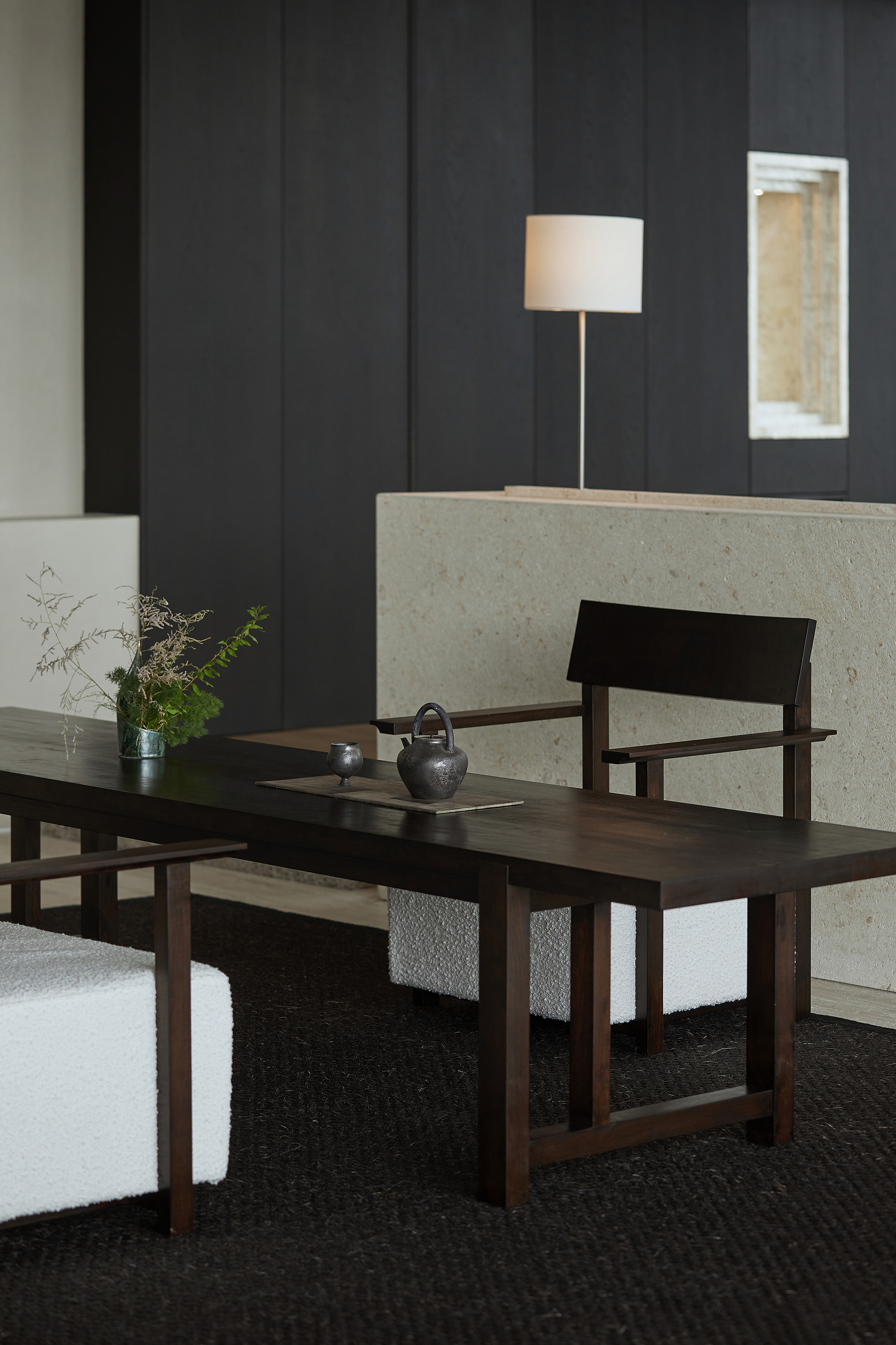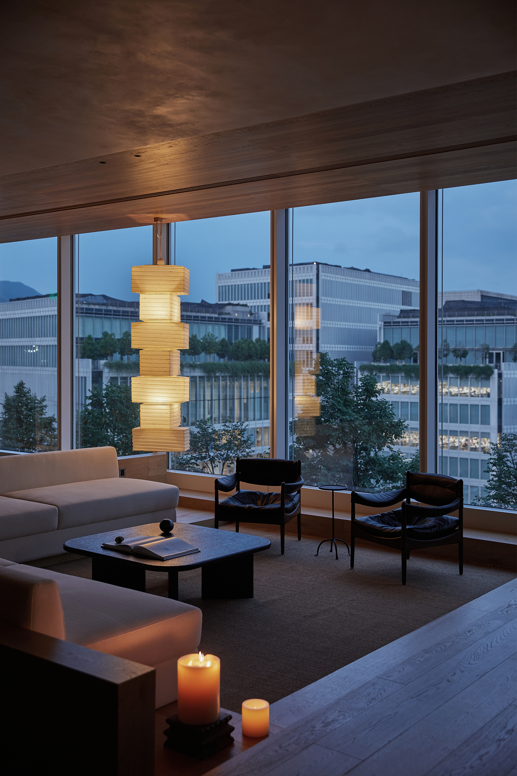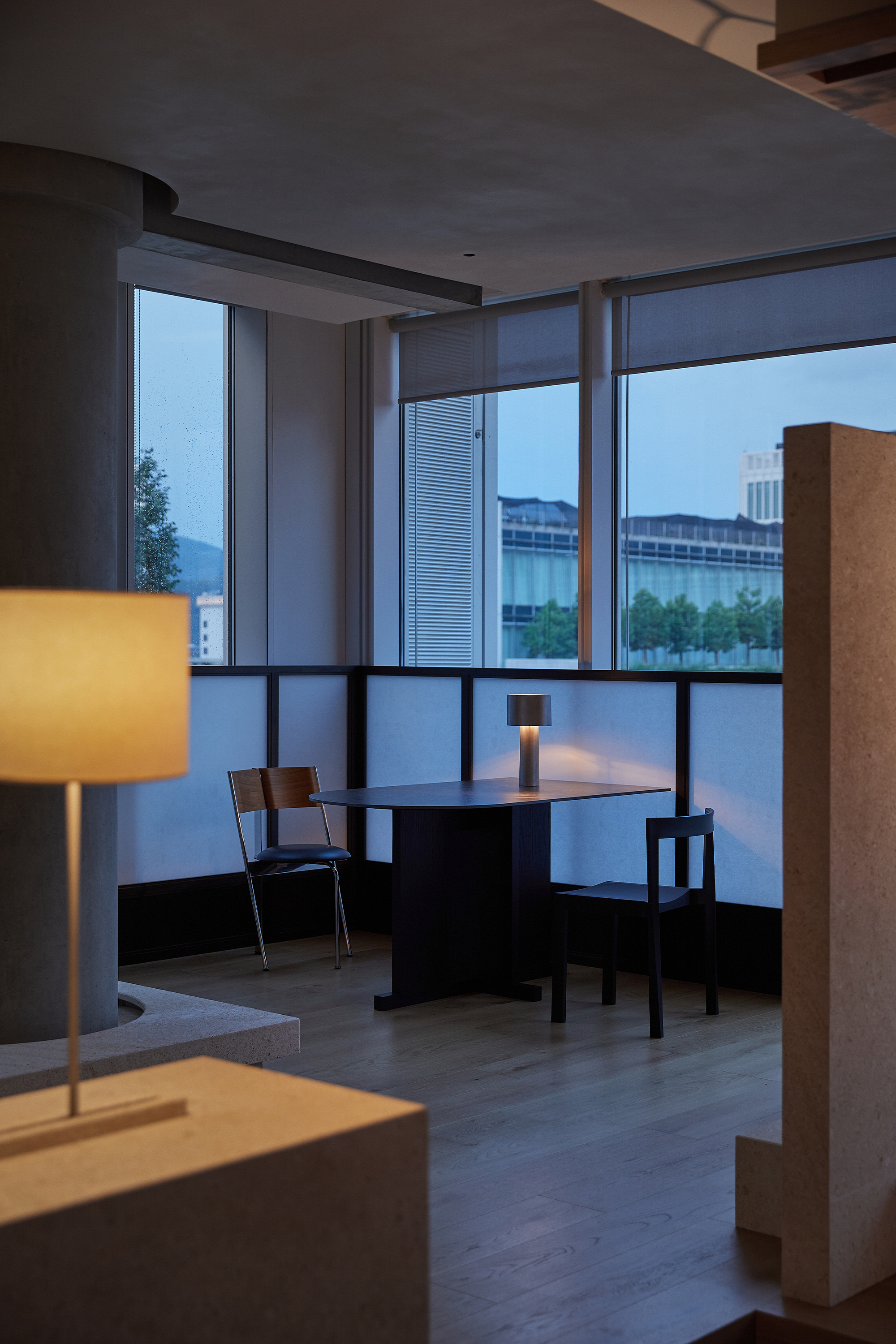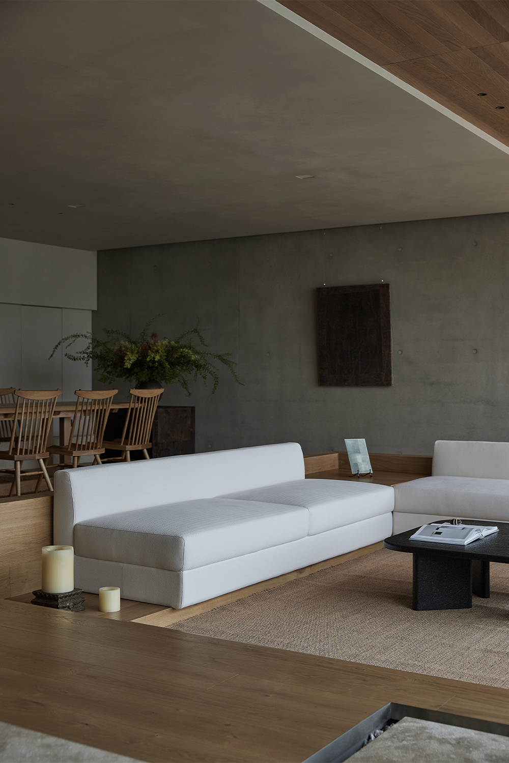 The elevated public area and the sunken negotiation area form a height difference, enclosing a scale similar to a family living room. People can sit here and have a conversation facing the landscape and nature. The height difference and layout of the space guide the natural occurrence of communication, making every conversation immersed in relax.