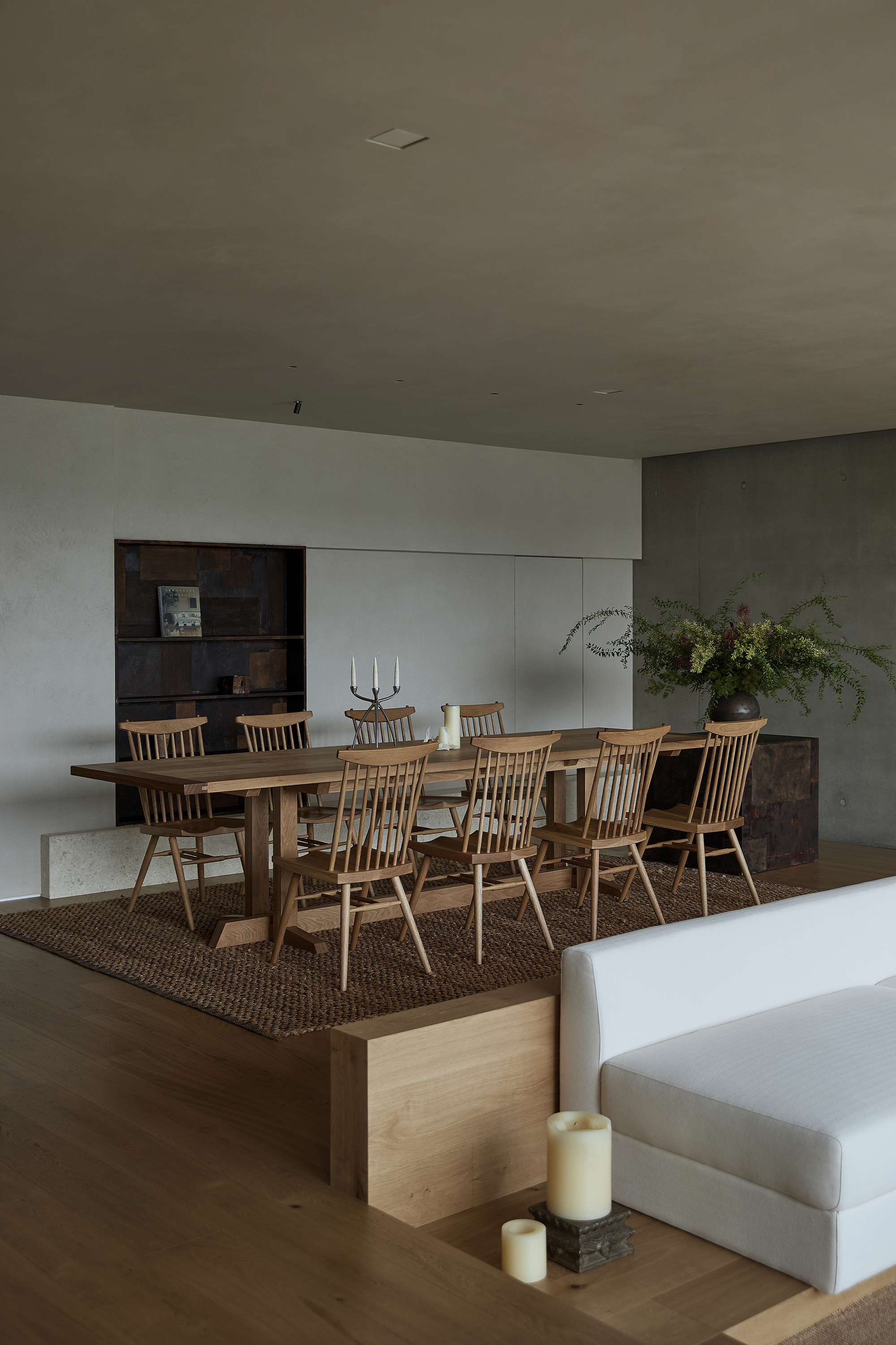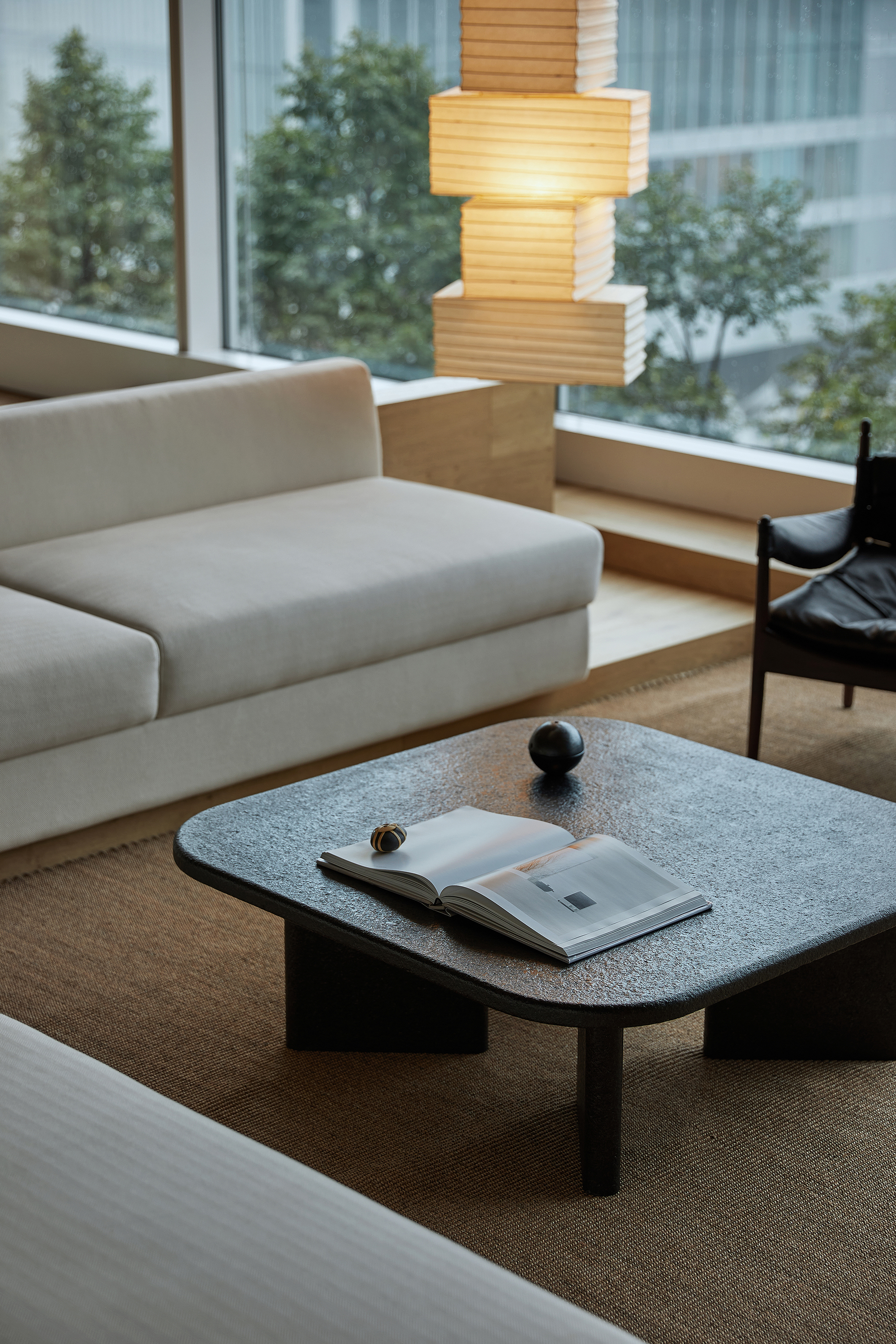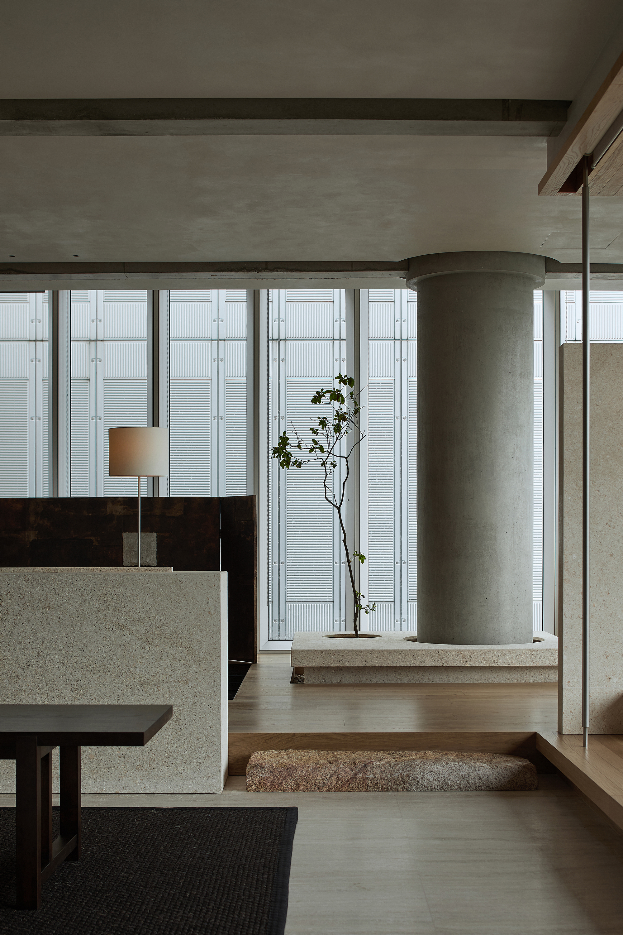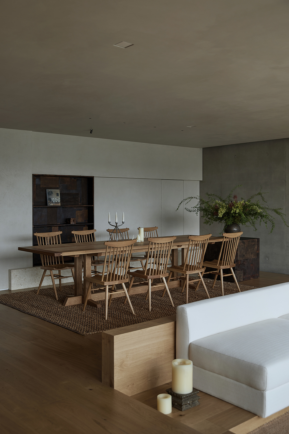 The elevated public area and the sunken negotiation area form a height difference, enclosing a scale similar to a family living room. People can sit here and have a conversation facing the landscape and nature. The height difference and layout of the space guide the natural occurrence of communication, making every conversation immersed in relax.