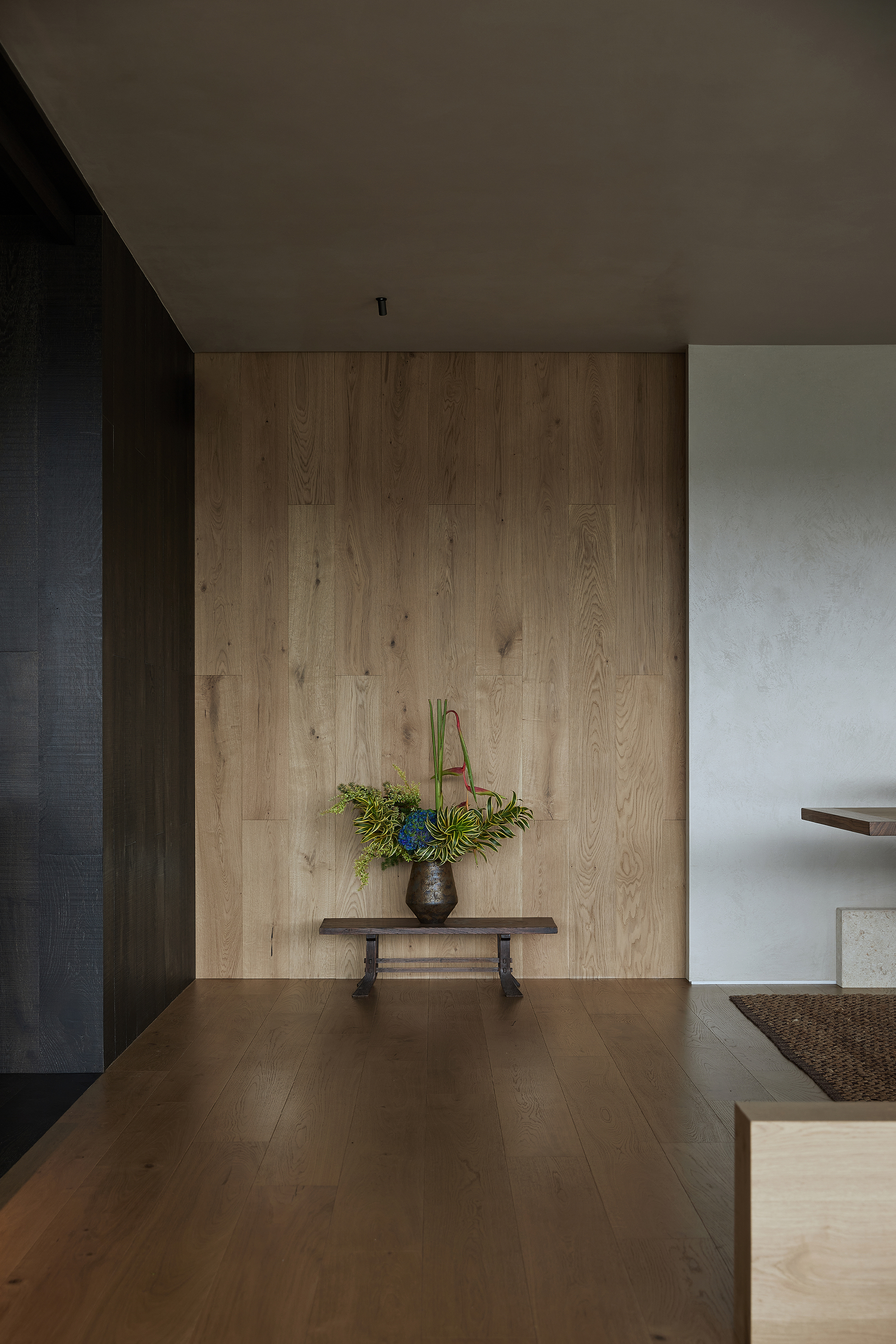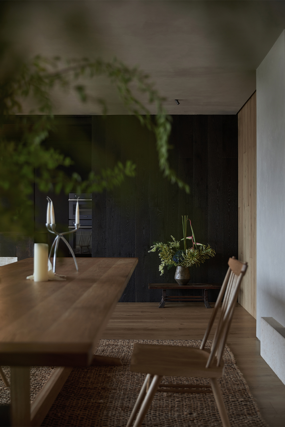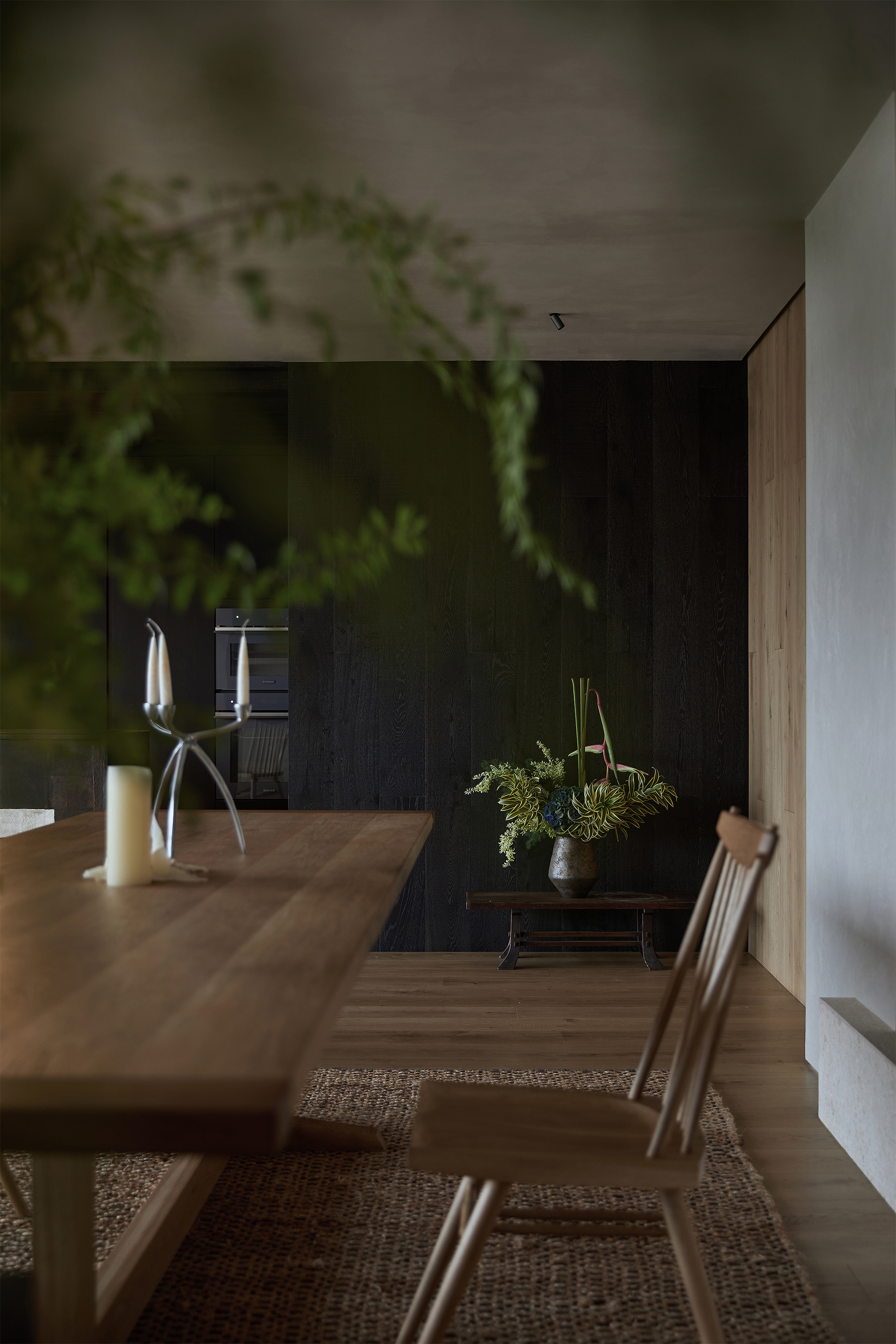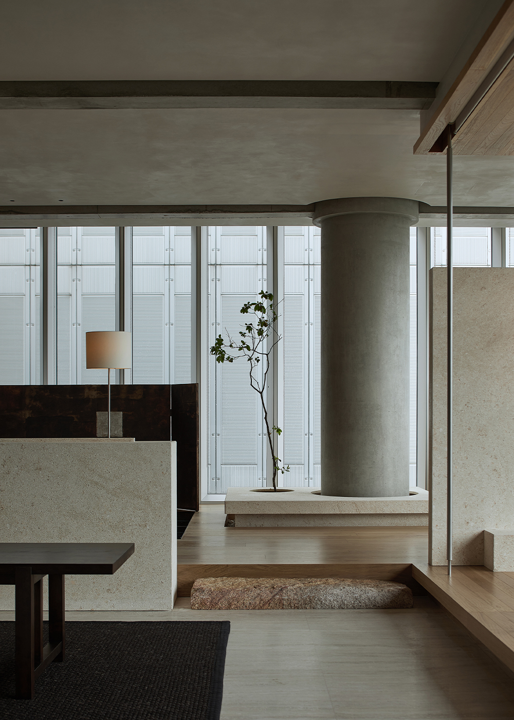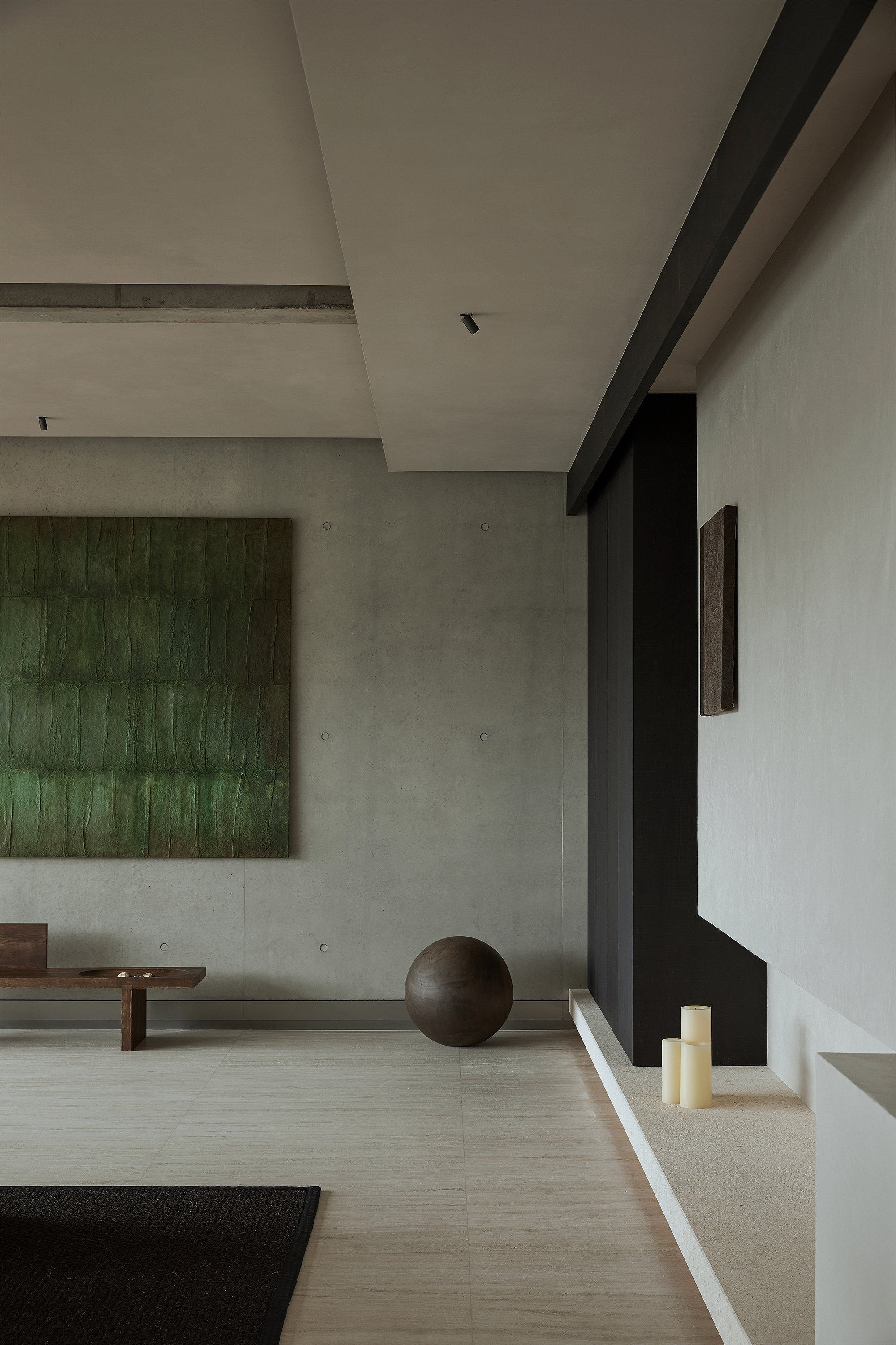 In terms of material selection, we have retained the original gray cement wall in OōEli and incorporated warm wood and natural stone. Different textures harmonize with each other in collision, softening the coldness of concrete and injecting a "home" temperature into the space. The bar counter polished with lacquer is connected to the original cement structure, establishing a dialogue of rigidity and flexibility between traditional craftsmanship and modern construction.