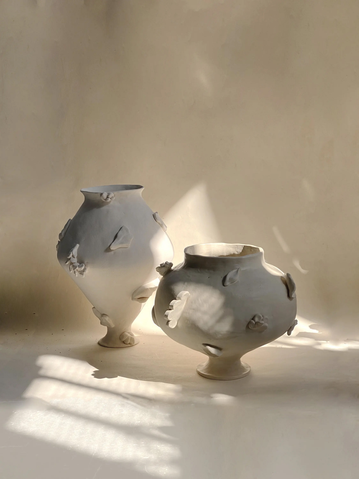 Ceramic artist Morgane Pasqualini was born in a small village in the heart of the French Alps and currently lives in Paris. She spent her lonely childhood exploring the natural world around her and developed an extremely deep relationship with the plant world. Her art reflects this connection to the land and the organic shapes in nature.