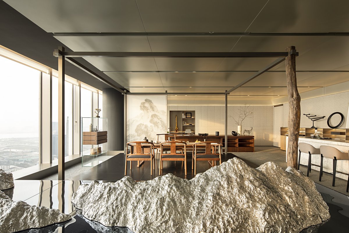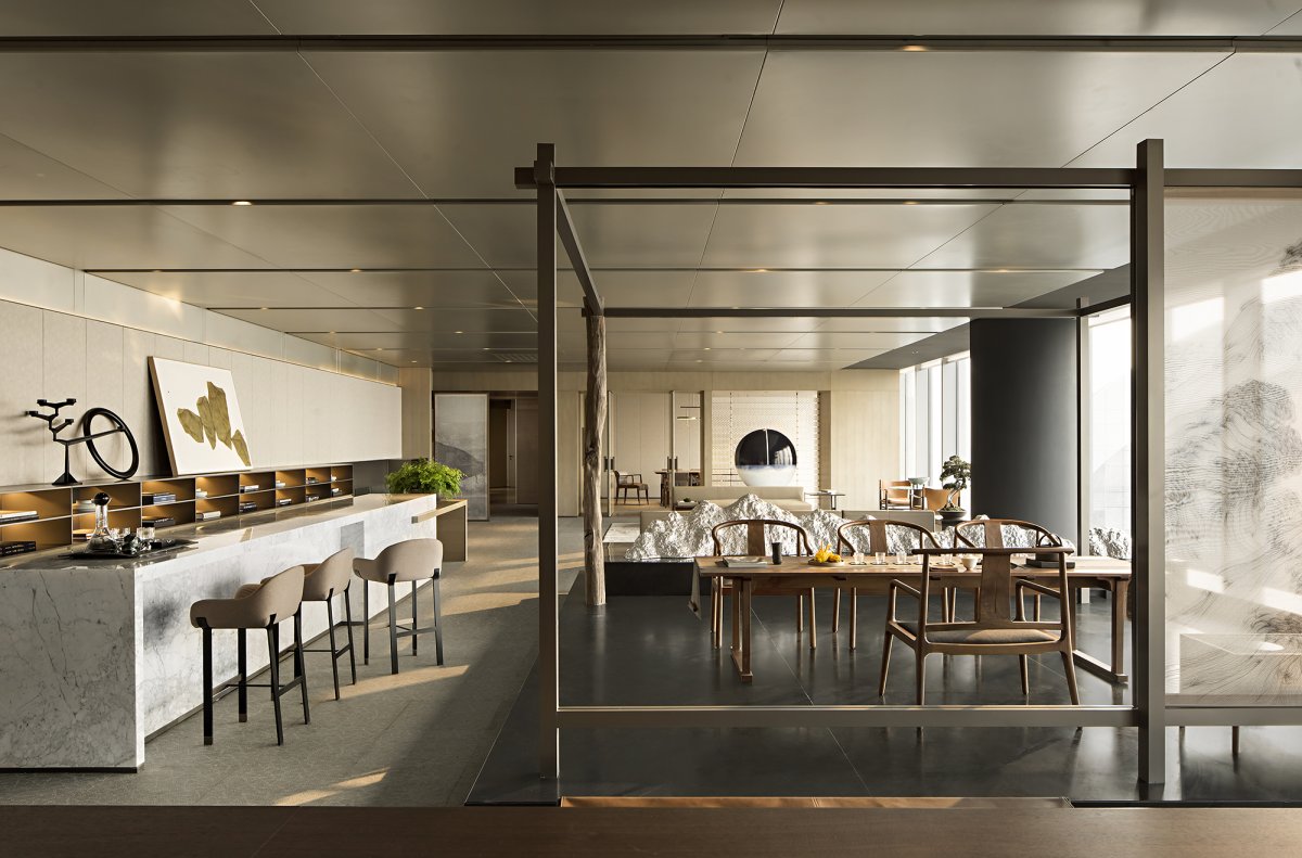 Absorb Oriental refined interest, will be graceful, delicate and minimalist hidden inside, alone to lead the Oriental aesthetic elegance. The whole interior space simplifies the complex, abandons the tedious and boring, and presents the artistic conception beyond the material surface with the natural image of mountains, stones, grass, wood, running water and other ordinary things.