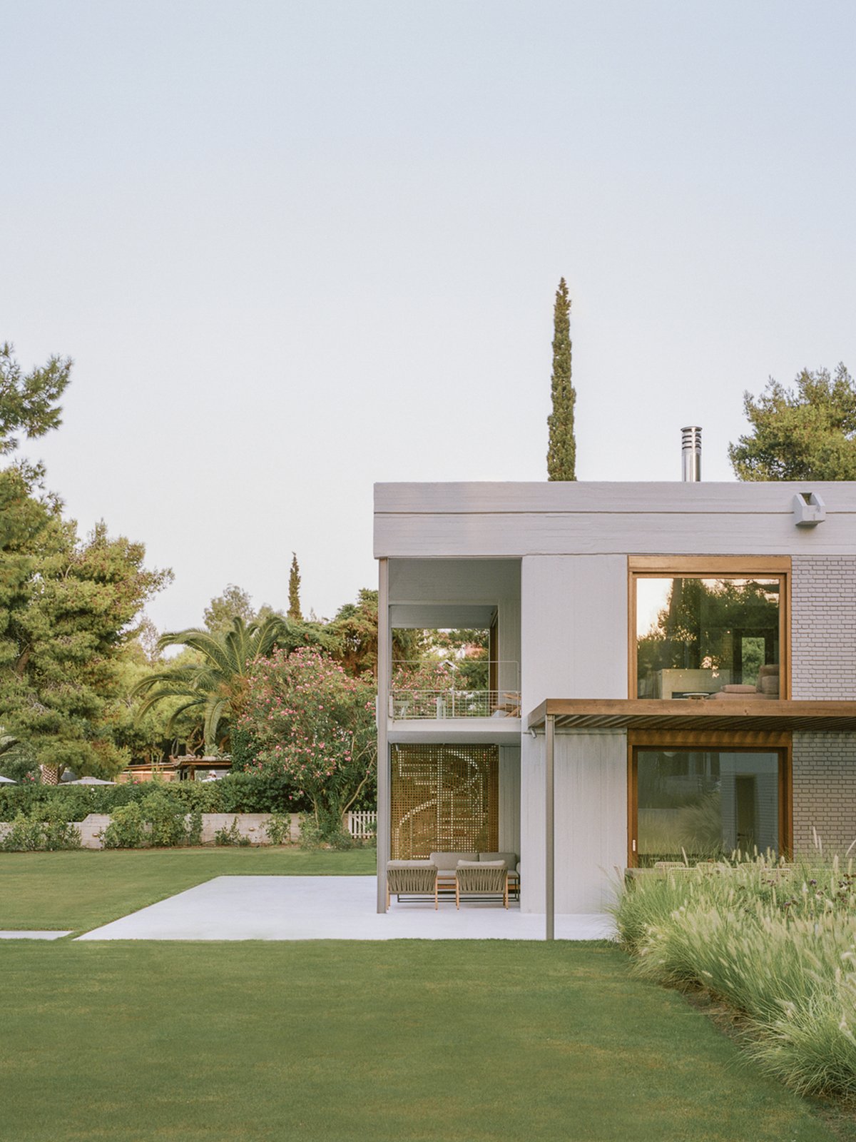 An initial structure on the site, designed by Greek architect Nikos Hadjimichalis in the 1970s, has been extensively renovated, reconfigured, and extended. Many of the original modernist details have been recreated and updated, but also complemented with playful new additions.
