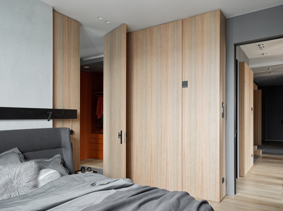The customer, a young and very active girl who traveled the whole world, clearly set a task for Nido Interiors: to create a modern, technically thought-out project, automating the space of her home as much as possible. The apartment has a modern air purification, cooling and ventilation system, which is even equipped with the function of aromatization of air, often used for public spaces, shops and hotels. It also introduced automation of lighting systems, speakers, etc.