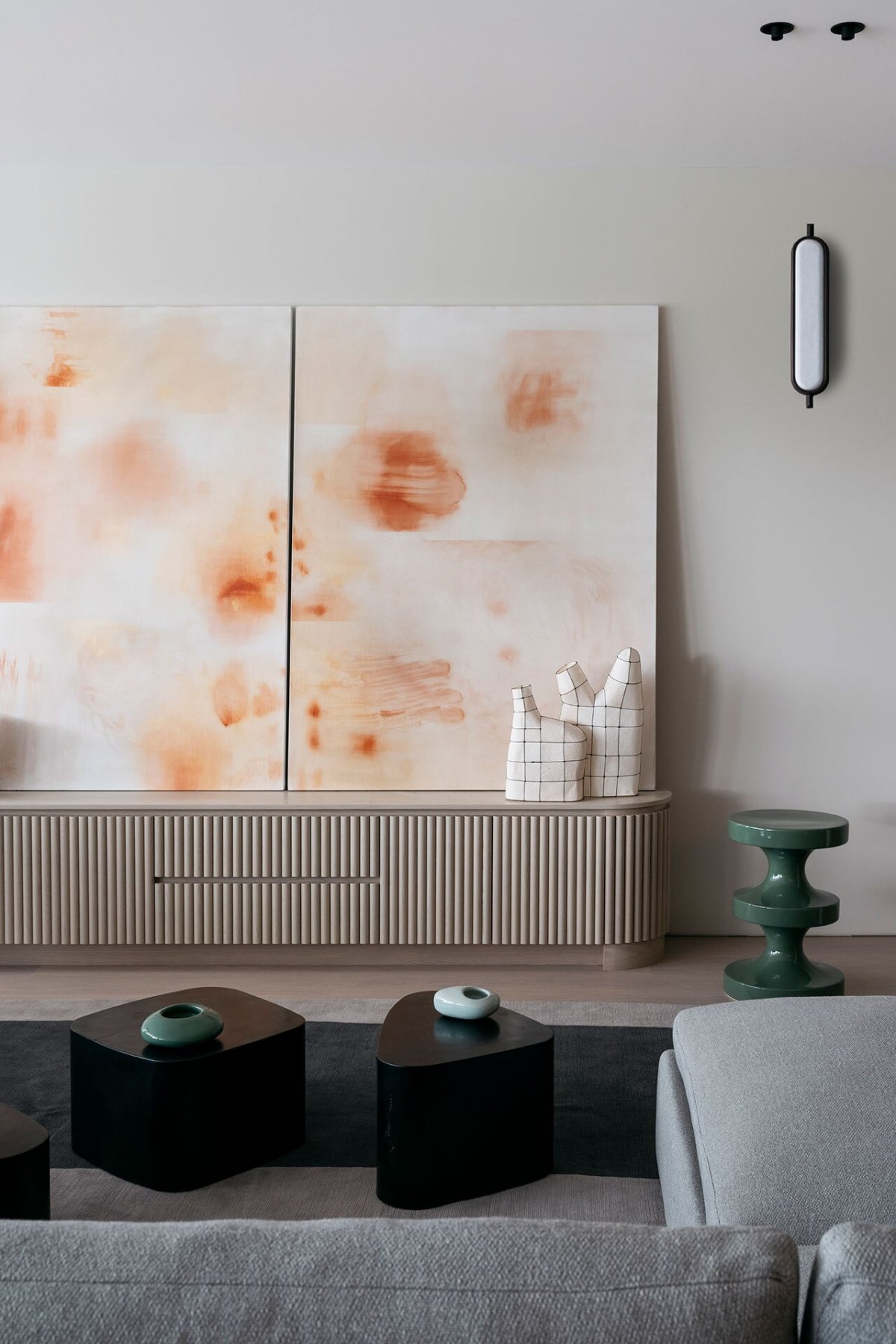 Nina Maya's preference for organic lines and curvilinear shapes is a defining feature of interior design. Open living Spaces include a dining area, kitchen and living room. Curves are applied in all three areas, mainly in the form of seats. Several custom-made pieces of furniture, such as a coffee table, dining table and dining chairs, are located in the heart of the house in this concentration. It focuses on neutral tones, alternating with expressive colors in a controlled way. In addition, Northbridge House has offices, sitting areas and several bedrooms, including a guest room and a master bedroom with an open bathroom. The sink is made of Italian marble to contrast with the rest of the room's surfaces. In every part of the North Bridge house, the material potential is fully exploited, and the interior decoration is completed by appropriate decorative pieces and artwork.