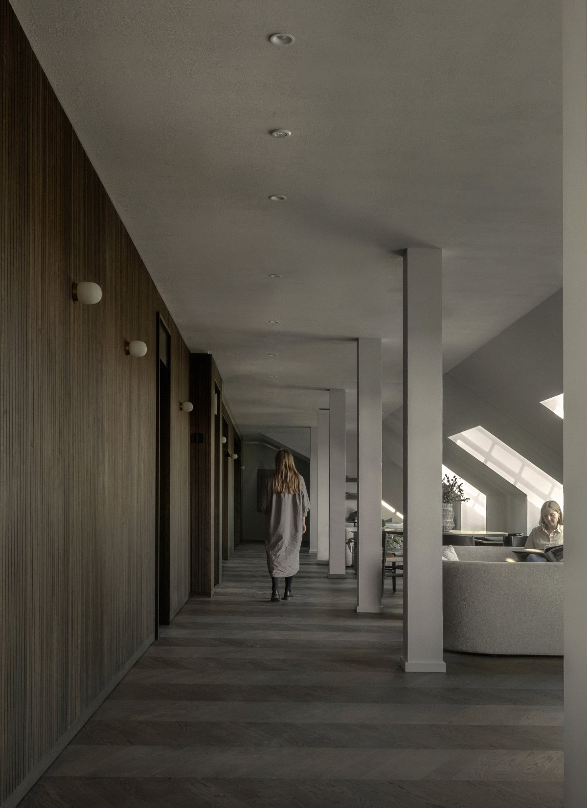 The existing building, which has many of the original and impressive structures preserved, has a close association with the historic Linden tree and was a major inspiration for Norm Architects. Designers know exactly how to accentuate this inner spiritual message in a way that is appropriate for the present.