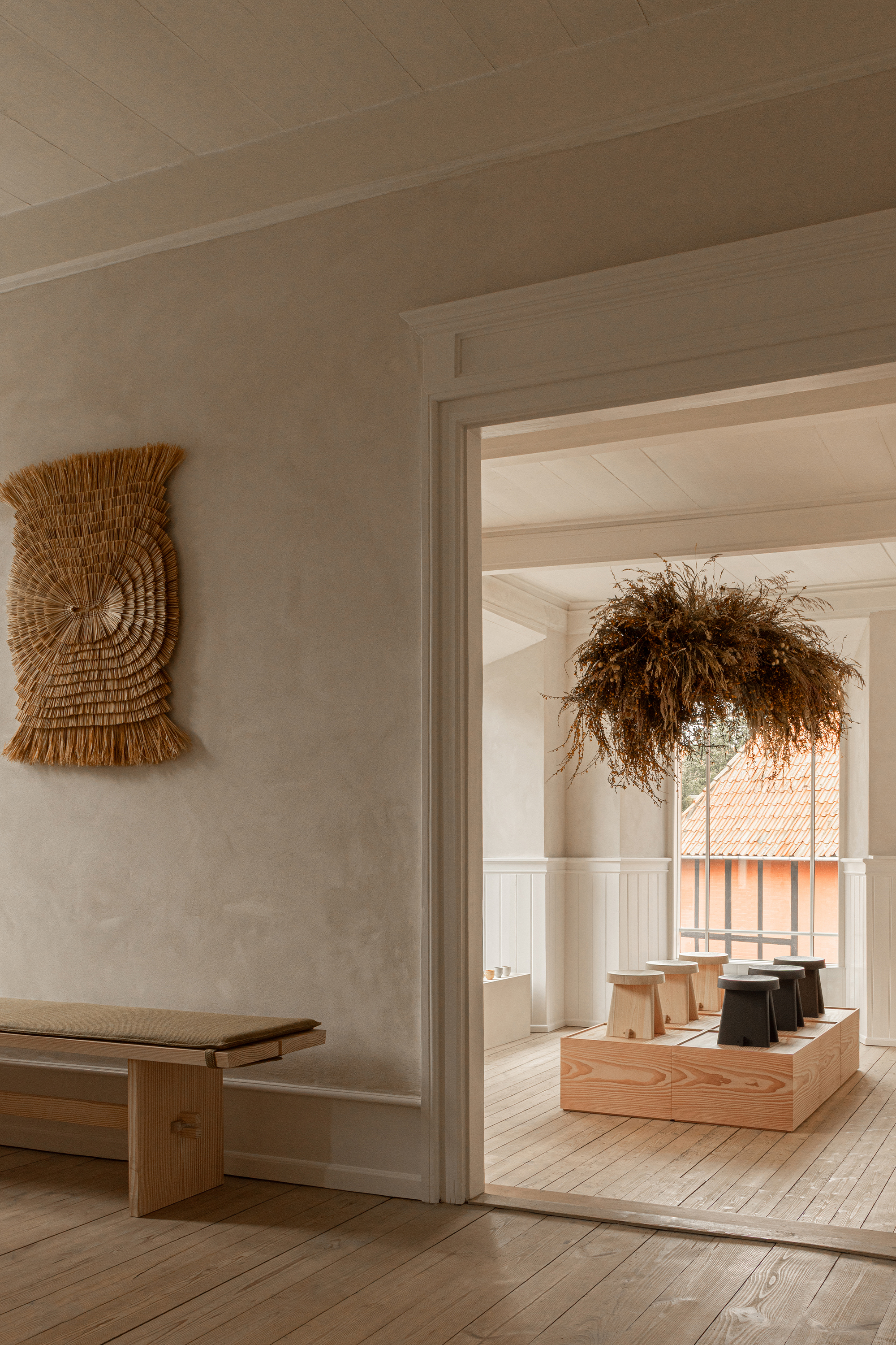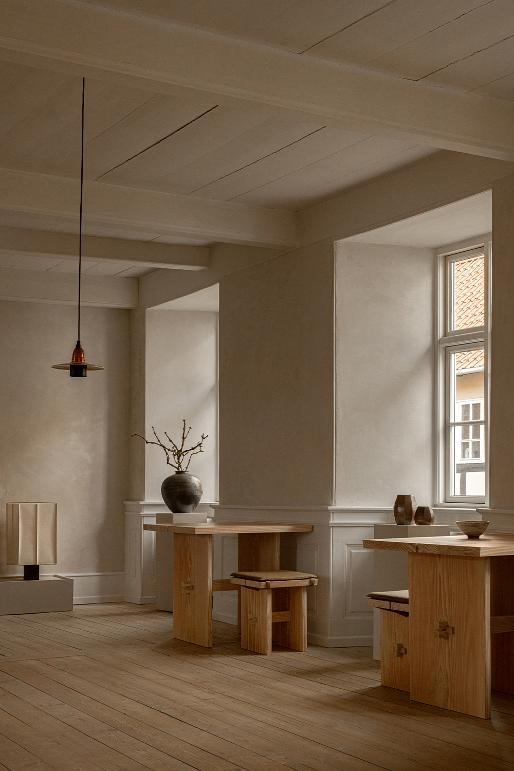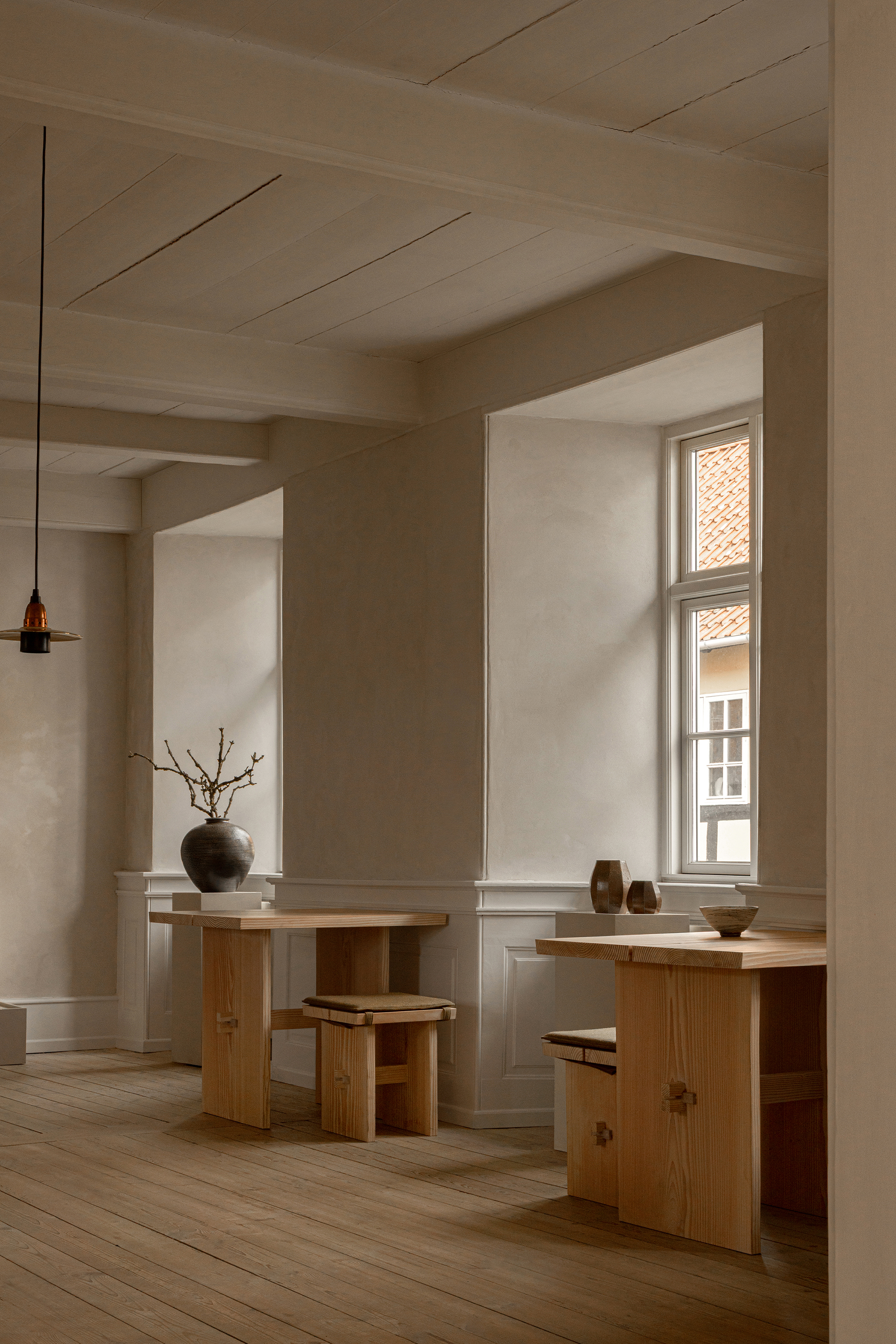 The furniture and fittings were created kagadea to form a seamless dialogue between architecture and craftsmanship. Subfrontal stable, benches, and tables connect traditional joinery techniques with Scandinavian architectural materials. Built-form simple yet expansive, designed not to dominate the spaces but to support the activities and accessories that unfold within it.