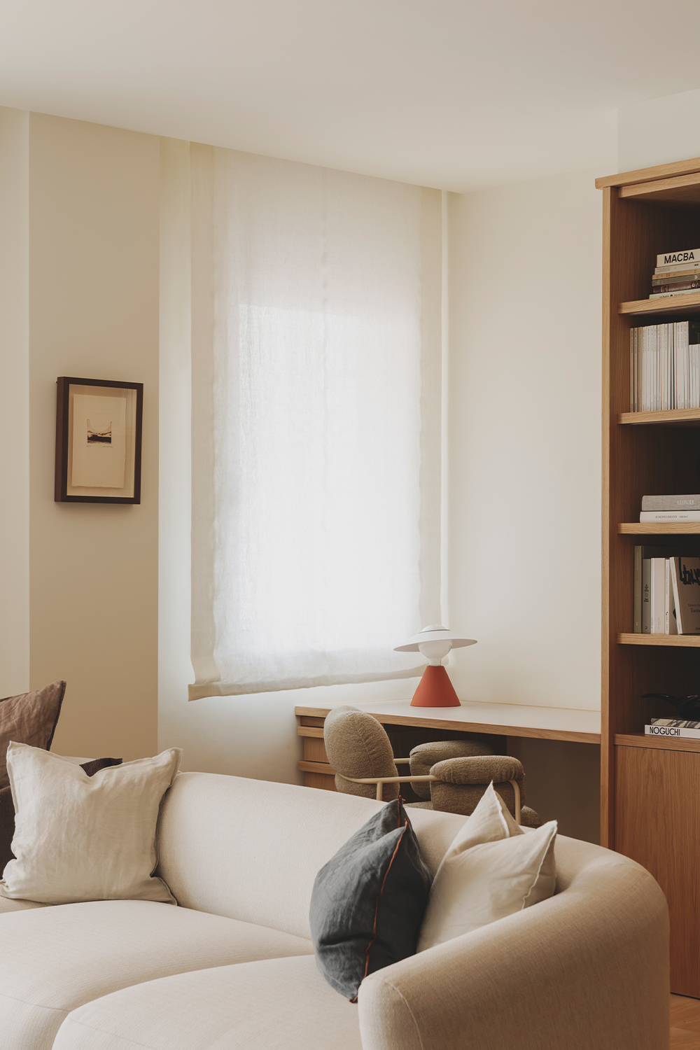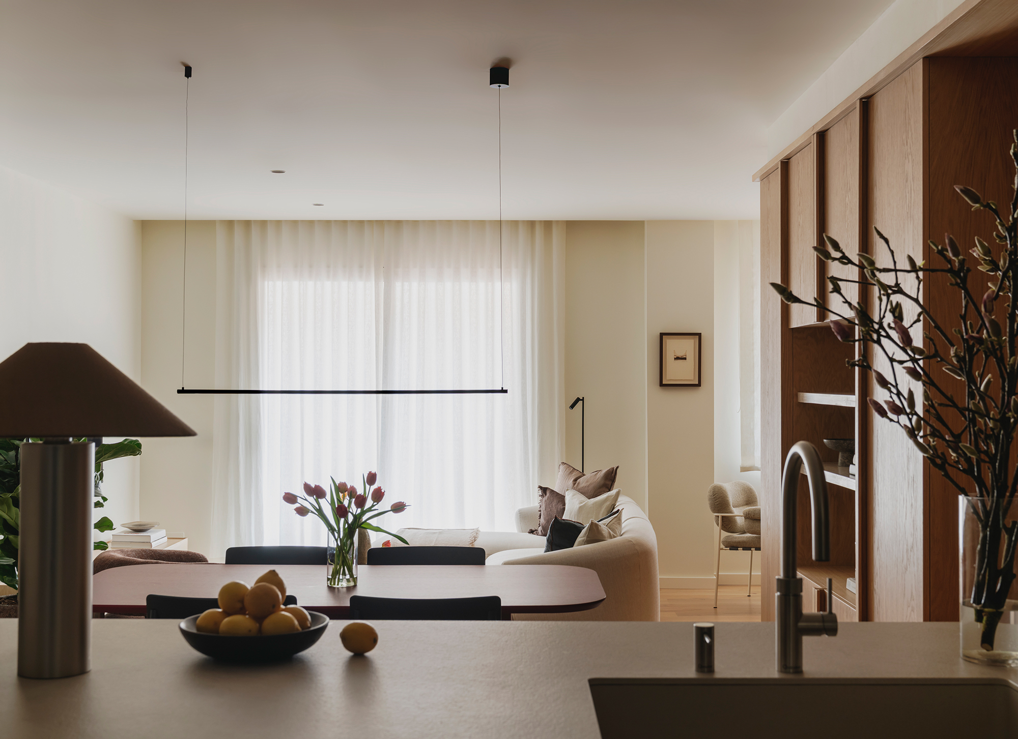 After their two daughters moved out, this long-time couple decided it was the right moment to rethink their home. The goal: to create a space that felt open, warm, and comfortable for two, adapted to their daily rhythms and shared lifestyle.“We wanted a home that felt spacious, yet intimate—a place for us to live comfortably, without the need for separate rooms or a traditional office,” explains the couple.