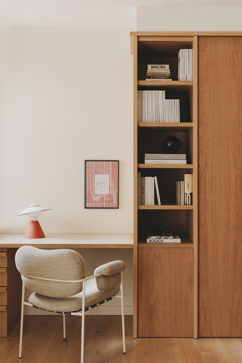 Their shared love for the color red became a thread throughout the design, introduced in carefully measured doses. “Red is a color we both love, so we made sure to incorporate it in just the right places: in the custom-made dining table and the interior of the walk-in closet, which is designed like a little surprise,” the clients explain.