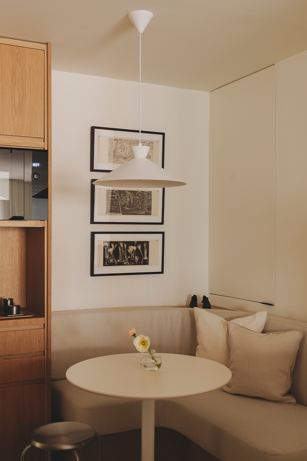 As part of that vision, “We designed a continuous piece of furniture that runs through these spaces, subtly defining the transition between the social areas and the more private zones.”