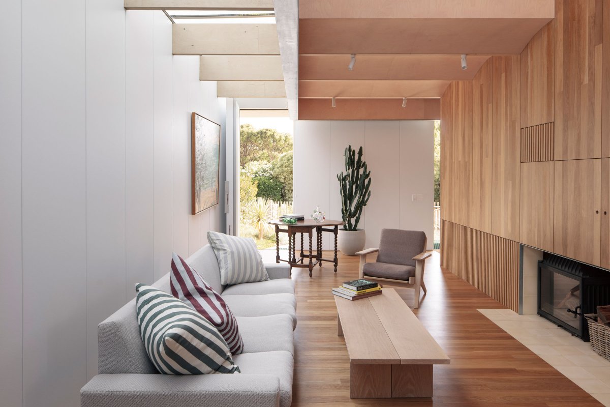 Nestled into the small coastal town of Barwon Heads, on Victoria’s Bellarine Peninsula, AB House offers a considered degree of compartmentalisation that accommodates a variety of occupations. Office MI–JI embeds a flexibility into the home, allowing it to expand and contract according to the number of inhabitants while offering a feeling of calm retreat.