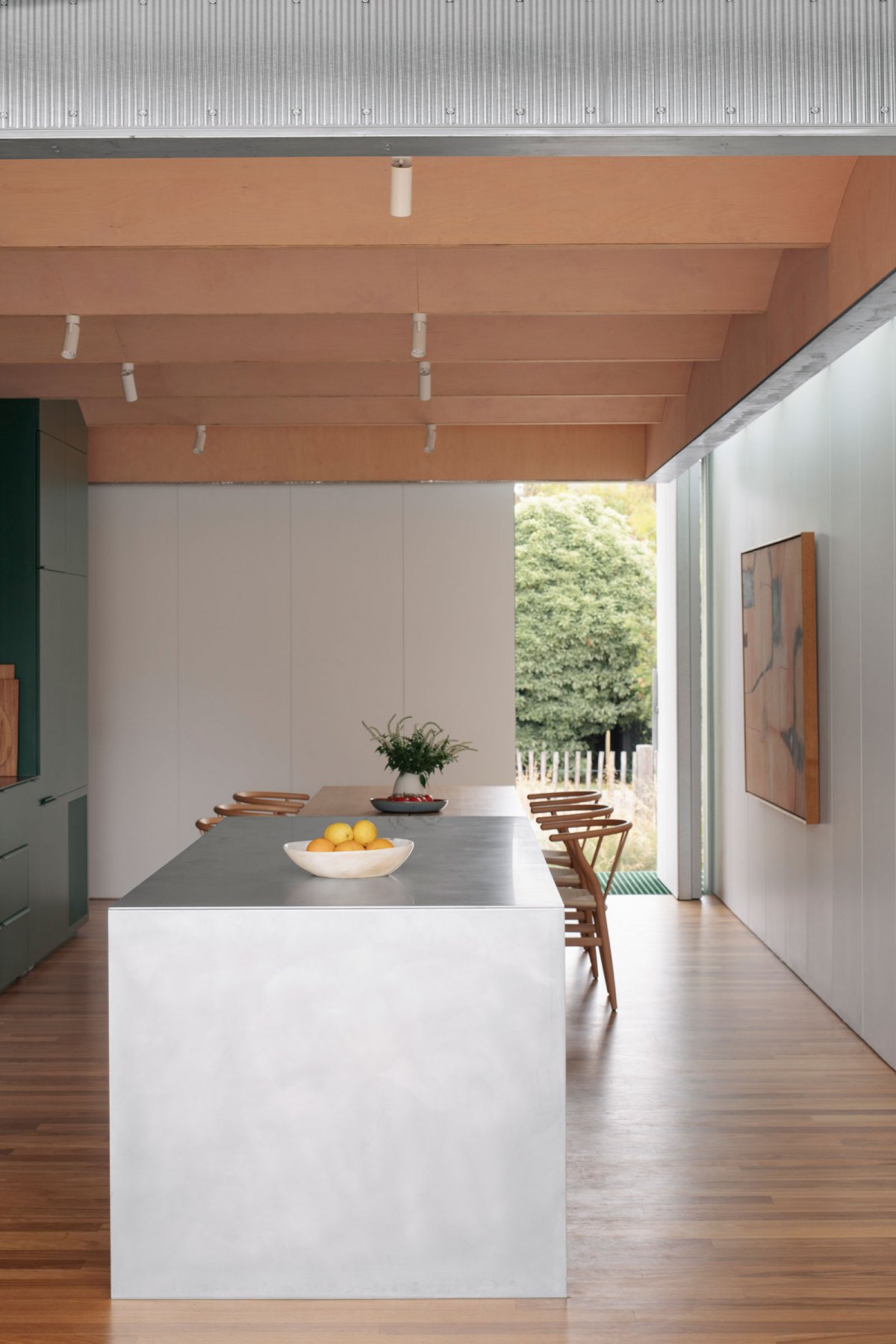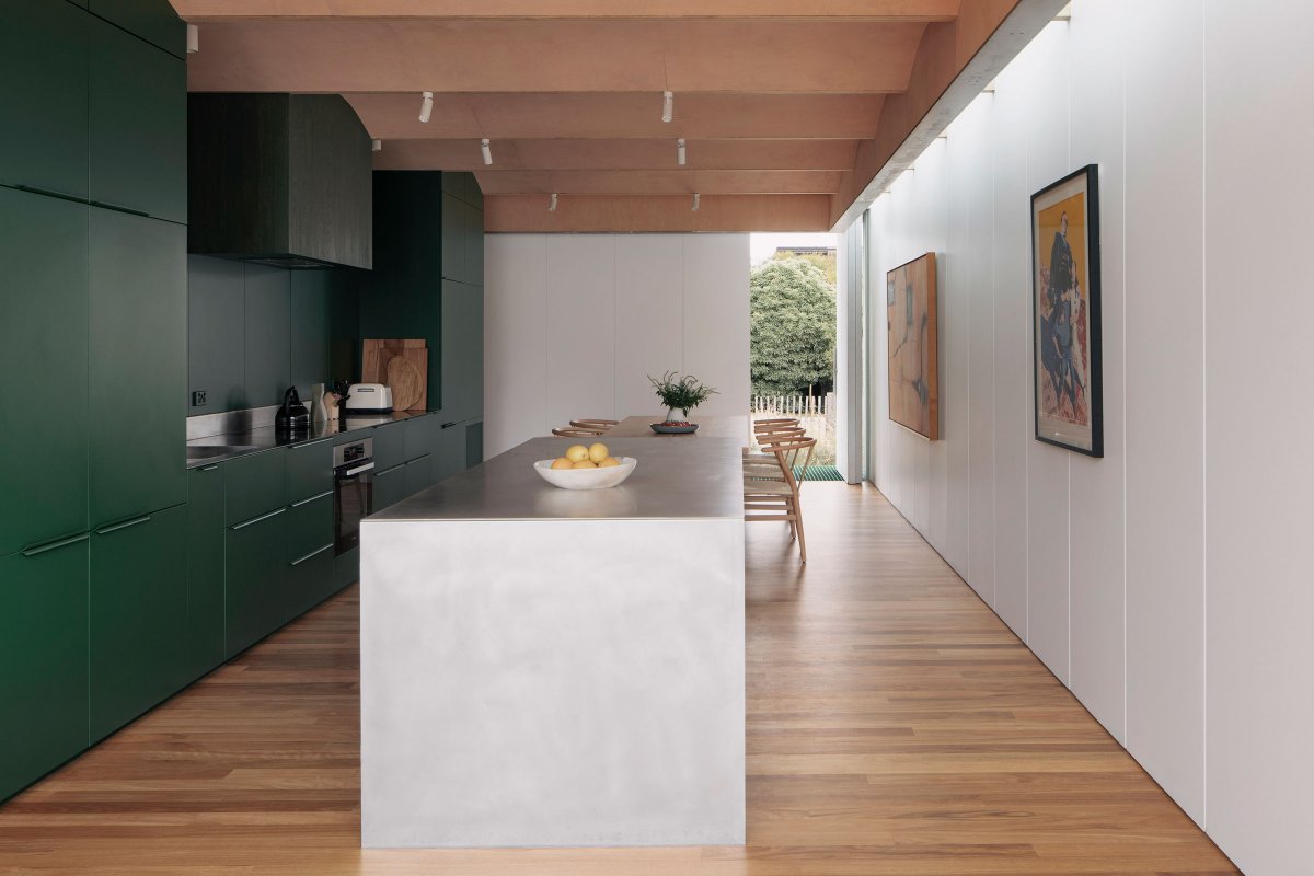 Within a newly designed landscape setting by Bush Projects, AB House is built by David Webb Building Solutions and fitted out internally with a collective of custom joinery by Pavilion Joinery. The zoning across the site corresponds to the intended length of potential stays –long, short or transitional – and allows the home to always feel full and animated, no matter its occupancy. With the site set back from the street, a sense of privacy is emphasised, and by focussing on light coming in from above and controlling the angles at which it does engage with the interior, Office MI–JI creates a true feeling of retreat.