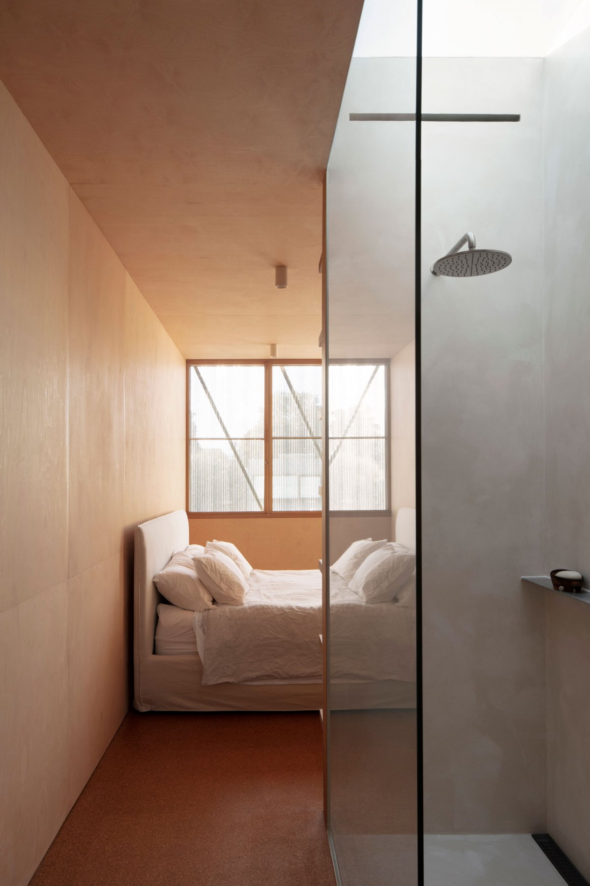 With front portion of the home grouping the living, dining, kitchen, study and one bedroom, this space forms the primary residence for the owners. The transitioning portion in the middle then provides a relief and separation, containing a separate powder room and laundry, with the rear volume then bookending the site, designed for guests. Separated yet still connected through the walkway, this rear area brings together a series of two bedrooms with their own bathrooms and an additional living space addition to the one at the front.A focus on simplicity defines AB House. Office MI–JI uses insertions of colour and the shifting shards of natural light to softly add a sense of movement amongst a more muted collective of base elements.