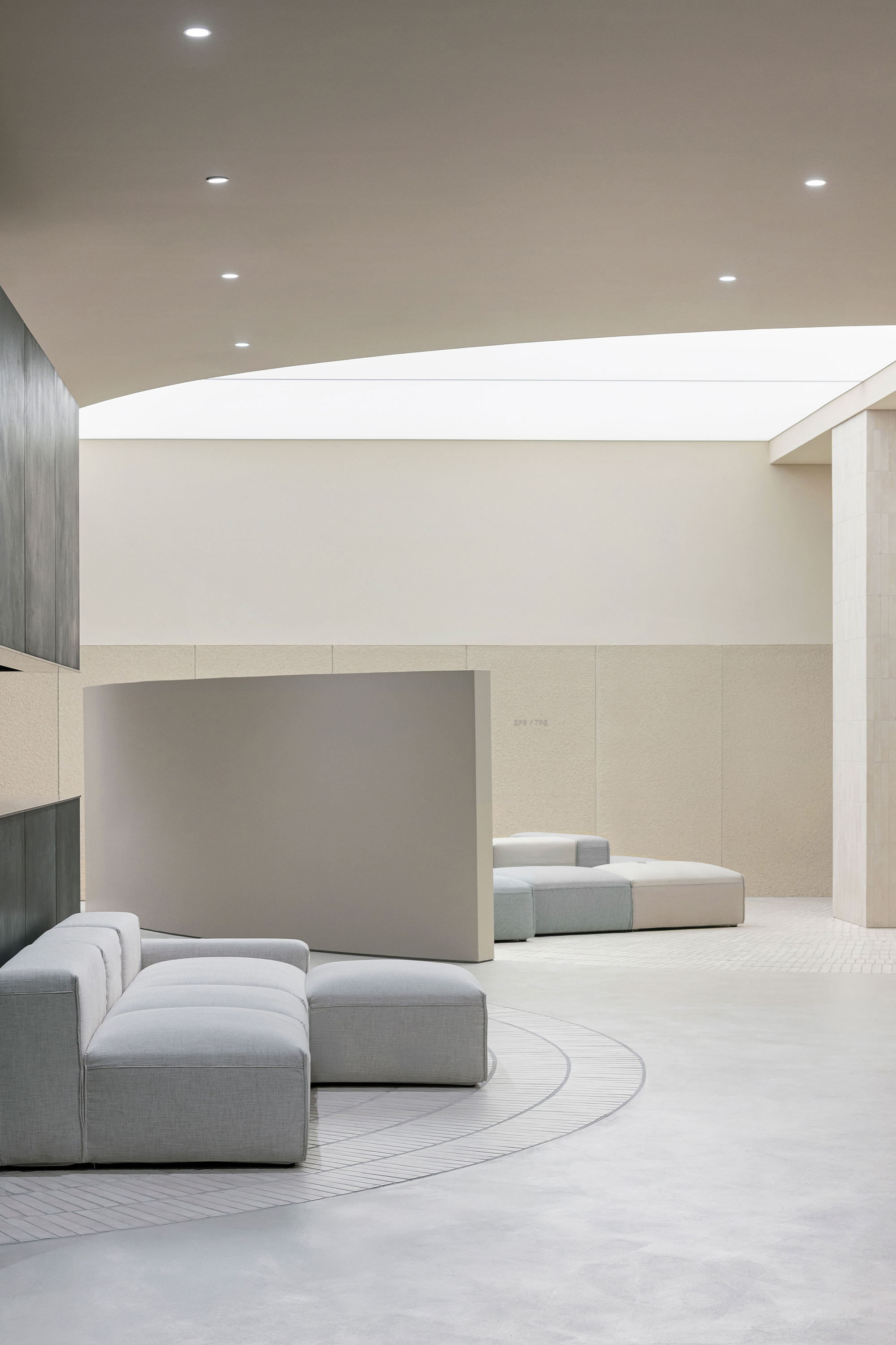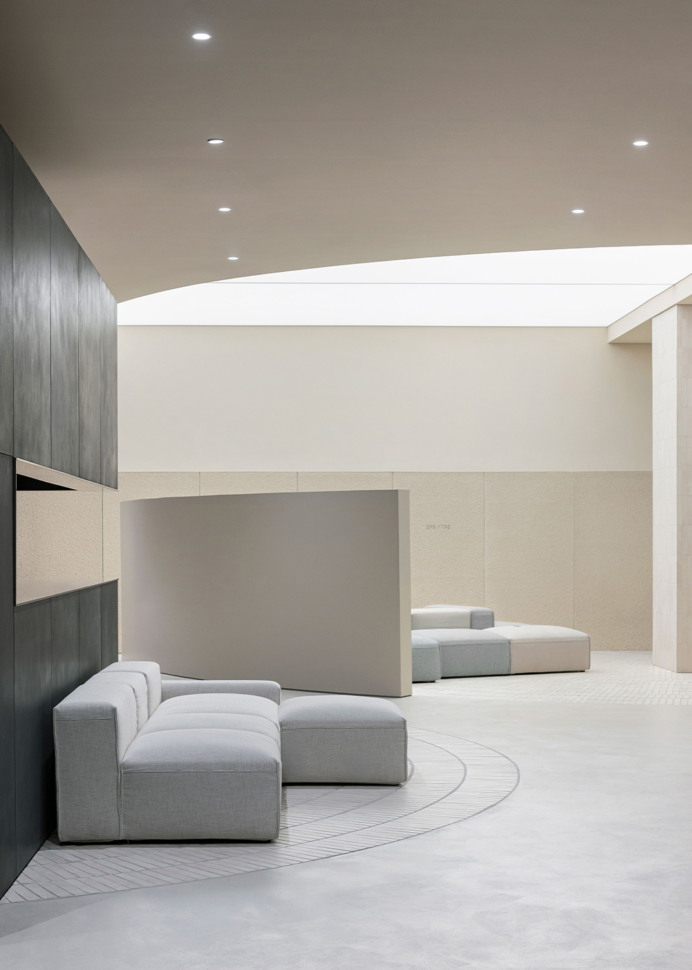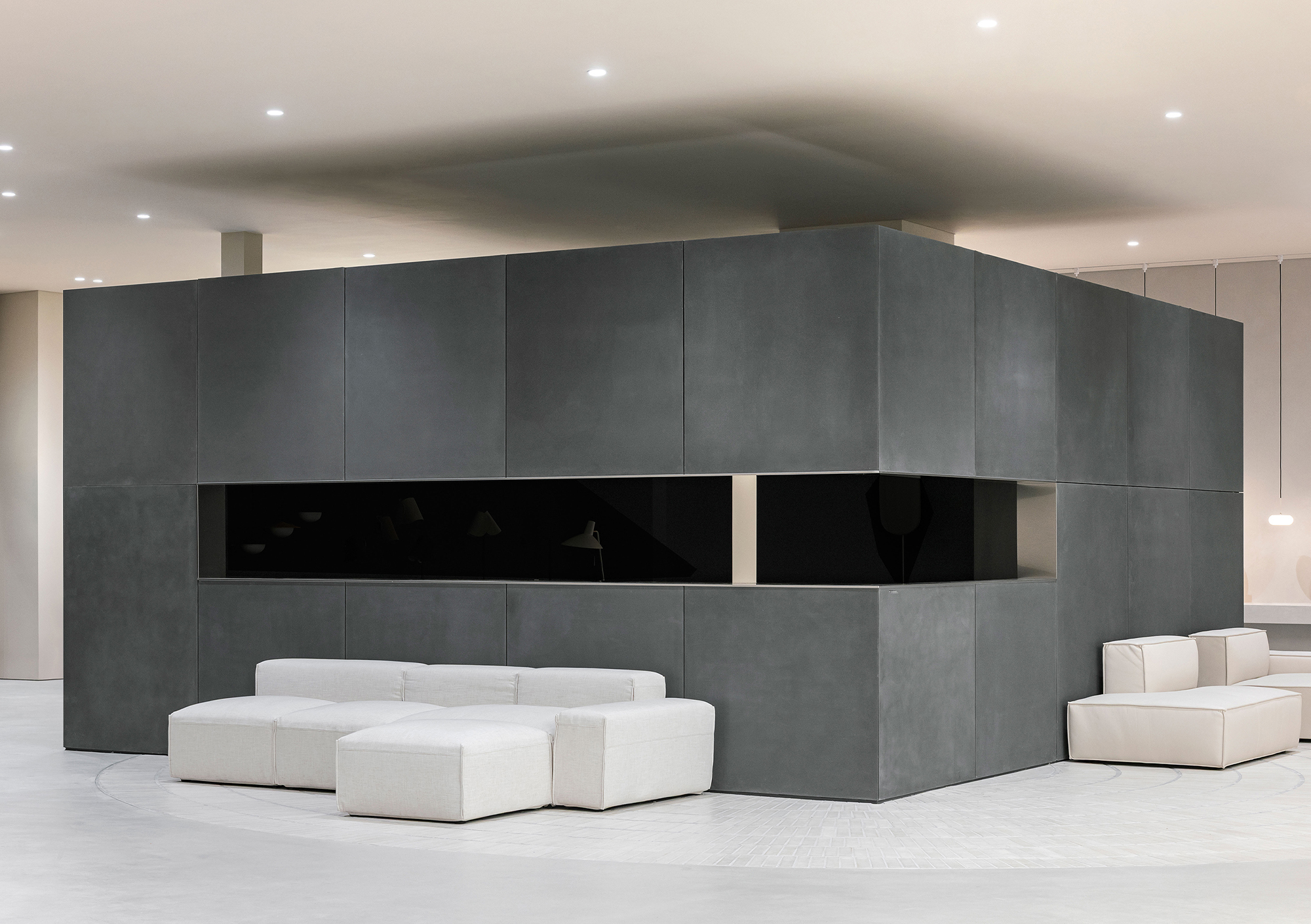 Beyond its primary retail function, the project introduces two distinct programs that enrich the overall experience — a Café and a Square. The café, curated around iloom’s sofa and living collections, offers a slow and reflective environment where visitors can rest, interact, and experience iloom’s design philosophy through comfort and tactility. It emphasizes simplicity and natural materials to encourage visitors to rediscover the essence of everyday life.