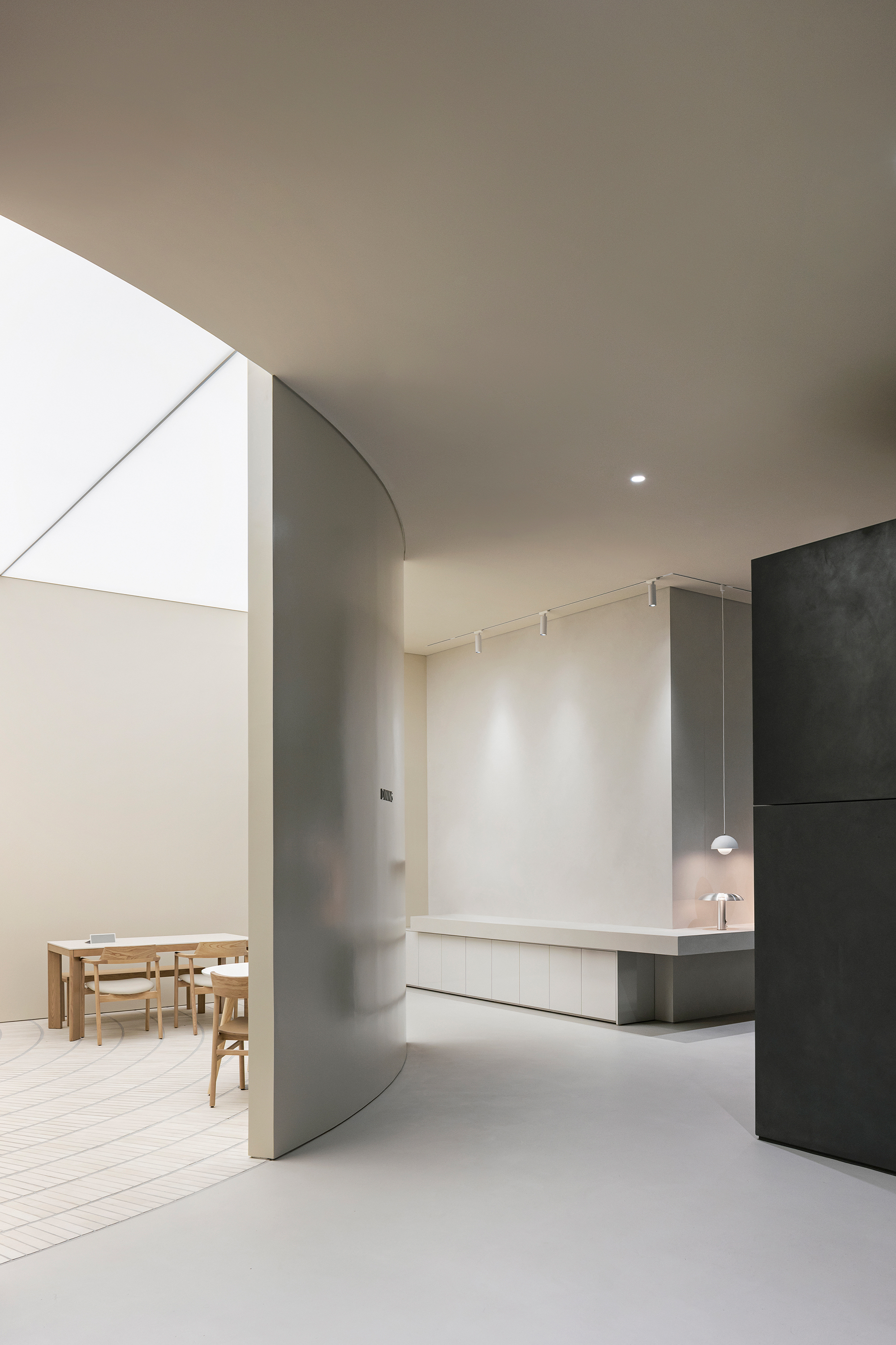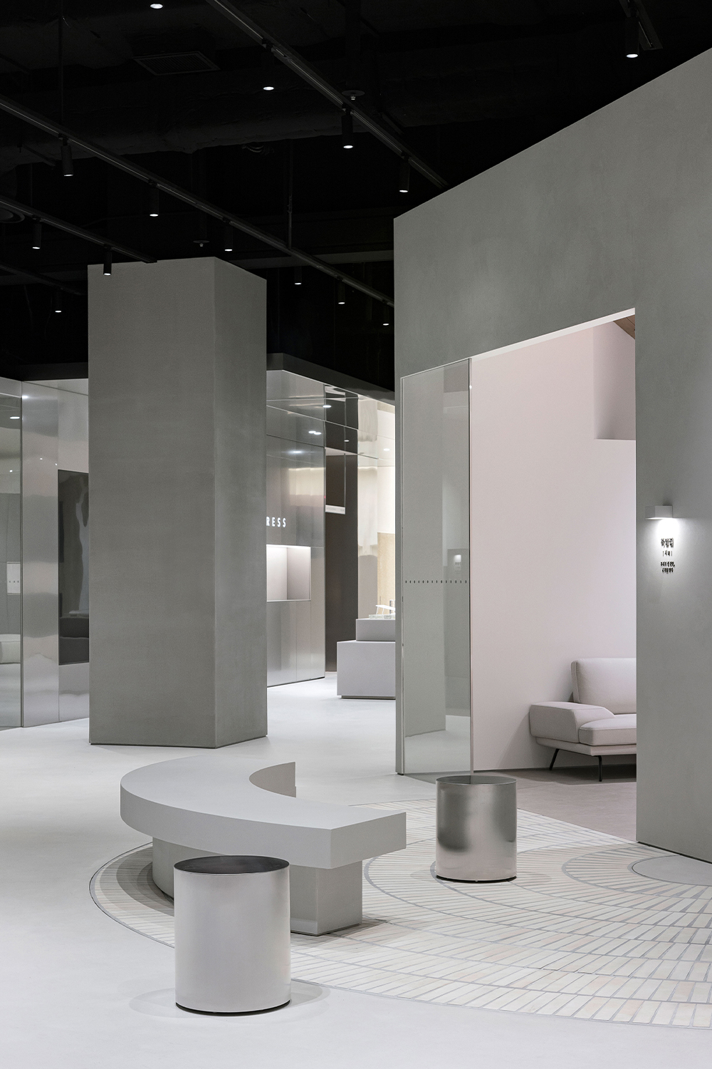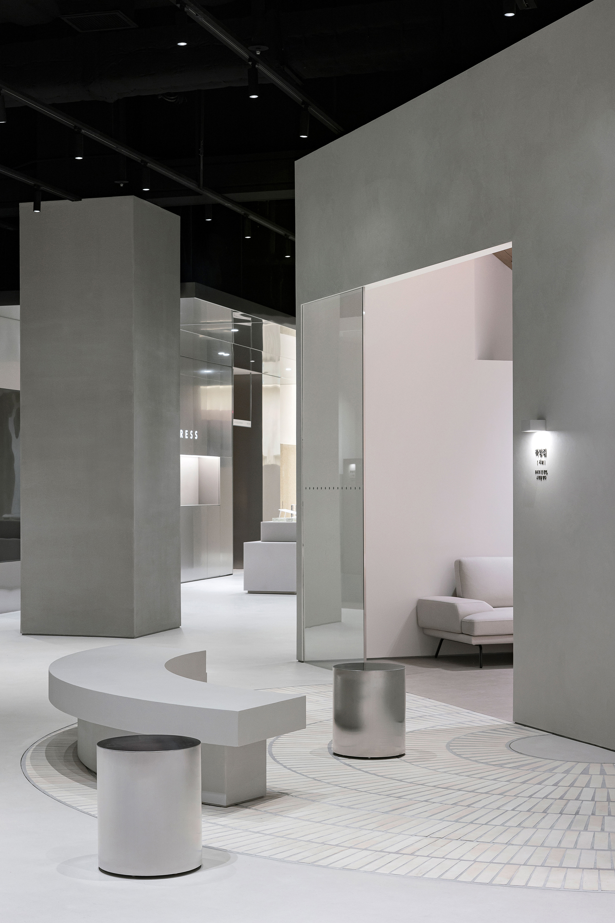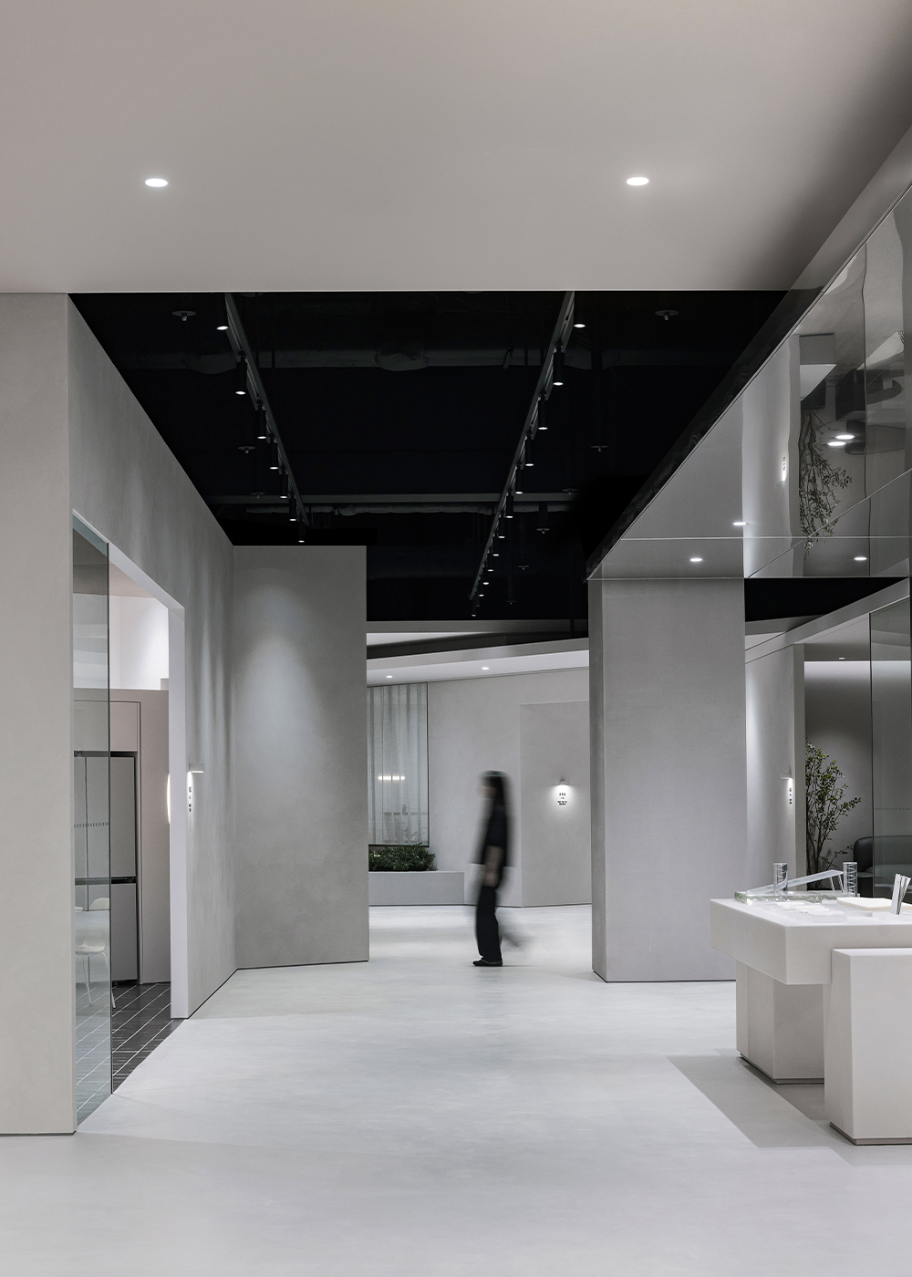 The overarching concept, “iloom Life Village – A Life Village Created Together,” introduces the idea of a community-like environment where diverse lifestyles coexist. The design draws from the notion of “Mass in Mass” — placing smaller, distinct architectural volumes within a larger unified structure. These interior masses function like small villas, each representing a particular lifestyle or generation, while the spaces between them form alleys and squares that act as open communal grounds. Through this structure, the store takes on the form of a living village, where spaces are interconnected yet distinct, evoking both intimacy and exploration. Each villa tells a story of a different stage of life.