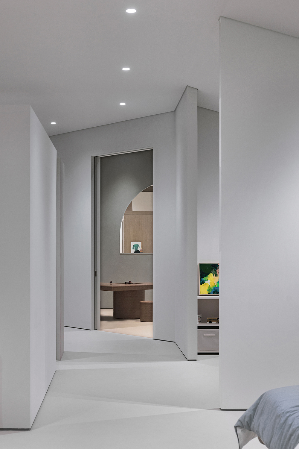 All these spaces are connected in a continuous circulation, allowing visitors to experience a seamless narrative — moving from one villa to another and ultimately reaching the consultation area and the open square. From the exterior of the mall, the arrangement of the villas creates a composition reminiscent of a neighborhood seen through a series of windows, inviting passersby to look into the lifestyle stories unfolding within.