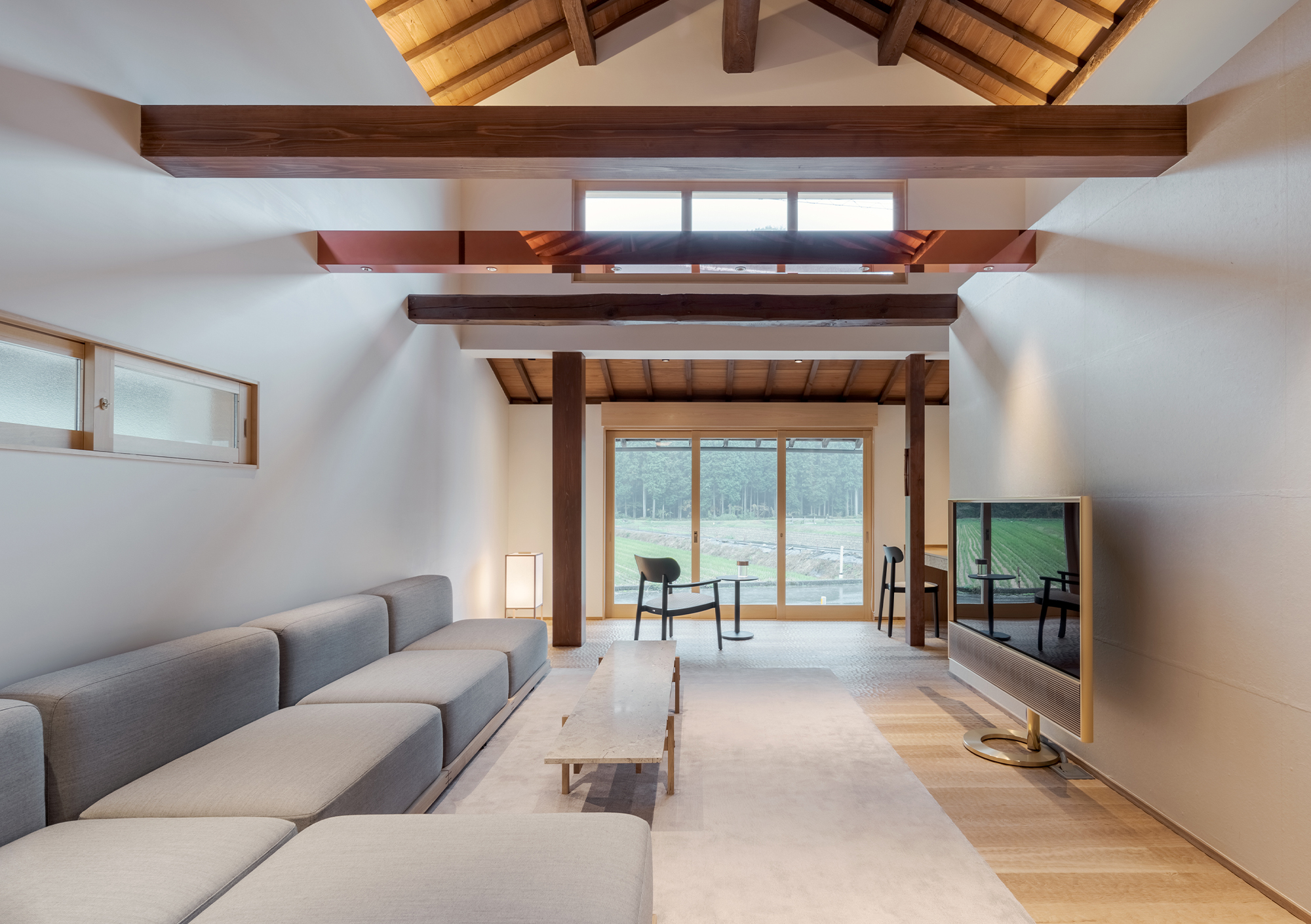 A weekend house design for a married couple living their second life. Located in Jinseki, Hiroshima, about an hour and a half north of Fukuyama, sitting atop a plateau with an elevation of about 400 to 700 meters, overlooking a beautiful landscape. The main house, annex, and barn are built in a row from east to west, and the design this time mainly focused on renovating the main house and barn.Over 100 years have passed since the main house was built, and one key point of this project was how to make the most of its existing condition.