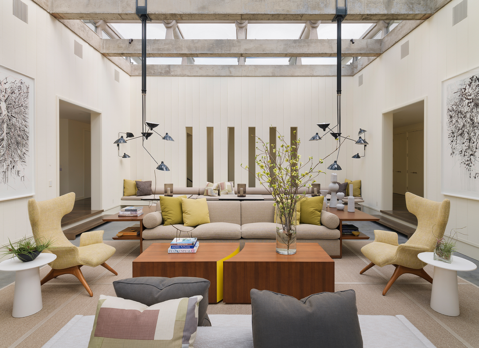 Maintaining the integrity of the architecture and original intent was an overriding theme. We wanted to honor the past. We enhanced the open plan northern California living concept with a seamless connection between the indoor and outdoor spaces. We were also influenced by and found inspiration for the contemporary furnishings by looking at the work of midcentury masters to create a fresh look and feel. We included furniture pieces by some of those same designers. We essentially recreated the interiors with an understanding “of that time and place” by using todays’ furnishings, materials, and forms.