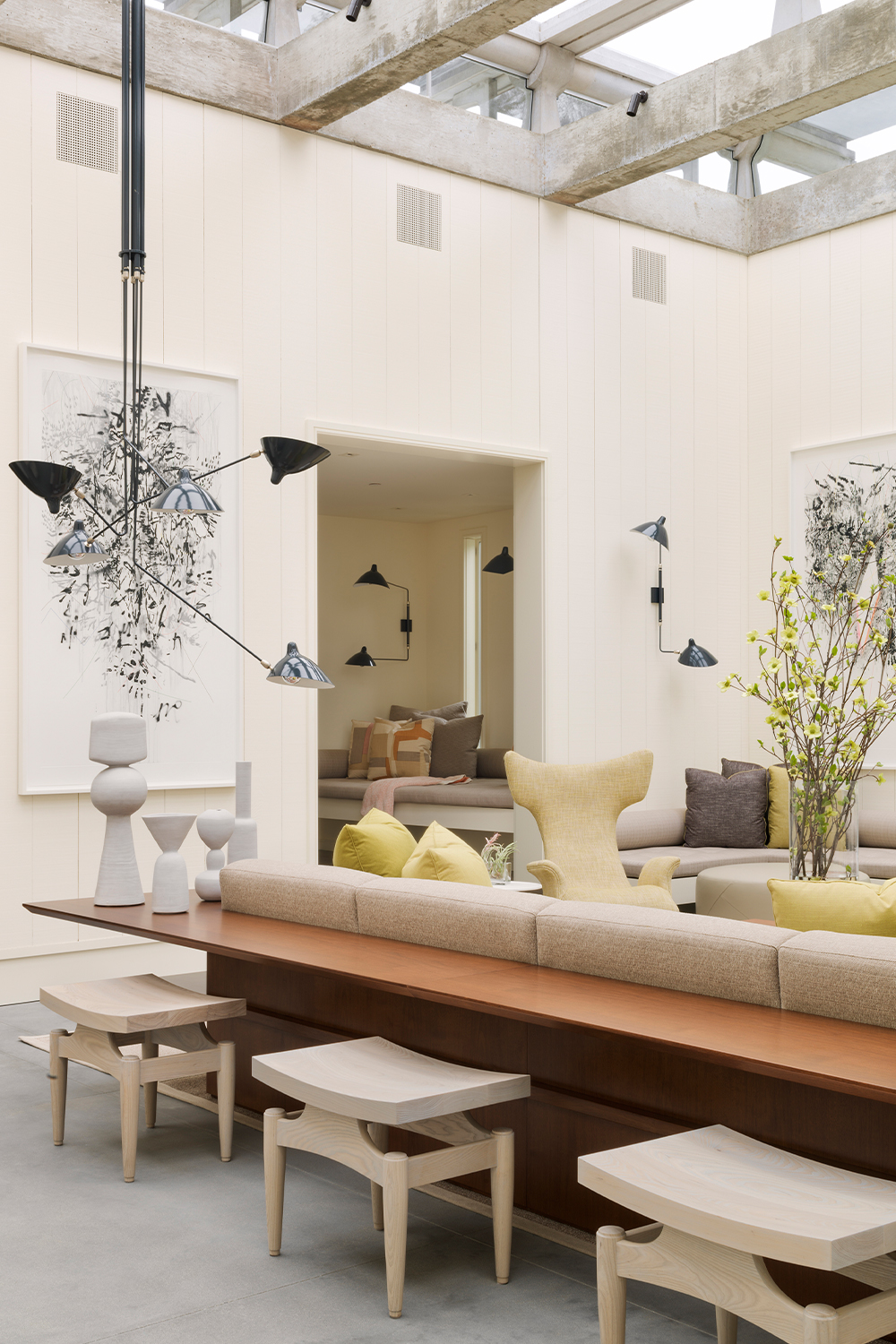 As Richard Beard explains, the goal was not to “erase” the compartmentalization, but to soften it through material clarity, light, and rhythm, finding new balance between past and present. The dialogue continues in the interiors, where art and furniture bring together a quiet contemporary sensibility with mid-century spirit. Through this reinvention, the McIntyre House breathes anew—carrying the weight of history, yet living as an open, calm, and deeply inhabitable home.