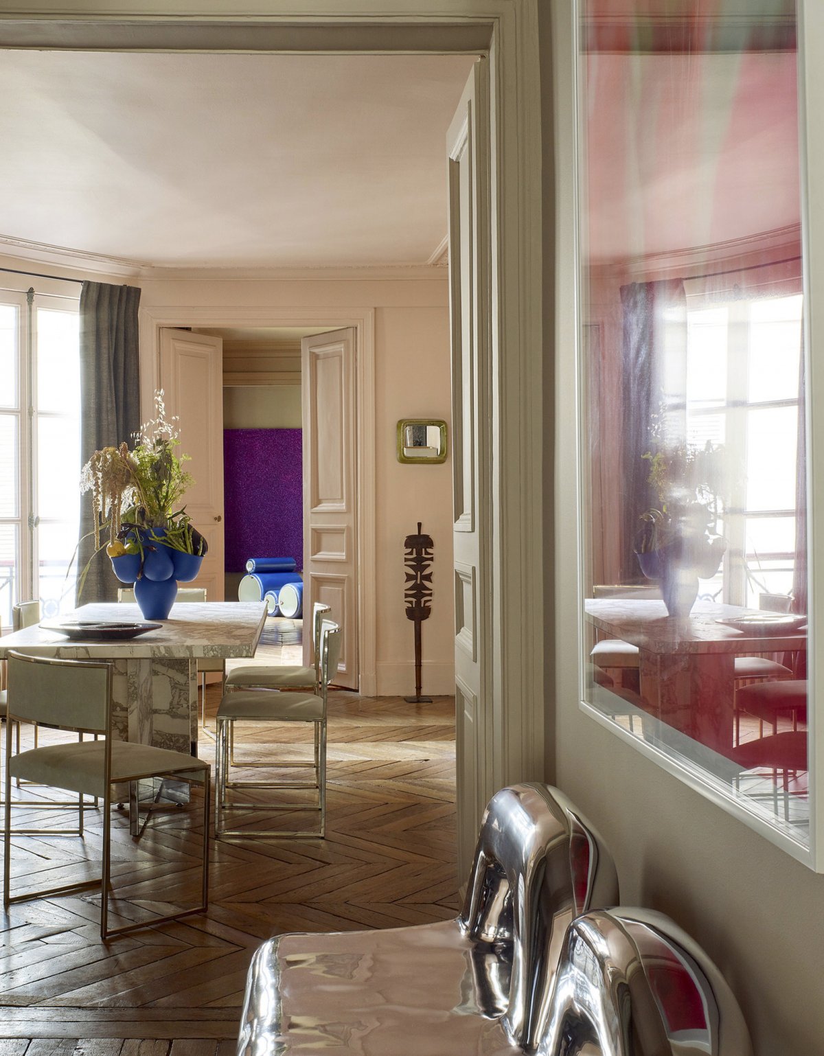 “The client wanted to maintain a Parisian patina, while modernising other aspects of the home. The home is in the heart of Paris and the idea was to transmit this mood through an eclectic signature,”says Rodolphe.Admittedly for Rodolphe, the interior is a pastiche of eclectic styles. “And yet,they’re perfectly compatible,”he says, noting that it’s the dialogue between the materials and textures that really characterises the place.