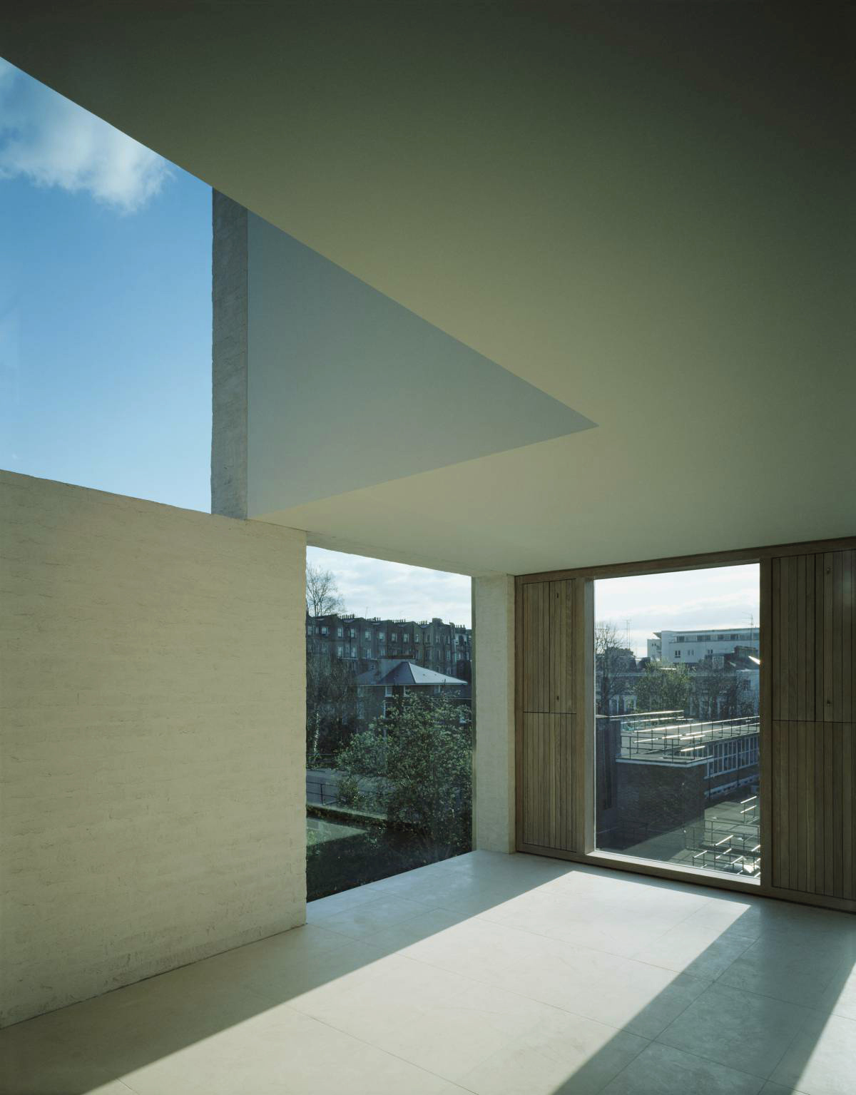 Russell Jones set the building up to six levels, consisting of a basement, ground level and four above ground levels. The building is divided into three parts, each a two-storey apartment. Because the site is relatively narrow, the building is limited by this. In form, the layout of plane and section adopts the technique of layer by layer retreat, so that the building can easily inhabit here. So each apartment has a different spatial experience. A limestone concrete staircase in the center of the building and a continuous soffit on one side form a compact corridor that leads to each apartment.