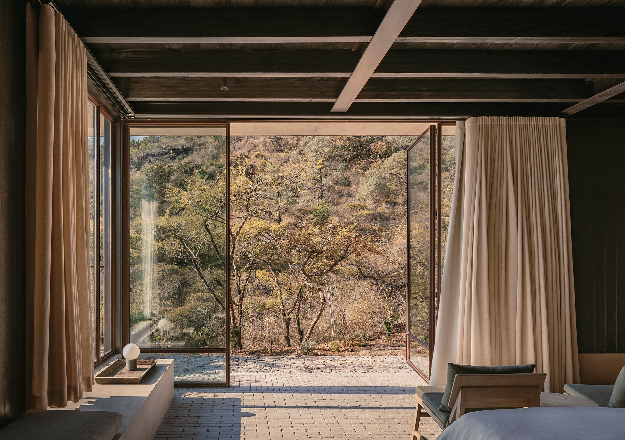 Located on a gentle slope between two ravines that connect the pine forest to the lowland jungle of Valle de Bravo, Casa el Espino rests humbly within a warm and dry atmosphere that suggests an austere and mindful language. The design, influenced by environmental and landscape features, responds with a calm layout, all on a single level that respects the topography through subtle shifts in elevation. From the perspective of the lake and the mountain, the house appears like a canopy.