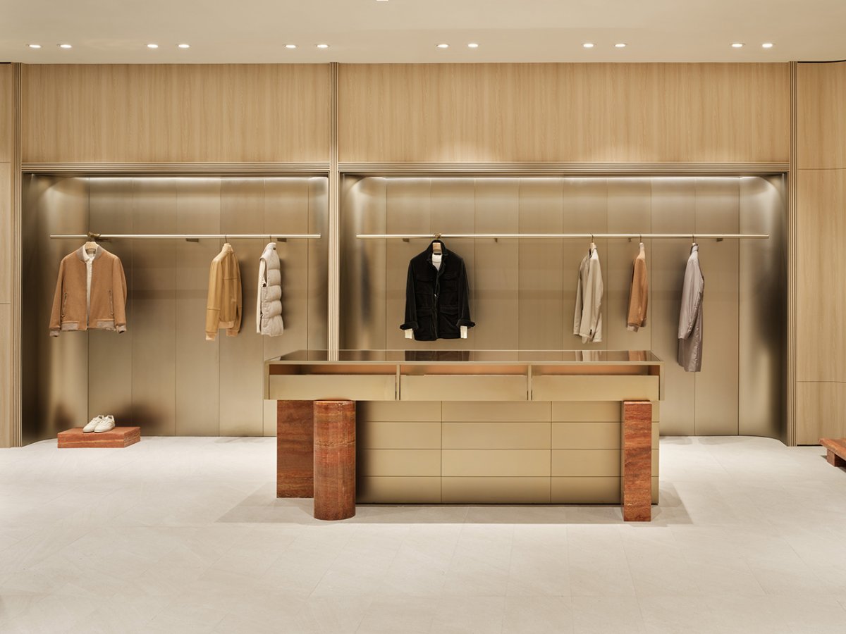 The Maestro store also has a premium feel. The orange marble is used as one of the basic elements in the space, which blends harmoniously with the wooden furniture and metallic tones in the space, adding texture and texture.