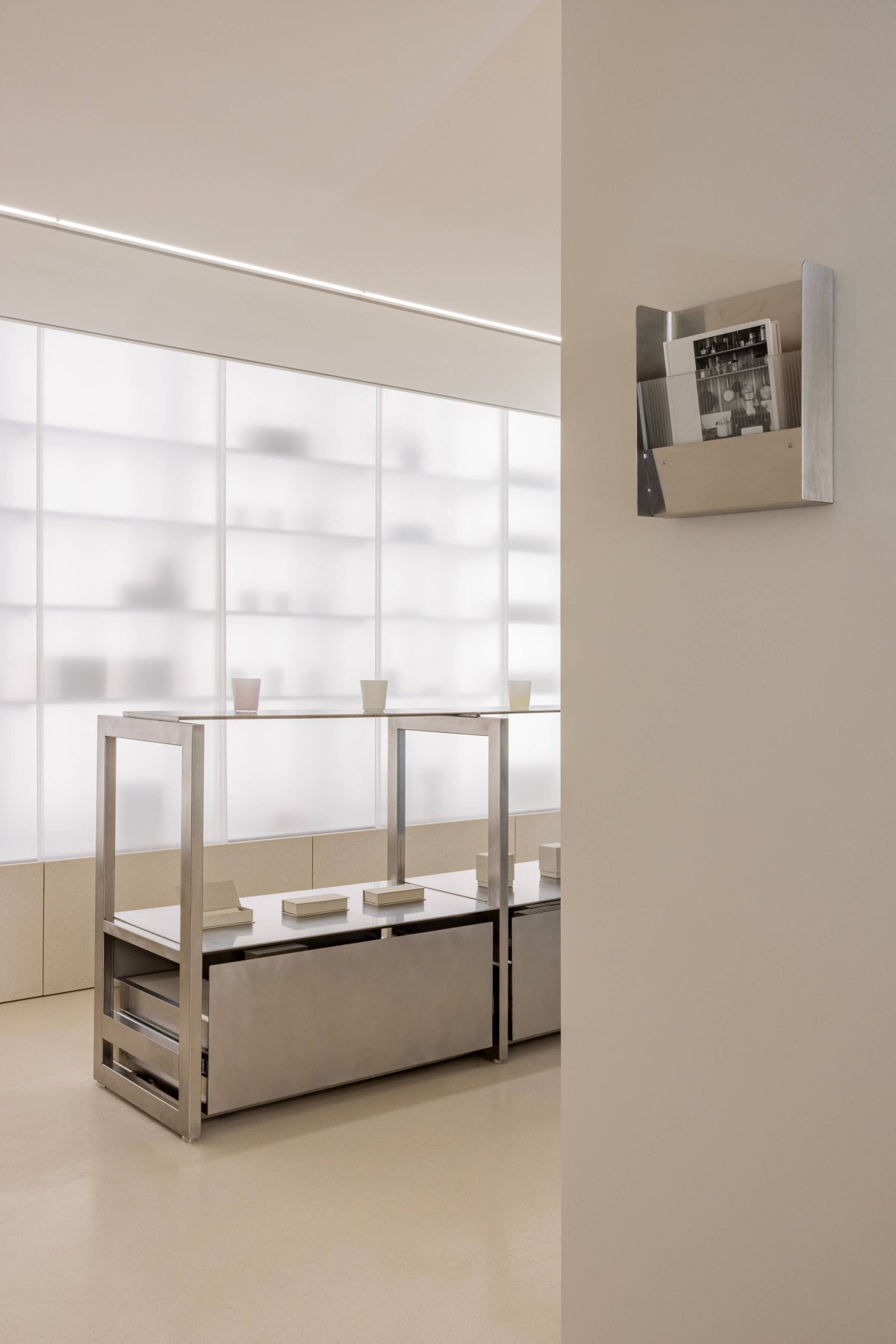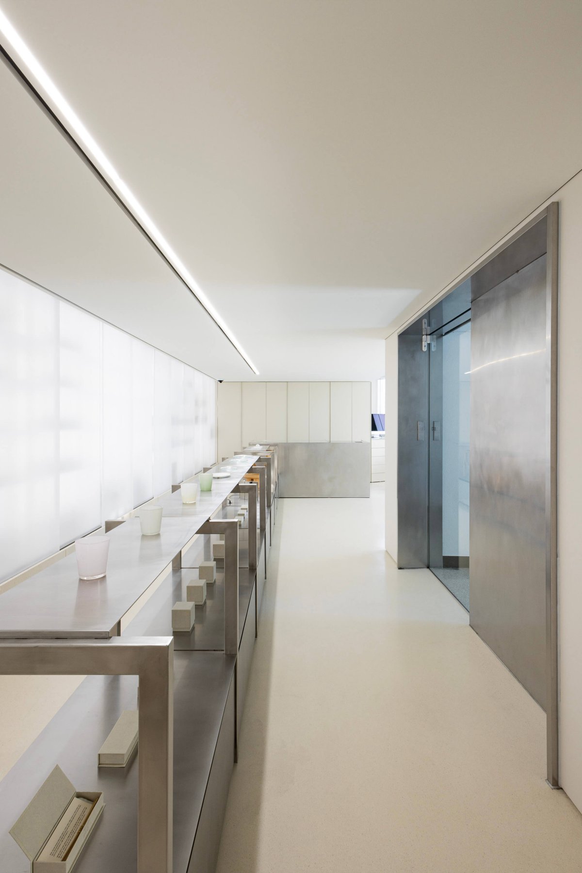 The minimalist design, a hallmark of Studio Unravel, continues and reflects in this commercial space. Clean colors and clean lines make the whole space easy to see.