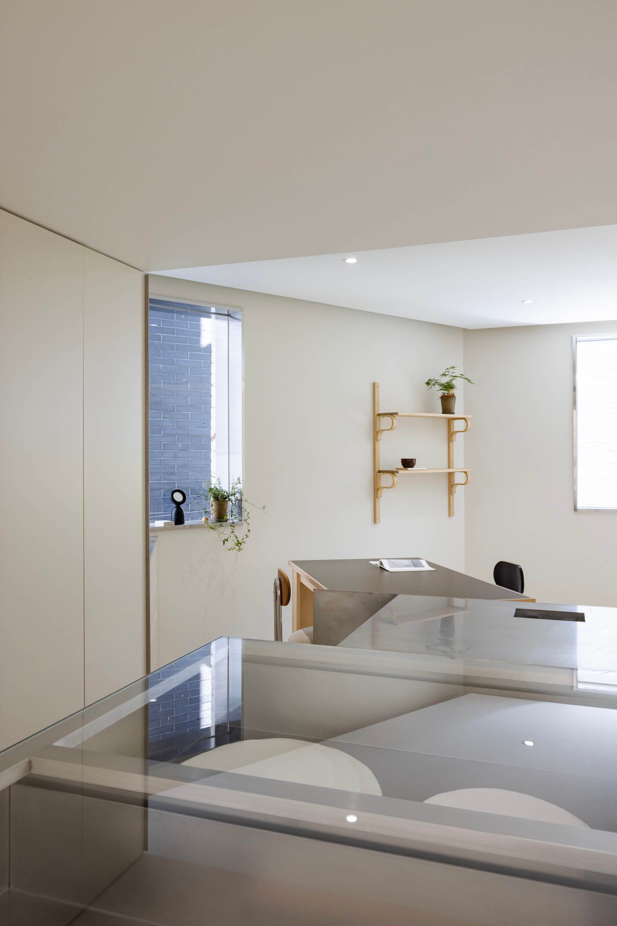 In the space, a variety of materials form a soft contrast, and daily necessities on the display case orderly arrangement, and play an embellishment role in the space.