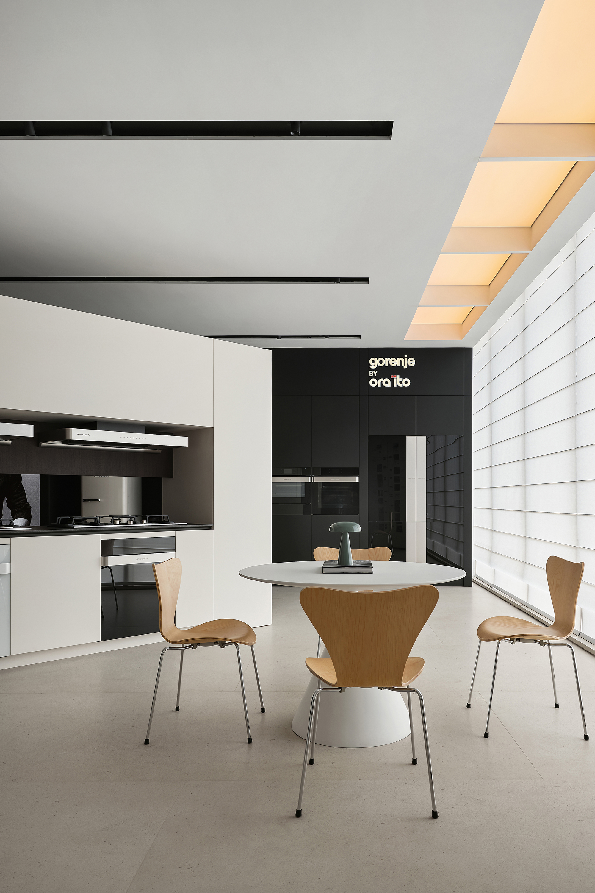 The starting point of design is not just the composition of the form, but the precise capture of the brand spirit. The creation of gorenje Nanjing Exhibition Hall is a multi-dimensional reflection based on brand culture, product characteristics and user experience; How to juxtapose the manufacturing spirit originating from Lake Bled in Slovenia with modern lifestyle? How to construct a shared experience of home, technology, and art in the form of space?