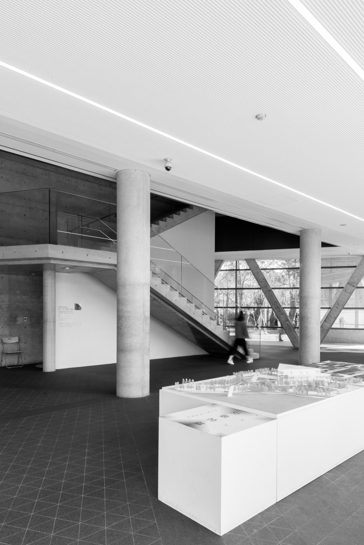Due to the geographical conditions of the earthquake zone, the general upright pillars are subverted. The pillars in the museum are all "crooked", and the space and curtain and window view formed by the V-shaped steel frame are all triangular. The cantilevered lower space, supported by a V-shaped steel frame, forms a shaded space like a shophouse, which also serves as an entryway and a resting area facing the square.