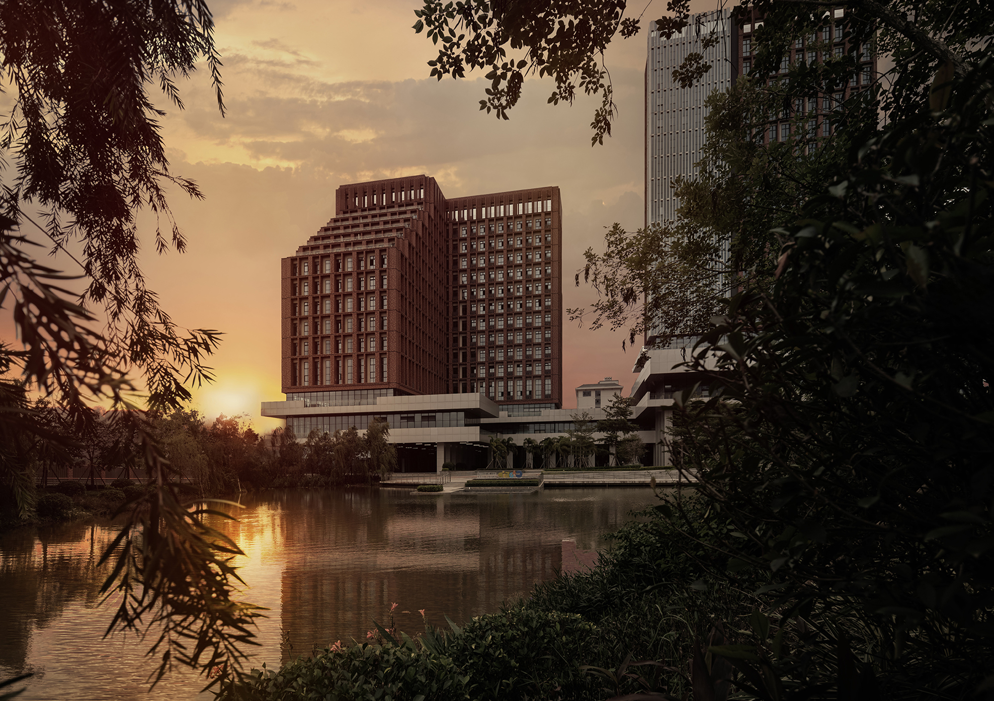 In a tranquil corner of eastern Nanning, a boutique hotel has quietly taken shape. Backed by the Yong River and adjacent to the Wuhe University Town, it is surrounded by lakes and hills that mirror one another, intertwining with the city skyline to form a poetic landscape of nature.