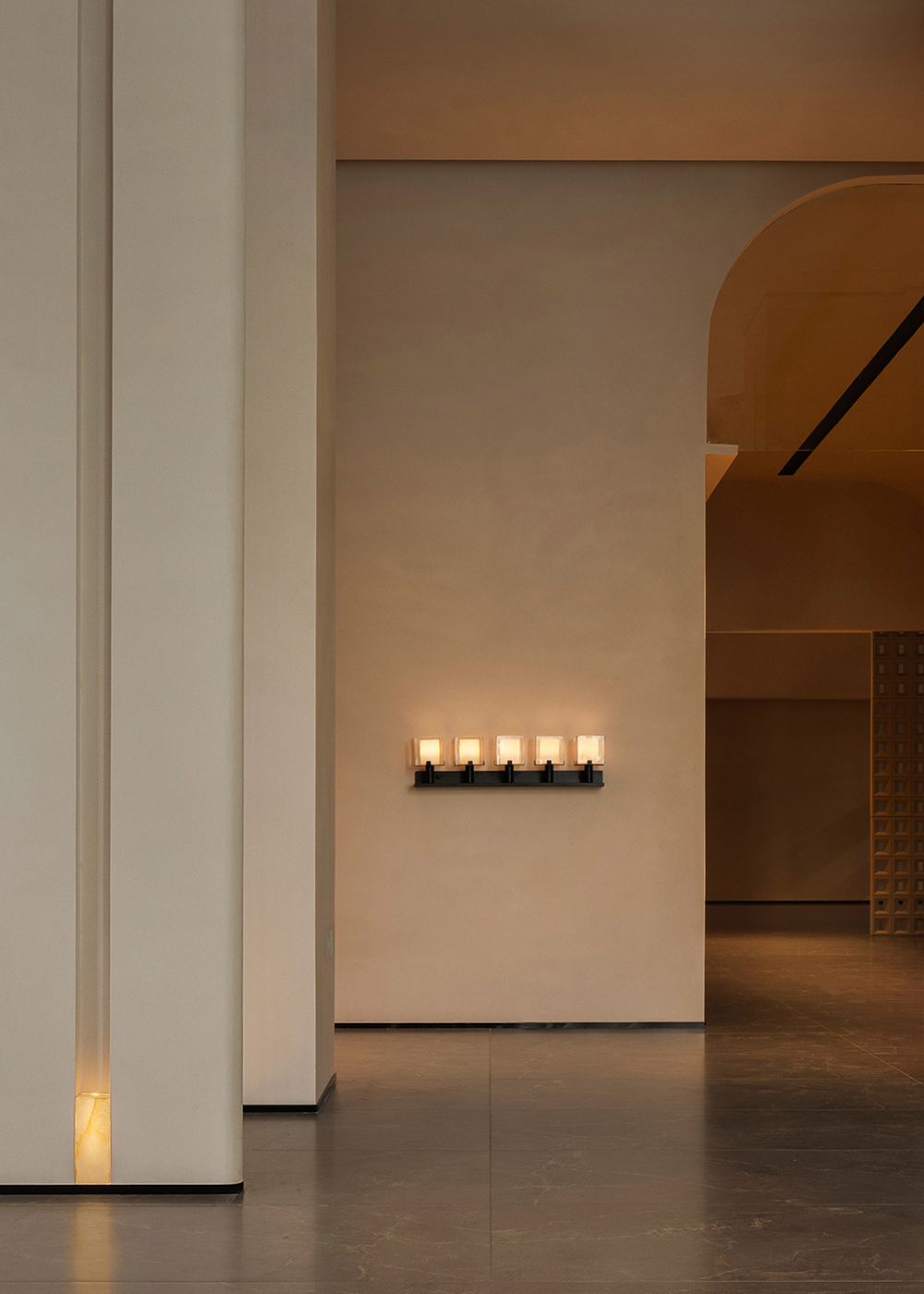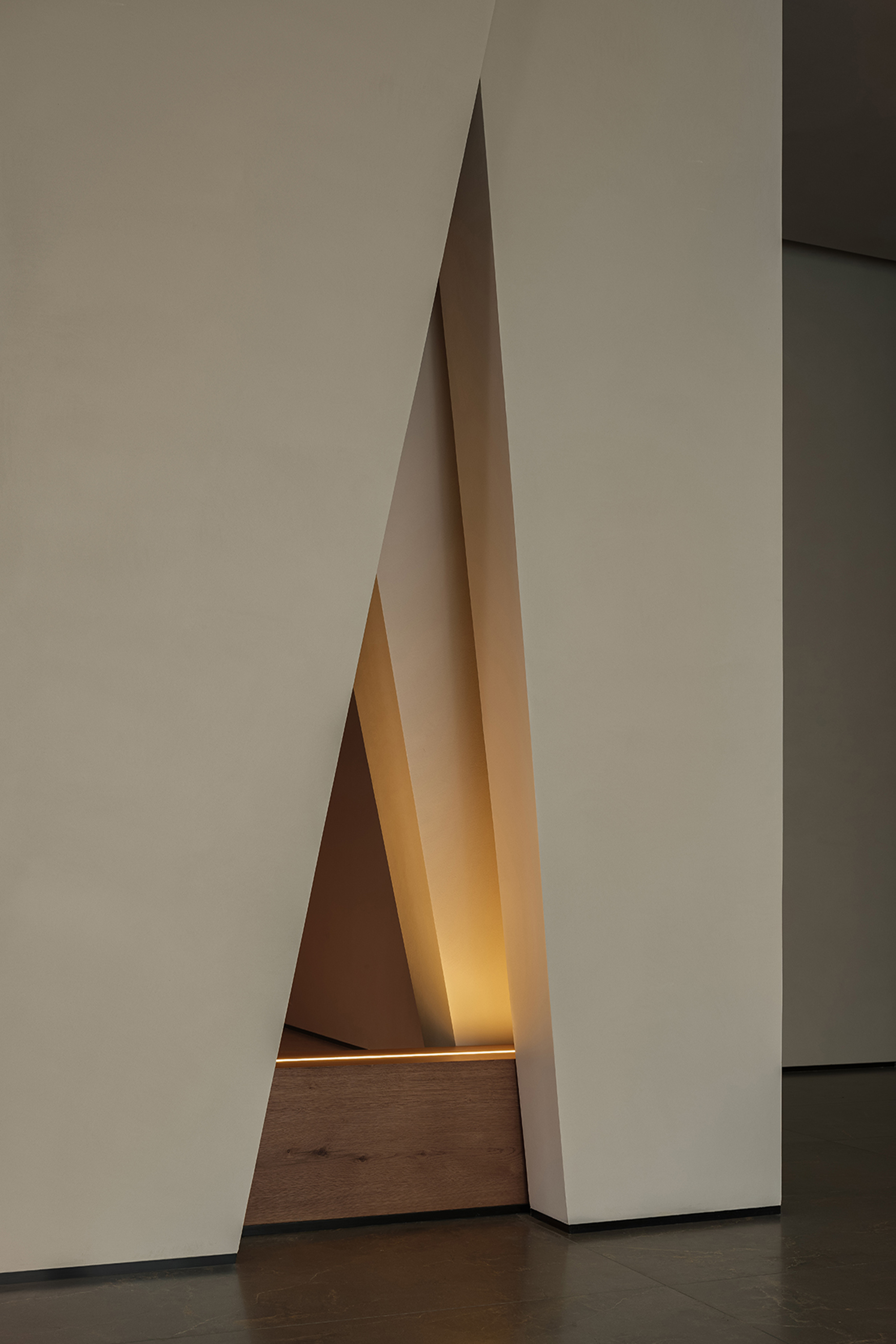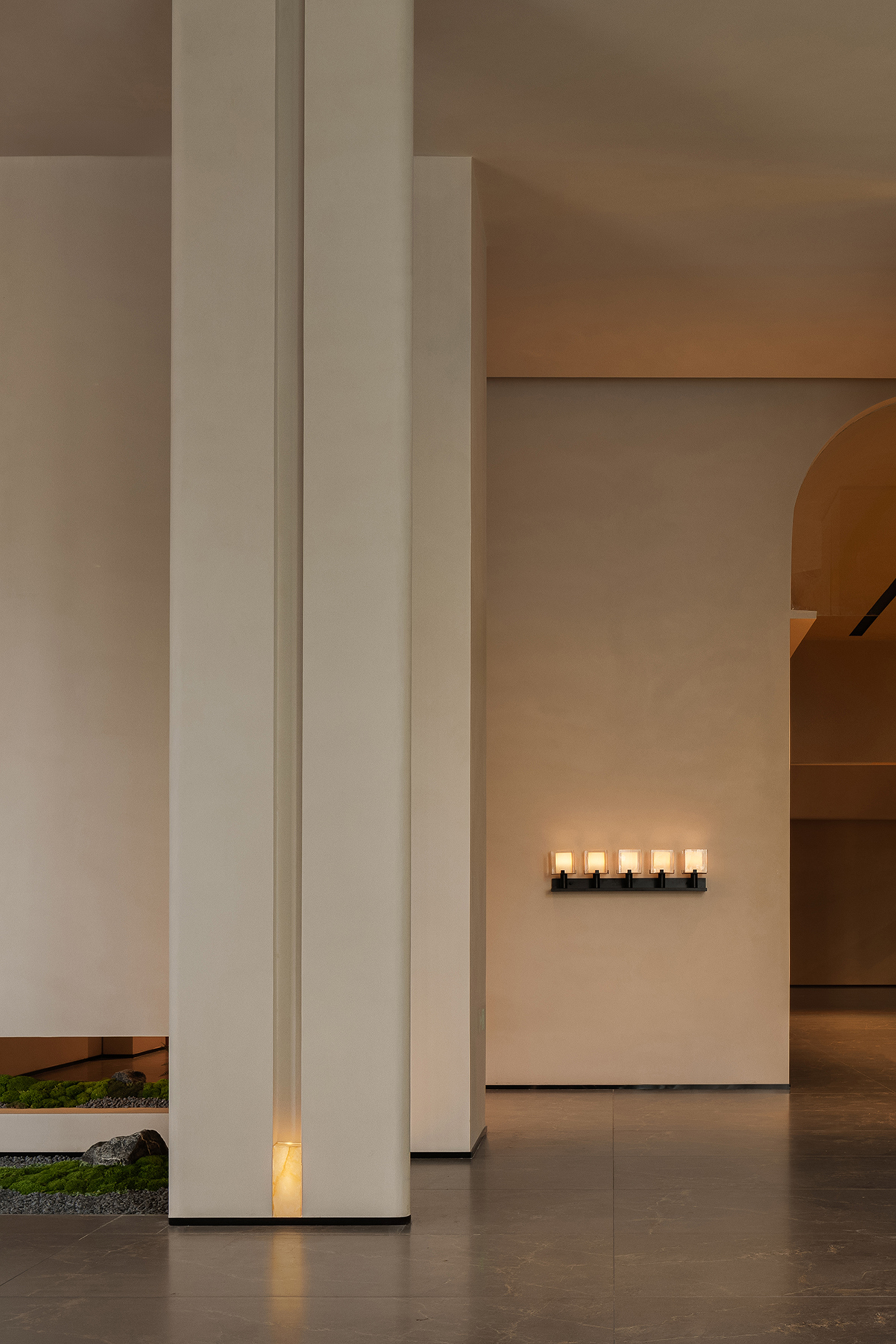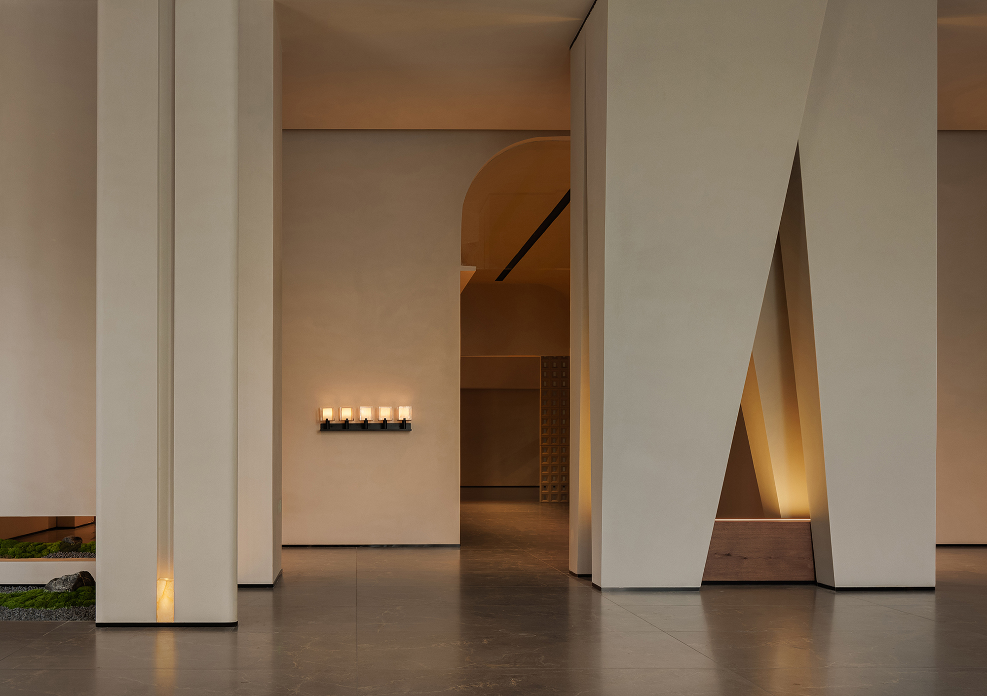 In its overall conception, the lobby embodies a chapel-like sense of spiritual calmness, using a strong sense of ritual to guide guests into an immersive setting detached from the city’s bustle. Light and shadow become the most essential design medium, shaping spatial volumes while reinforcing the spiritual character of the space. Through the interplay of light and shadow and the tactile quality of materials, the design awakens sensory perception. Grounded in natural materials and warm tones, and enhanced by sequential spatial rhythms and controlled detailing, it conveys a quiet, gentle, yet powerful spatial atmosphere.